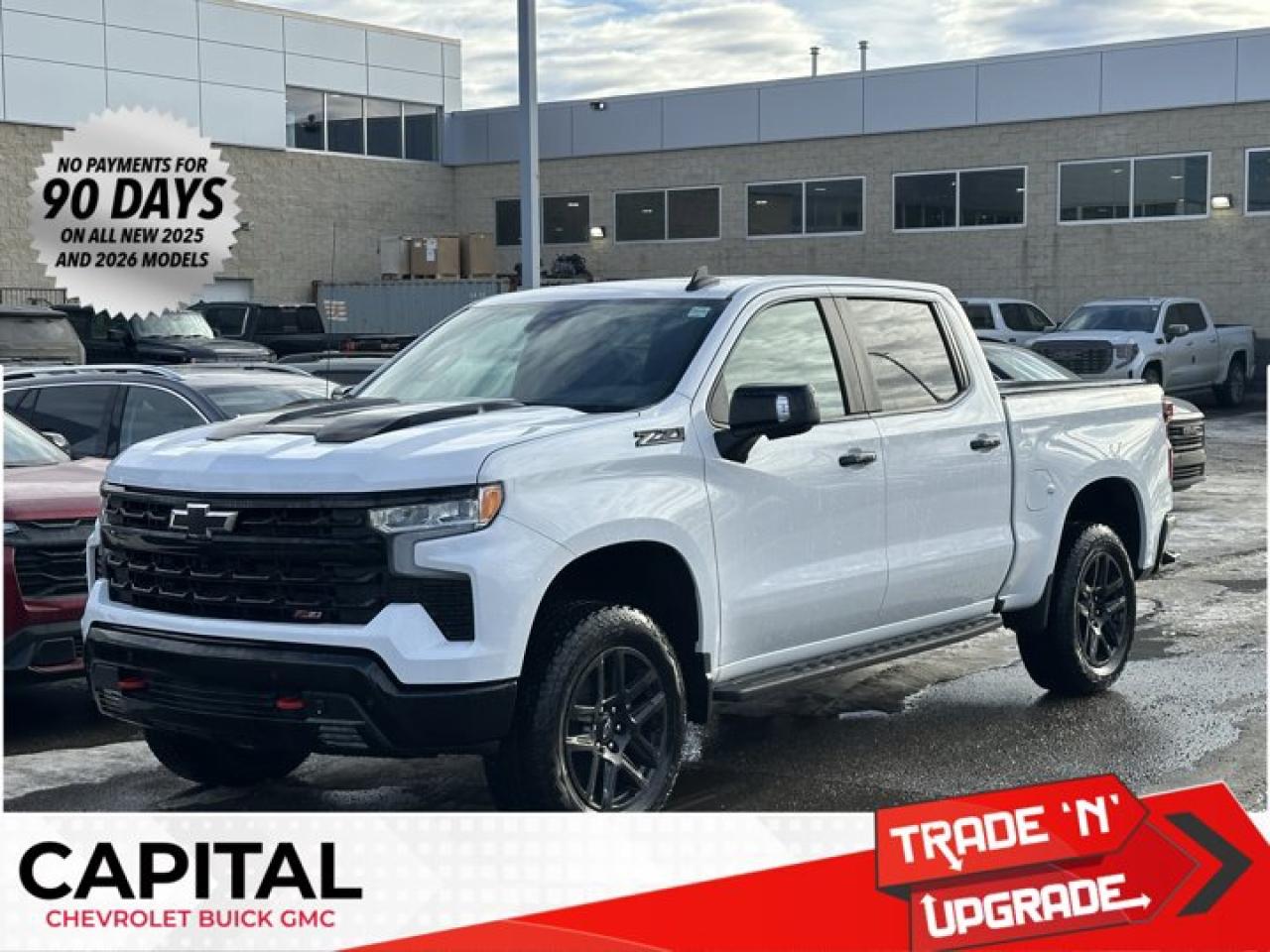 This Chevrolet Silverado 1500 delivers a Gas V8 5.3L/325 engine powering this Automatic transmission. TRANSMISSION, 10-SPEED AUTOMATIC WITH ELECTRONIC TRANSMISSION RANGE SELECTOR (ETRS), electronically controlled with overdrive, tow-haul mode and steering column paddle shifters. Includes Cruise Grade Braking and Powertrain Grade Braking, TAILGATE, MULTI-FLEX with six functional load/access features, NOTE: Auto release can be disabled if ball hitch is installed. See Owner's manual for details, SUNROOF, POWER on Crew Cab models.* This Chevrolet Silverado 1500 Features the Following Options *LT TRAIL BOSS PREMIUM PACKAGE includes (PCM) Convenience Package II, (PQB) Safety Package, (CXH) Leather Package, (WPQ) Protection Package and (QT6) Power up/down tailgate, LPO, DARK ESSENTIALS PACKAGE includes (RIK) Black Silverado nameplates, along with where applicable, Black Custom/LT/RST/LTZ/High Country/6.2L/Duramax badges, LPO and (SB7) Black tailgate CHEVROLET lettering, LPO, (dealer-installed) , SEATS, FRONT BUCKET with centre console (Includes (EPH) Electronic Transmission Range Selector (console mounted)., REAR AXLE, 3.23 RATIO, LT TRAIL BOSS PREFERRED EQUIPMENT GROUP includes standard equipment, LPO, SOFT ROLLING TRUCK BED COVER (dealer-installed), LPO, OFF-ROAD HIGH CLEARANCE STEPS (dealer-installed), LPO, BLACK NAMEPLATES (dealer-installed), GVWR, 7100 LBS. (3221 KG), ENGINE, 5.3L ECOTEC3 V8 (355 hp [265 kW] @ 5600 rpm, 383 lb-ft of torque [518 Nm] @ 4100 rpm); featuring available Dynamic Fuel Management that enables the engine to operate in 17 different patterns between 2 and 8 cylinders, depending on demand, to optimize power delivery and efficiency (Includes (N10) dual exhaust.).* Visit Us Today *Test drive this must-see, must-drive, must-own beauty today at Capital Chevrolet Buick GMC Inc., 13103 Lake Fraser Drive SE, Calgary, AB T2J 3H5.