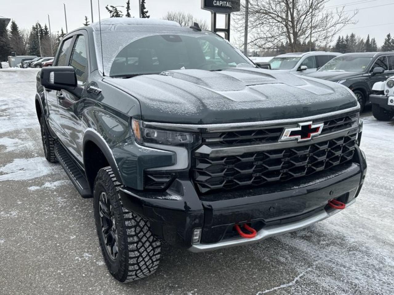 Accessories include tonneau cover.This Chevrolet Silverado 1500 delivers a Gas V8 6.2L/376 engine powering this Automatic transmission. ZR2 PREFERRED EQUIPMENT GROUP includes standard equipment, TRANSMISSION, 10-SPEED AUTOMATIC WITH ELECTRONIC TRANSMISSION RANGE SELECTOR (ETRS), electronically controlled with overdrive, tow-haul mode and steering column paddle shifters. Includes Cruise Grade Braking and Powertrain Grade Braking, SUNROOF, POWER on Crew Cab models.*This Chevrolet Silverado 1500 Comes Equipped with These Options *LPO, DARK ESSENTIALS PACKAGE includes (RIK) Black Silverado nameplates, along with where applicable, Black Custom/LT/RST/LTZ/High Country/6.2L/Duramax badges, LPO and (SB7) Black tailgate CHEVROLET lettering, LPO, (dealer-installed) , REAR AXLE, 3.23 RATIO, LPO, OFF-ROAD HIGH CLEARANCE STEPS (dealer-installed), LPO, BLACK NAMEPLATES (dealer-installed), LICENSE PLATE KIT, FRONT, GVWR, 7100 LBS. (3221 KG), ENGINE, 6.2L ECOTEC3 V8 (420 hp [313 kW] @ 5600 rpm, 460 lb-ft of torque [624 Nm] @ 4100 rpm); featuring Dynamic Fuel Management that enables the engine to operate in 17 different patterns between 2 and 8 cylinders, depending on demand, to optimize power delivery and efficiency, ENGINE BLOCK HEATER, CYPRESS GREY, ACTIVE EXHAUST Dual, sport-mode enabled.*Visit Us Today *Test drive this must-see, must-drive, must-own beauty today at Capital Chevrolet Buick GMC Inc., 13103 Lake Fraser Drive SE, Calgary, AB T2J 3H5.