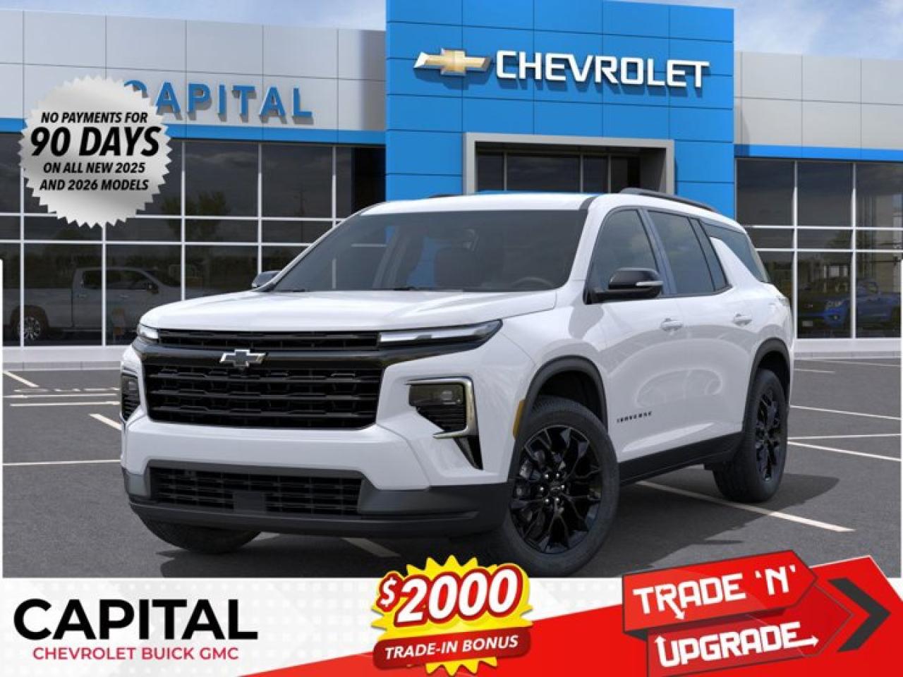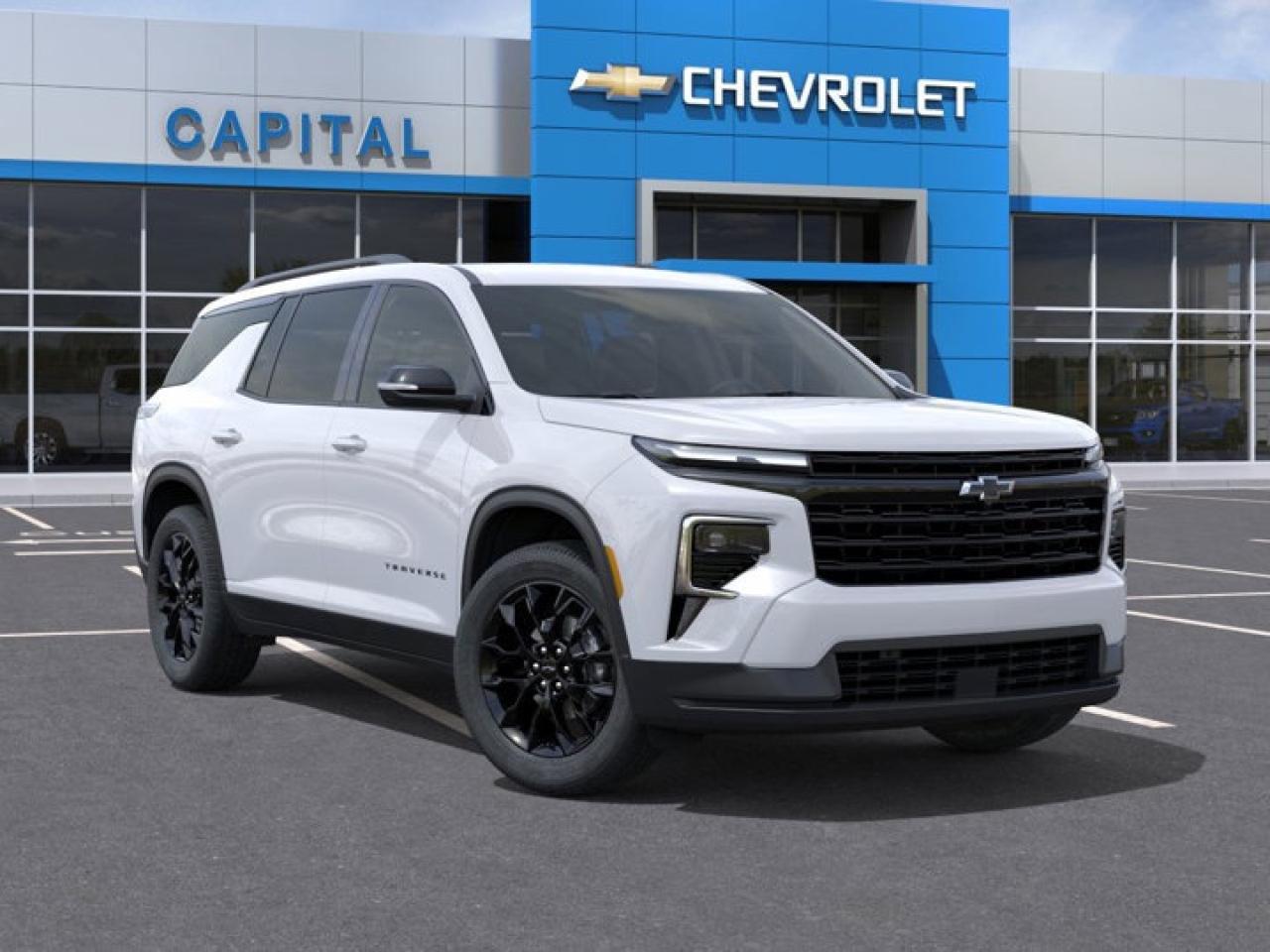 This Chevrolet Traverse delivers a Gas I4 2.5L/ engine powering this Automatic transmission. TRANSMISSION, 8-SPEED AUTOMATIC (STD), MIDNIGHT/SPORT EDITION includes Black grille with unique finish, Chevrolet Black bowties, Black nameplate (and AWD badge on AWD models), (BSW) high gloss Black door upper and low gloss Black belt mouldings, (SLV) 20" High Gloss Black painted aluminum wheels and (Q3N) 255/55R20 all-season blackwall tires, LT PREFERRED EQUIPMENT GROUP Includes standard equipment.* This Chevrolet Traverse Features the Following Options *LPO, FLOOR LINER PACKAGE includes (CAV) Integrated cargo liner, LPO, (RIA) first and second row All-weather floor liners, LPO and (RIB) third row All-weather floor liner, LPO , LT JET BLACK, EVOTEX SEAT TRIM, LPO, INTEGRATED CARGO LINER, LPO, ALL-WEATHER FLOOR LINERS, FIRST AND SECOND ROW, LPO, ALL-WEATHER FLOOR LINER, THIRD ROW, ENGINE, 2.5L TURBO DOHC SIDI WITH VARIABLE VALVE TIMING (VVT) (328 hp [244 kW] @ 5500 rpm, 326 lb-ft of torque [442 N-m] @ 3500 rpm) (STD), ENGINE BLOCK HEATER, 3 YEARS SIRIUSXM, Wireless Phone Charging, Windows, remote express-up/-down driver and express-down all passengers.* Visit Us Today *Test drive this must-see, must-drive, must-own beauty today at Capital Chevrolet Buick GMC Inc., 13103 Lake Fraser Drive SE, Calgary, AB T2J 3H5.