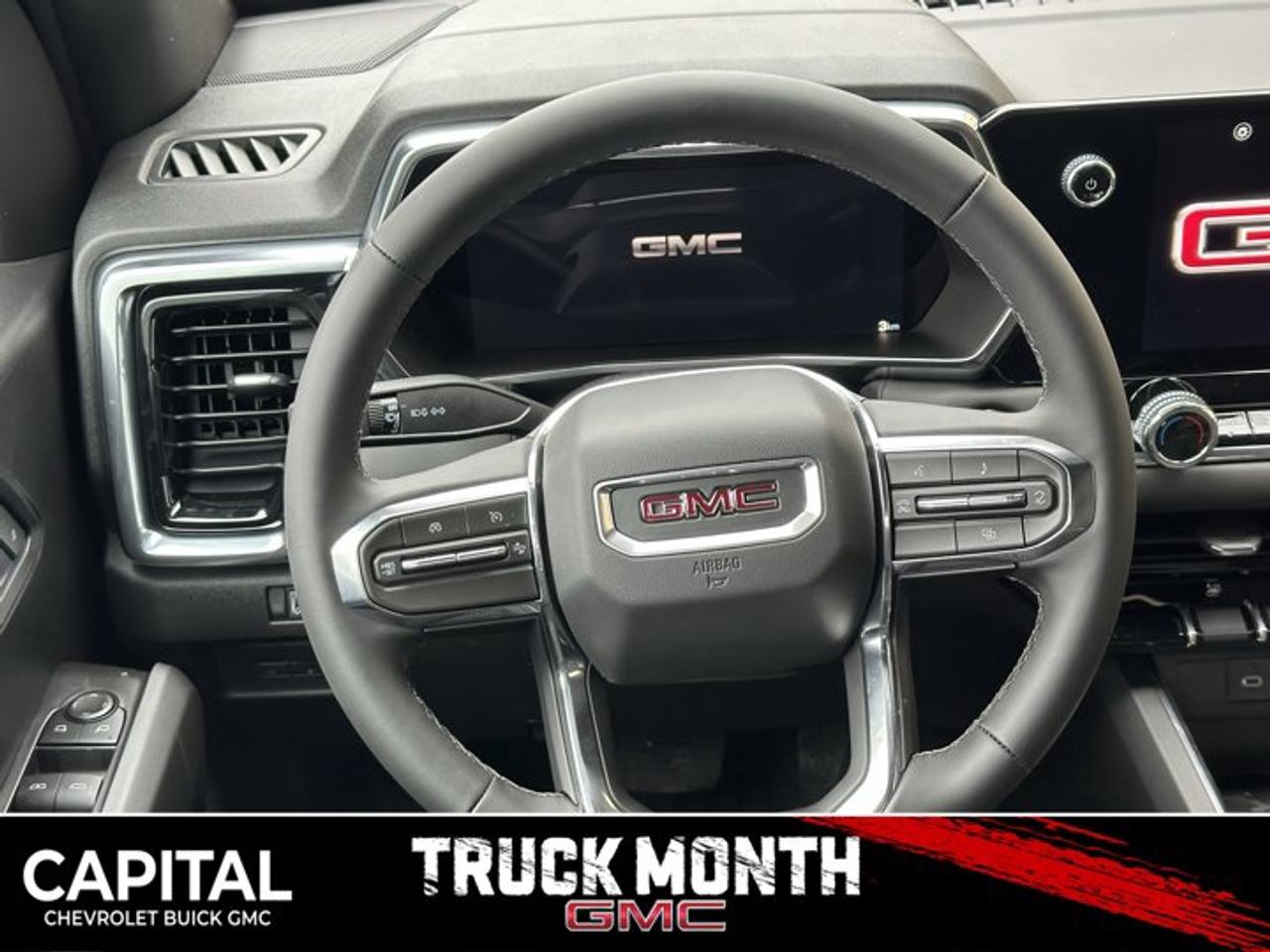 This GMC Canyon delivers a Turbocharged Gas I4 2.7L/ engine powering this Automatic transmission. TRANSMISSION, 8-SPEED AUTOMATIC, 8L80 (STD), REAR AXLE, 3.42 RATIO, ONYX BLACK.*This GMC Canyon Comes Equipped with These Options *CONVENIENCE PACKAGE includes (DEG) Driver and front passenger sliding visor with illuminated vanity mirrors, (T40) LED front fog lamps, (CJ2) dual zone automatic climate control, (KI6) 120-volt power outlet rear of console, (KC9) 120-volt bed-mounted power outlet, (BTV) Remote Start, (DD8) inside rear view auto-dimming mirror, (N37) manual tilt/telescoping steering column, (UBI) 2-USB Charge Only, rear of console, (BDR) Tailgate keyed cylinder lock, (BPC) MultiStow Tailgate, (C75) Front interior courtesy light with dual reading light and (PPA) EZ-Lift and Lower tailgate , LPO, CARGO TIE-DOWNS, (4) (dealer-installed), LPO, BLACK ASSIST STEP (dealer-installed), LPO, ALL-WEATHER FLOOR LINER, 1ST AND 2ND ROWS includes GMC logo, (dealer-installed), ENGINE, TURBOMAX (310 hp [231 kW] @ 5600 rpm, 430 lb-ft of torque [583 Nm] @ 3000 rpm) (STD), ENGINE BLOCK HEATER, ELEVATION PREFERRED EQUIPMENT GROUP includes standard equipment, 3 YEARS SIRIUSXM, Wireless Apple CarPlay/Wireless Android Auto, Windows, remote Express-Down, all windows.* Stop By Today *Stop by Capital Chevrolet Buick GMC Inc. located at 13103 Lake Fraser Drive SE, Calgary, AB T2J 3H5 for a quick visit and a great vehicle!