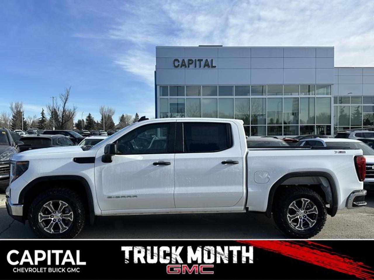 This GMC Sierra 1500 delivers a Gas V8 5.3L/325 engine powering this Automatic transmission. X31 OFF-ROAD PACKAGE includes Off-Road suspension, (JHD) Hill Descent Control, (NZZ) skid plates, (K47) heavy-duty air filter and X31 hard badge Includes (G80) auto-locking rear differential and (NQH) 2-speed transfer case., WHEELS, 18" X 8.5" (45.7 CM X 21.6 CM) 6-SPOKE MACHINED ALUMINUM with Dark Grey Metallic accents, TRANSMISSION, 10-SPEED AUTOMATIC, (COLUMN SHIFTER) ELECTRONICALLY CONTROLLED with overdrive and tow/haul mode. Includes Cruise Grade Braking and Powertrain Grade Braking.* This GMC Sierra 1500 Features the Following Options *PRO VALUE PACKAGE includes (PCI) Convenience Package and (Z82) Trailering Package , TIRES, LT275/65R18C BLACKWALL GOODYEAR WRANGLER TERRITORY MT, REAR AXLE, 3.23 RATIO, PRO PREFERRED EQUIPMENT GROUP includes standard equipment, LPO, CARGO TIE-DOWNS, (4) (dealer-installed), LPO, ALL-WEATHER FLOOR LINER, 1ST AND 2ND ROWS (dealer-installed), GVWR, 7100 LBS. (3221 KG), FLOOR COVERING, COLOUR-KEYED CARPETING Includes (B32) front floor mats and (B33) rear floor mats on Crew Cab and Double Cab models.), ENGINE, 5.3L ECOTEC3 V8 (355 hp [265 kW] @ 5600 rpm, 383 lb-ft of torque [518 Nm] @ 4100 rpm); featuring Dynamic Fuel Management (Includes (KW7) 170-amp alternator and (MHT) 10-speed automatic transmission., ENGINE BLOCK HEATER.* Visit Us Today *Live a little- stop by Capital Chevrolet Buick GMC Inc. located at 13103 Lake Fraser Drive SE, Calgary, AB T2J 3H5 to make this car yours today!