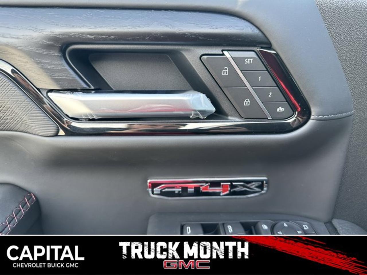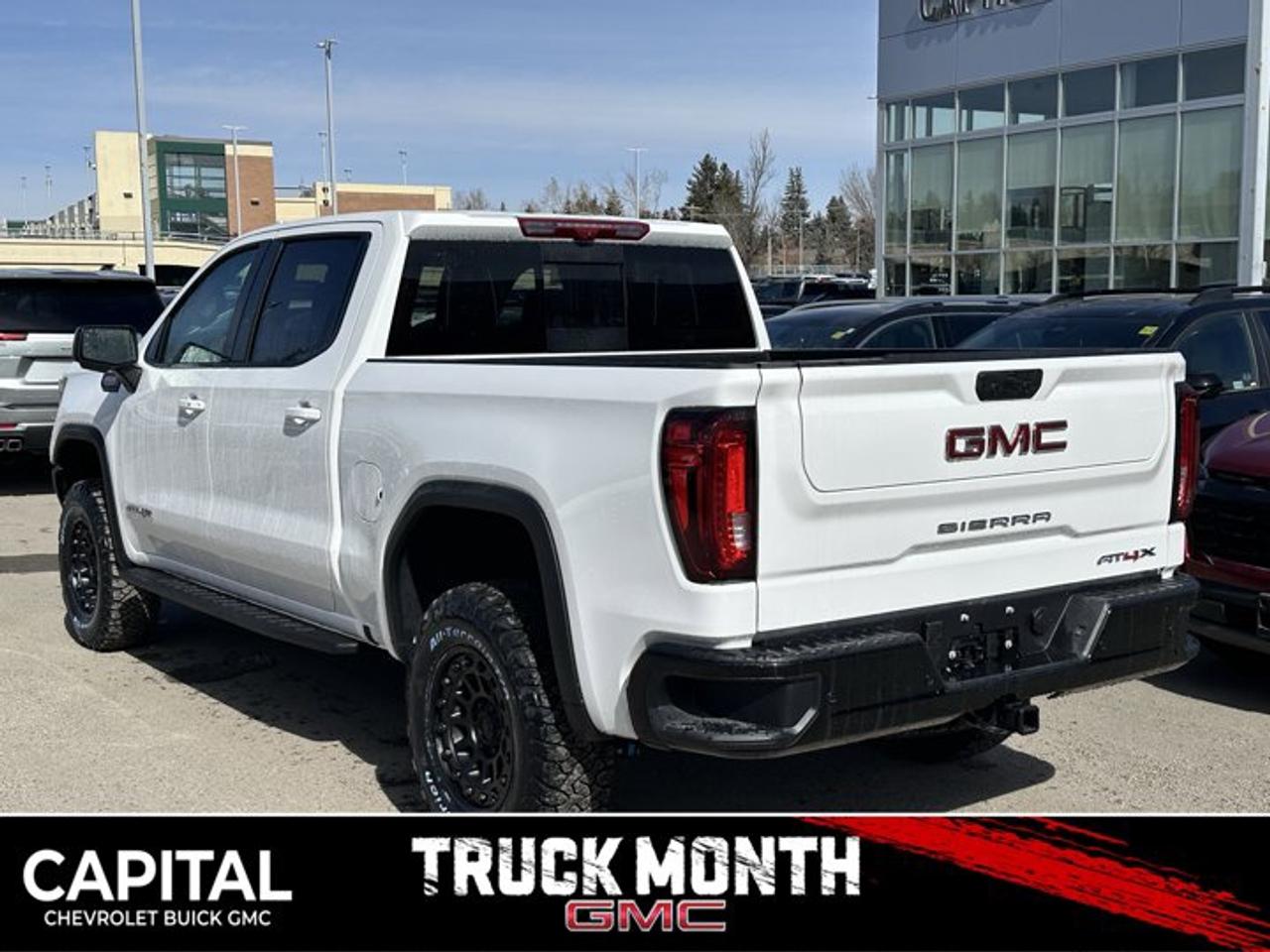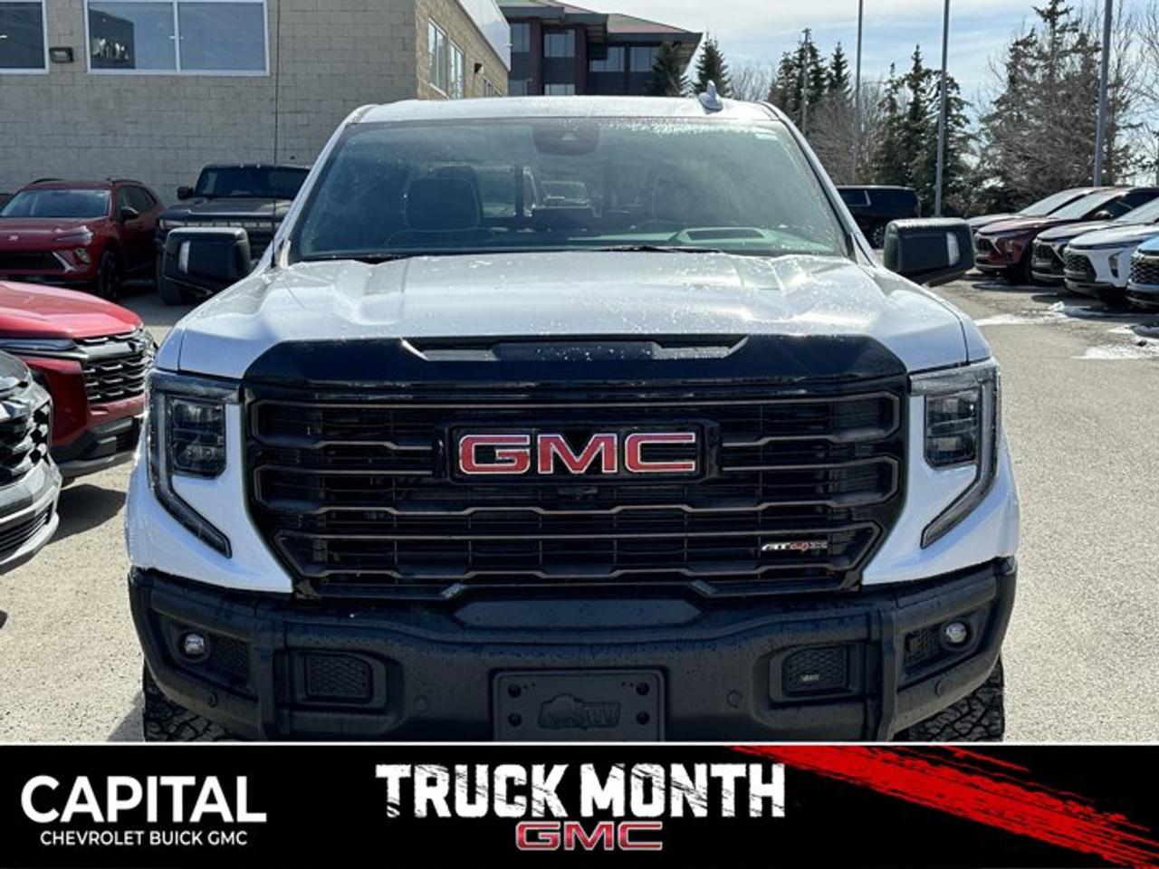 Accessories Include: Levelling Kit, Upgraded wheels & tires.Delivers 15 Highway MPG and 17 City MPG! This GMC Sierra 1500 boasts a Gas V8 6.2L/376 engine powering this Automatic transmission. TRANSMISSION, 10-SPEED AUTOMATIC WITH ELECTRONIC PRECISION SHIFT, ELECTRONICALLY CONTROLLED with overdrive, and tow/haul mode and steering column paddle shifters. Includes Cruise Grade Braking and Powertrain Grade Braking, REAR AXLE, 3.23 RATIO, LPO, SPORT PEDAL COVER KIT (dealer-installed).*This GMC Sierra 1500 Comes Equipped with These Options *LPO, OFF-ROAD HIGH CLEARANCE STEPS (dealer-installed), LPO, GMC MULTIPRO TAILGATE STEP LIGHTS (dealer-installed), LPO, CARGO TIE-DOWNS, (4) (dealer-installed), LICENSE PLATE KIT, FRONT, GVWR, 7100 LBS. (3221 KG), ENGINE, 6.2L ECOTEC3 V8 (420 hp [313 kW] @ 5600 rpm, 460 lb-ft of torque [624 Nm] @ 4100 rpm); featuring Dynamic Fuel Management, ENGINE BLOCK HEATER, AT4X PREFERRED EQUIPMENT GROUP includes standard equipment, ACTIVE EXHAUST, DUAL, SPORT-MODE ENABLED, 3 YEARS SIRIUSXM.*Visit Us Today *Test drive this must-see, must-drive, must-own beauty today at Capital Chevrolet Buick GMC Inc., 13103 Lake Fraser Drive SE, Calgary, AB T2J 3H5.