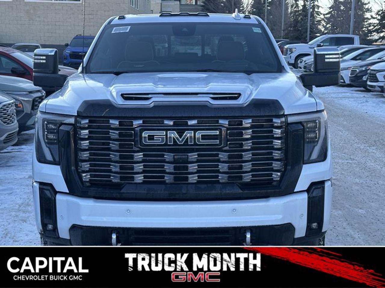 Accessories include tonneau cover.This GMC Sierra 3500HD boasts a Turbocharged Diesel V8 6.6L/ engine powering this Automatic transmission. TRANSMISSION, 10-SPEED AUTOMATIC (STD), REAR AXLE, 3.42 RATIO, PREMIUM FLOOR LINERS WITH REMOVABLE CARPET INSERT, FRONT.*This GMC Sierra 3500HD Comes Equipped with These Options *HEAVY DUTY FRONT SPRING/CAMPER PACKAGE Note: If ordered for Camper usage, recommend ordering (UY2) Trailering wiring provisions, GOOSENECK / 5TH WHEEL PREP PACKAGE -- Hitch platform to accept Gooseneck or 5th Wheel hitch. Includes hitch platform with tray to accept ball, stamped bed holes with removable caps installed and bed mounted 7-pin trailer harness (similar to UY2 harness). , POLAR WHITE TRICOAT, LPO, CARGO TIE-DOWN RINGS, SET OF 4 (dealer-installed), LPO, BODY COLOUR WHEEL ARCH MOULDINGS (dealer-installed), HIGH IDLE SWITCH, ENGINE, DURAMAX 6.6L TURBO-DIESEL V8, B20-DIESEL COMPATIBLE (470 hp [350.5 kW] @ 2800 rpm, 975 lb-ft of torque [1322 Nm] @ 1600 rpm) (STD), DENALI ULTIMATE PREFERRED EQUIPMENT GROUP includes standard equipment, ALTERNATORS, DUAL, 220-AMPS PRIMARY, 170-AMPS AUXILIARY, 3 YEARS SIRIUSXM.*Visit Us Today *Stop by Capital Chevrolet Buick GMC Inc. located at 13103 Lake Fraser Drive SE, Calgary, AB T2J 3H5 for a quick visit and a great vehicle!