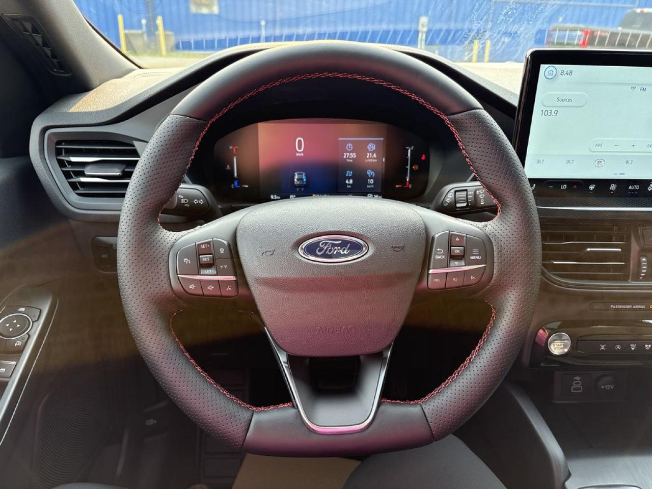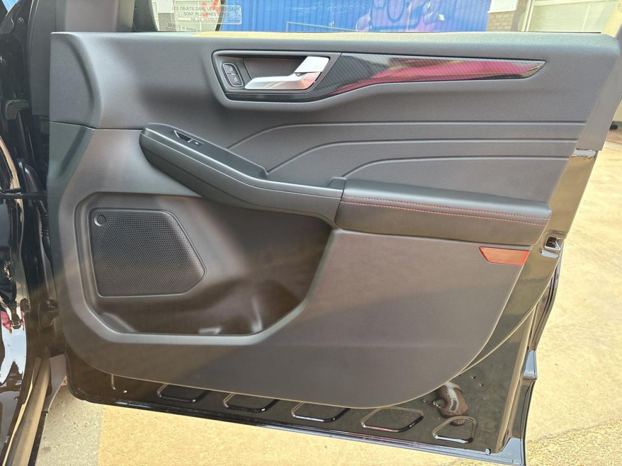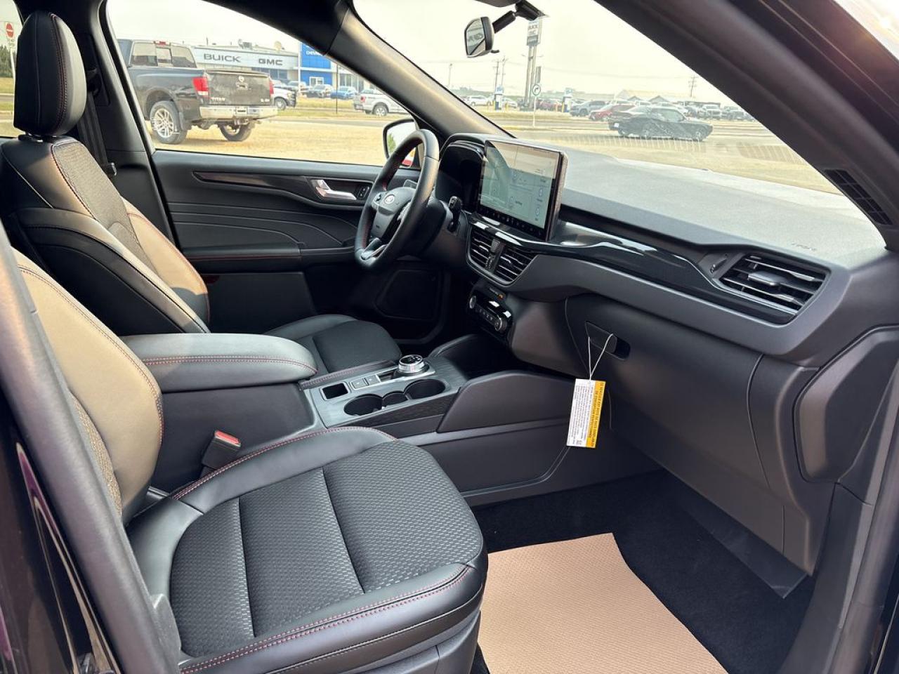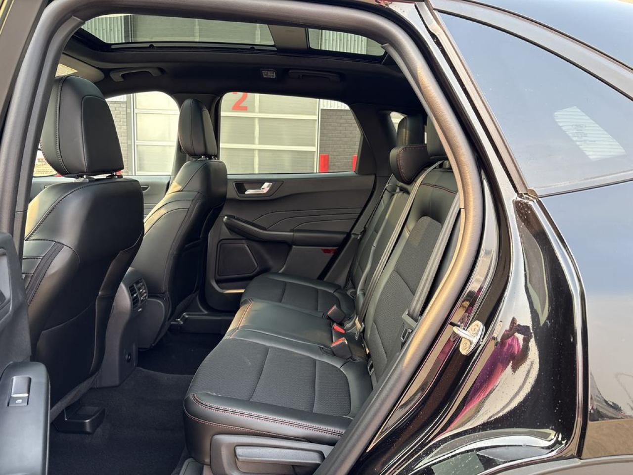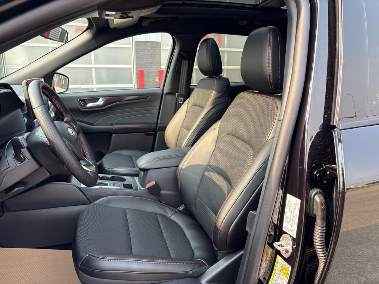 Partial Vinyl and Cloth Seats with Red Stitching