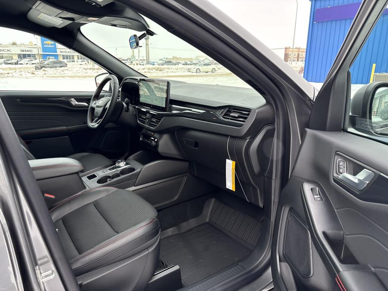Partial Vinyl and Cloth Seats with Red Stitching