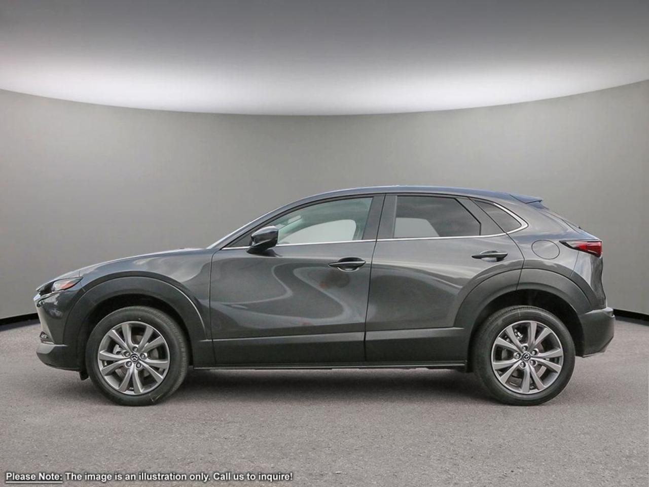 INCOMING UNITOur brilliant 2025 Mazda CX-30 GS takes center stage in Machine Grey Metallic! It's powered by a 2.5 Liter 4 Cylinder engine that produces 187 horsepower while paired to a 6-Speed automatic transmission with G-Vectoring Control. It's absolutely stunning with alloy wheels, LED headlights/taillights, dual-exhaust, and a rear roof spoiler! The GS welcomes you with supportive leatherette seating,drivermemory seat settings,heated front seats, a leather-wrapped heated steering wheel with mounted audio/cruise controls, and a power sunroof.It's also equipped with wireless Apple CarPlay/Android Auto,a wireless charger, Mazda Connect infotainment featuring a color 10.25-inch display, a multi-function commander control, an impressive 8 speaker sound system, and Bluetooth.Our Mazda gives you peace of mind with a variety of safety functions including a backup camera, blind-spot monitoring, lane departure warning, rear cross traffic alert, lane-keep assist, forward collision warning, stability and traction control, Hill Launch Assist, and Smart City Brake Support and more! Print this page and call us Now... We Know You Will Enjoy Your Test Drive Towards Ownership! We look forward to showing you why Go Mazda is the best place for all your automotive needsGo Mazda is an AMVIC licensed business.Please note that a new administration fee from Mazda Canada of $795 will apply to finance and cash purchases. effective February 1, 2024.