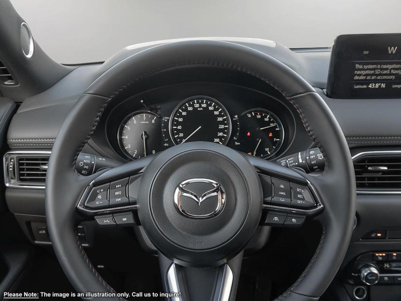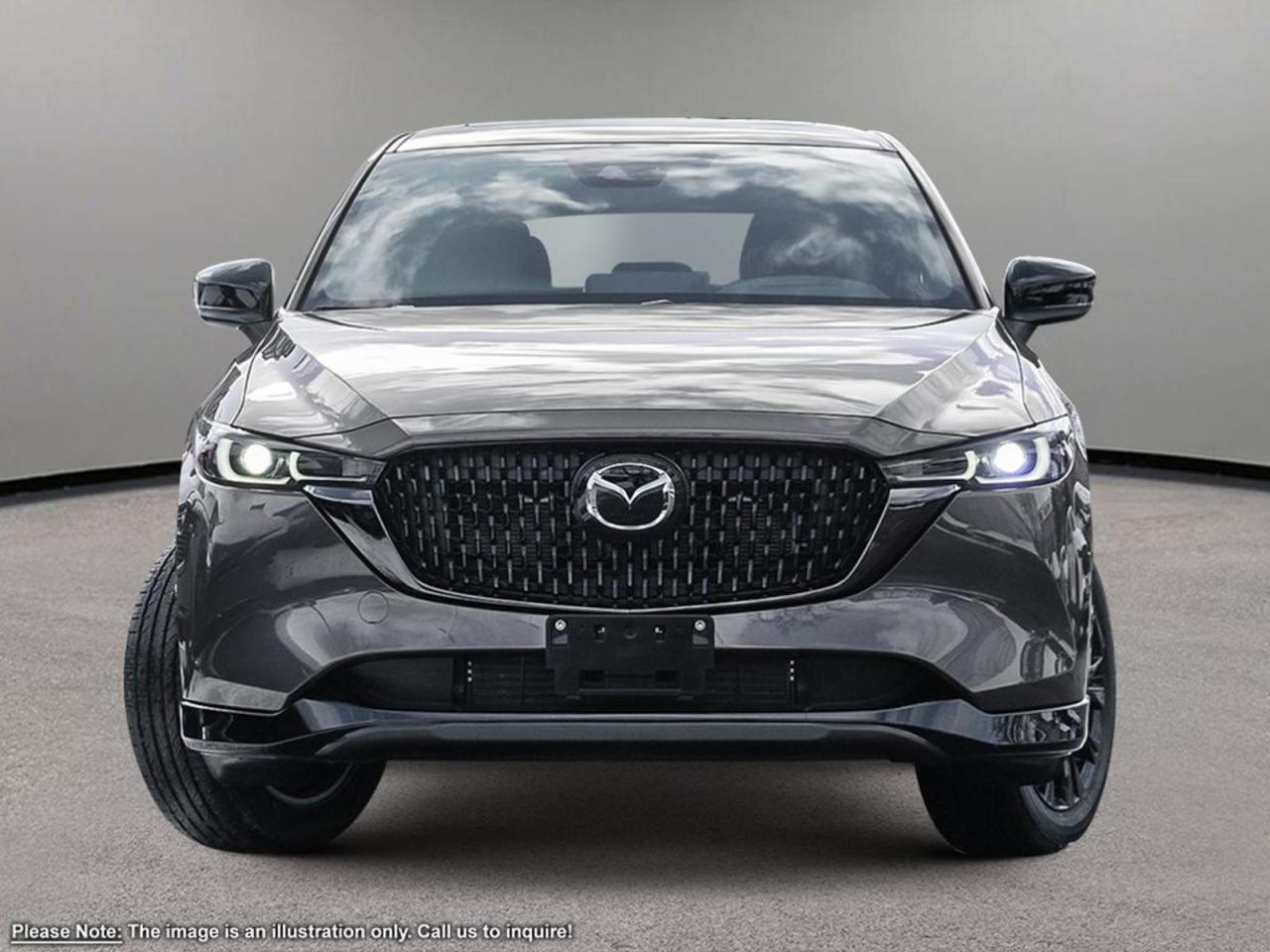 INCOMING UNITOur 2025 Mazda CX-5 Sport Design combines performance and style in one outstanding package shown in Machine Grey Metallic! It's powered by a Dynamic Pressure Turbocharged 2.5 Liter 4 Cylinder engine that generates 250 horsepower (with premium fuel) while paired to a smooth-shifting 6-Speed Automatic transmission. Our All-Wheel Drive SUV has G-Vectoring Control for a fascinating drive, yielding near 8.7L/100km on the highway while showing off black alloy wheels/grille/mirrors, the rear roof spoiler, LED headlights, fog lights and taillights. Inside this roomy Sport Design, settle into leather heated/vented front seats, grip the leather-wrapped heated steering wheel with mounted audio/cruise controls, and look up to see a sunroof!It's also equipped with rear heated seats, wireless Apple CarPlay/Android Auto, a wireless charger, a 10.25-inchinfotainment system withMazda Connect, navigation, a multi-function commander control, AM/FM/HD audio, Bose speakers, and Bluetooth. This remarkably-styled CX-5 was made with you in mind!You'll drive confidently knowing our Mazda has received superior safety ratings and that you are surrounded by an array of safety features including a backup camera, blind-spot monitoring, a lane departure warning system, rear cross traffic alert, smart city brake support, dynamic stability control, traction control, and a multitude of advanced airbags. Refined, modern, highly functional, and highly desirable, this CX-5 Sport Design is practically calling your name! Print this page and call us Now... We Know You Will Enjoy Your Test Drive Towards Ownership!Go Mazda is an AMVIC licensed businessPlease note that a new administration fee from Mazda Canada of $795 will apply to finance and cash purchases. effective February 1, 2024.