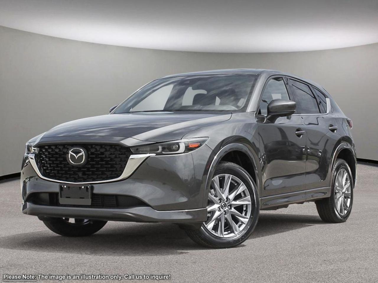 INCOMING UNITToday is your day with our 2025 Mazda CX-5 GT that looks phenomenal in Polymetal Metallic! It's powered by a 2.5 Liter 4 Cylinder engine that produces 187 horsepower while paired to a 6-Speed automatic transmission with G-Vectoring Control. You'll leave other All-Wheel Drive SUV's in your dust while enjoying excellent handling with precise steering, all while scoring near 7.6L/100km on the highway. It's absolutely stunning with alloy wheels, LED headlights/taillights and, a rear roof spoiler!Inside this spacious GT, settle into leather heated/vented front seats that have driver memory settings, grip the leather-wrapped heated steering wheel with mounted audio/cruise controls (adaptive), and look up to see a power sunroof!It's also equipped with rear heated seats, wireless Apple CarPlay/Android Auto, a wireless charger, a 10.25-inchinfotainment system withMazda Connect, a multi-function commander control, AM/FM/HD audio, Bose speakers, and Bluetooth. This remarkably-styled CX-5 was made with you in mind!You'll drive confidently knowing our Mazda has received superior safety ratings and that you are surrounded by an array of safety features including a backup camera, blind-spot monitoring, a lane departure warning system, rear cross traffic alert, smart city brake support, dynamic stability control, traction control, and a multitude of advanced airbags. Refined, modern, highly functional, and highly desirable, this CX-5 GT is practically calling your name! Print this page and call us Now... We Know You Will Enjoy Your Test Drive Towards Ownership!Go Mazda is an AMVIC licensed business.Please note that a new administration fee from Mazda Canada of $795 will apply to finance and cash purchases. effective February 1, 2024.