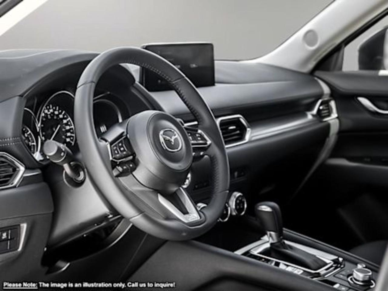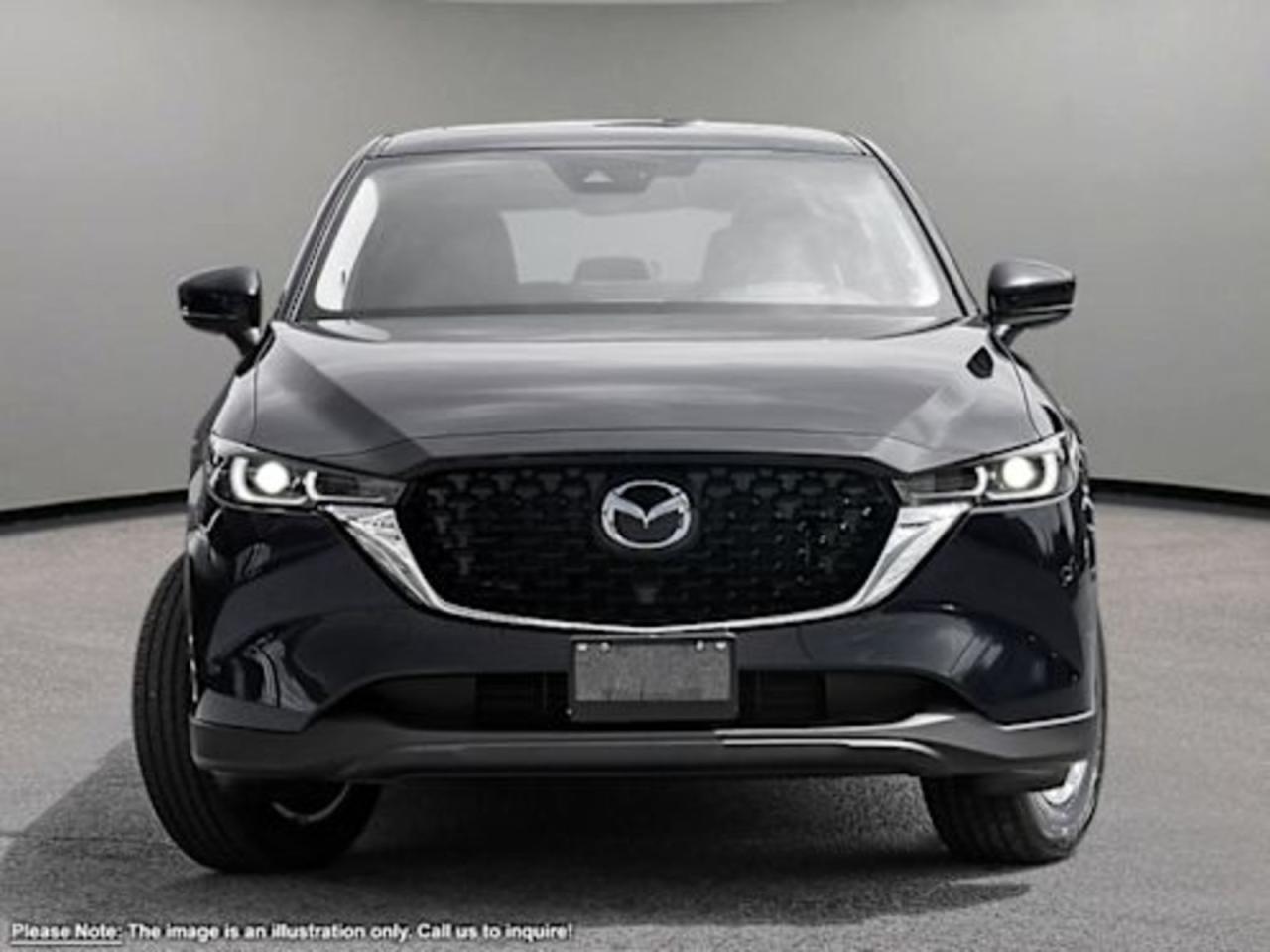 CURRENT SERVICE LOANER! PLEASE CALL TO BOOK TEST DRIVE IN ADVANCE!Our brilliant 2025 Mazda CX-5 GS Comfort takes center stage in Jet Black Mica! It's powered by a 2.5 Liter 4 Cylinder engine that produces 187 horsepower while paired to a 6-Speed automatic transmission with G-Vectoring Control. You'll leave other All-Wheel Drive SUV's in your dust while enjoying excellent handling with precise steering, all while scoring near 7.6L/100km on the highway. It's absolutely stunning with alloy wheels, LED headlights/taillights and, a rear roof spoiler! The GS Comfort welcomes you with advanced keyless entry, supportive leatherette seating, heated front seats, and a leather-wrapped heated steering wheel with mounted audio/cruise controls (adaptive).It's also equipped with wireless Apple CarPlay/Android Auto, a wireless charger, a 10.25-inchinfotainment system withMazda Connect, a multi-function commander control, AM/FM/HD audio, and Bluetooth. This remarkably-styled CX-5 was made with you in mind!You'll drive confidently knowing our Mazda has received superior safety ratings and that you are surrounded by an array of safety features including a backup camera, blind-spot monitoring, a lane departure warning system, rear cross traffic alert, smart city brake support, dynamic stability control, traction control, and a multitude of advanced airbags. Refined, modern, highly functional, and highly desirable, this CX-5 GS is practically calling your name! Print this page and call us Now... We Know You Will Enjoy Your Test Drive Towards Ownership!Go Mazda is an AMVIC licensed business.Please note that a new administration fee from Mazda Canada of $795 will apply to finance and cash purchases. effective February 1, 2024.