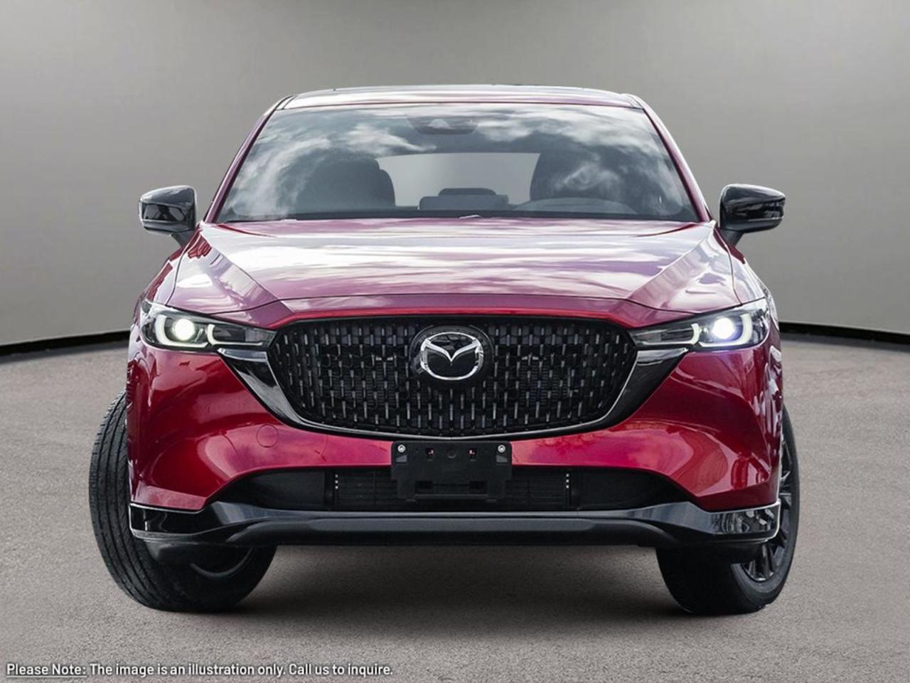 INCOMING UNITOur 2025 Mazda CX-5 Sport Design combines performance and style in one outstanding package shown in Soul Red Crystal Metallic! It's powered by a Dynamic Pressure Turbocharged 2.5 Liter 4 Cylinder engine that generates 250 horsepower (with premium fuel) while paired to a smooth-shifting 6-Speed Automatic transmission. Our All-Wheel Drive SUV has G-Vectoring Control for a fascinating drive, yielding near 8.7L/100km on the highway while showing off black alloy wheels/grille/mirrors, the rear roof spoiler, LED headlights, fog lights and taillights.Inside this roomy Sport Design, settle into leather heated/vented front seats, grip the leather-wrapped heated steering wheel with mounted audio/cruise controls, and look up to see a sunroof!It's also equipped with rear heated seats, wireless Apple CarPlay/Android Auto, a wireless charger, a 10.25-inchinfotainment system withMazda Connect, navigation, a multi-function commander control, AM/FM/HD audio, Bose speakers, and Bluetooth. This remarkably-styled CX-5 was made with you in mind!You'll drive confidently knowing our Mazda has received superior safety ratings and that you are surrounded by an array of safety features including a backup camera, blind-spot monitoring, a lane departure warning system, rear cross traffic alert, smart city brake support, dynamic stability control, traction control, and a multitude of advanced airbags. Refined, modern, highly functional, and highly desirable, this CX-5 Sport Design is practically calling your name! Print this page and call us Now... We Know You Will Enjoy Your Test Drive Towards Ownership!Go Mazda is an AMVIC licensed businessPlease note that a new administration fee from Mazda Canada of $795 will apply to finance and cash purchases. effective February 1, 2024.