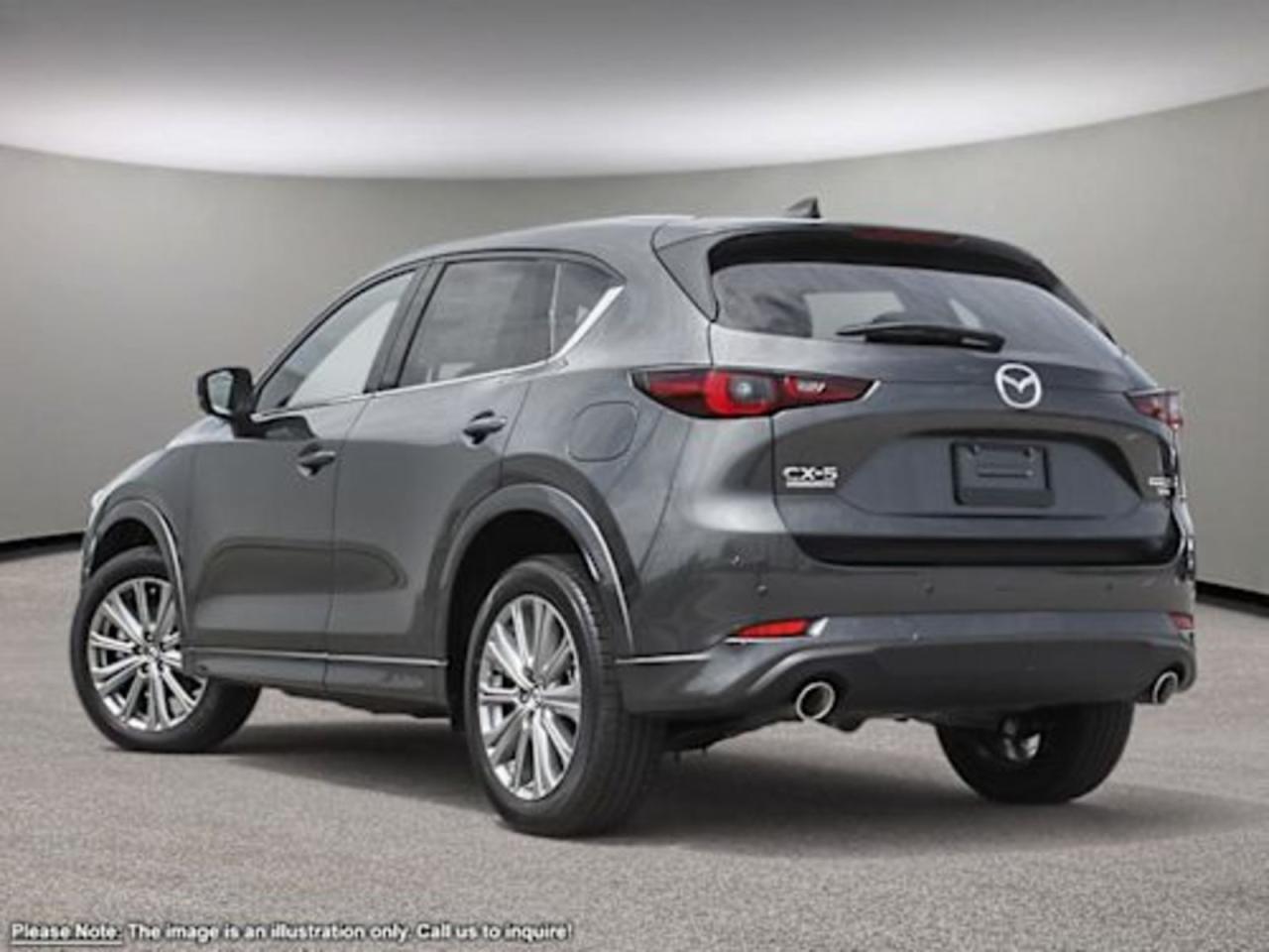INCOMING UNITLove every mile behind the wheel of this 2025 Mazda CX-5 Signature that takes the stage in Machine Grey Metallic! It's powered by a Dynamic Pressure Turbocharged 2.5 Liter 4 Cylinder that produces 250 horsepower (with premium fuel) at your command while mated to a responsive 6-Speed Automatic transmission. Our All-Wheel Drive SUV has G-Vectoring Control,yielding near 7.7L/100km on the highway while showing off silver alloy wheels, the rear roof spoiler, LED headlights, fog lights and taillights.The spacious Signature cabin greets you withCaturraBrown Nappa leather heated/vented front seating with heated rear seats, a leather-wrapped heated steering wheel with mounted audio/cruise controls (adaptive), and a power sunroof!It's also equipped with rear heated seats, wireless Apple CarPlay/Android Auto, a wireless charger, a 10.25-inchinfotainment system withMazda Connect, navigation, a multi-function commander control, AM/FM/HD audio, Bose speakers, and Bluetooth. This remarkably-styled CX-5 was made with you in mind!You'll drive confidently knowing our Mazda has received superior safety ratings and that you are surrounded by an array of safety features including a 360-degree backup camera, blind-spot monitoring, a lane departure warning system, lane-keep assist, rear cross traffic alert, smart city brake support, dynamic stability control, traction control, and a multitude of advanced airbags. Refined, modern, highly functional, and highly desirable, this CX-5 Signature is practically calling your name! Print this page and call us Now... We Know You Will Enjoy Your Test Drive Towards Ownership!Go Mazda is an AMVIC licensed businessPlease note that a new administration fee from Mazda Canada of $795 will apply to finance and cash purchases. effective February 1, 2024.