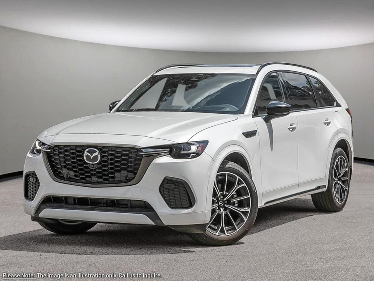 INCOMING UNITToday is your day with our 2025 Mazda CX-70 MHEV Signature that looks phenomenal in Rhodium White Metallic!It's powered by a Turbocharged 3.3 Liter Inline 6 engine paired with a 48 volt Lithium Ion Battery Mild Hybrid system that produces 369 horsepower with a 8-Speed automatic transmission withKinematic Posture Control. You'll leave other All-Wheel Drive SUV's in your dust while enjoying excellent handling with precise steering, all while scoring near 8.4L/100km on the highway. It's absolutely stunning with 21-inch alloy wheels, auto levelling LED headlights and, a rear roof spoiler!Inside this spacious MHEVSignature, settle into beige leather heated front seats that have memory driver seat settings (mirror memory), grip the leather-wrapped heated steering wheel with mounted audio/cruise controls (adaptative), and look up to see a power panoramic sunroof! It also has rear heated/vented seats, Mazda Connect infotainment system that features a MASSIVE 10.25-inch color display, a multi-function commander control, full-color navigation, Bose Audio, available satellite radio, Bluetooth, and a power liftgate.You'll drive our Mazda confidently knowing about its advanced safety features including a 360-degree backup camera, a camera facing forward when you're in drive, blind-spot monitoring, cruise control steering assist, adaptive cruise control, lane departure warning with lane keep assist, smart brake support, adaptive front lighting, and more! Print this page and call us Now... We Know You Will Enjoy Your Test Drive Towards Ownership! We look forward to showing you why Go Mazda is the best place for all your automotive needs.Go Mazda is an AMVIC licensed business.Please note that a new administration fee from Mazda Canada of $795 will apply to finance and cash purchases. effective February 1, 2024.