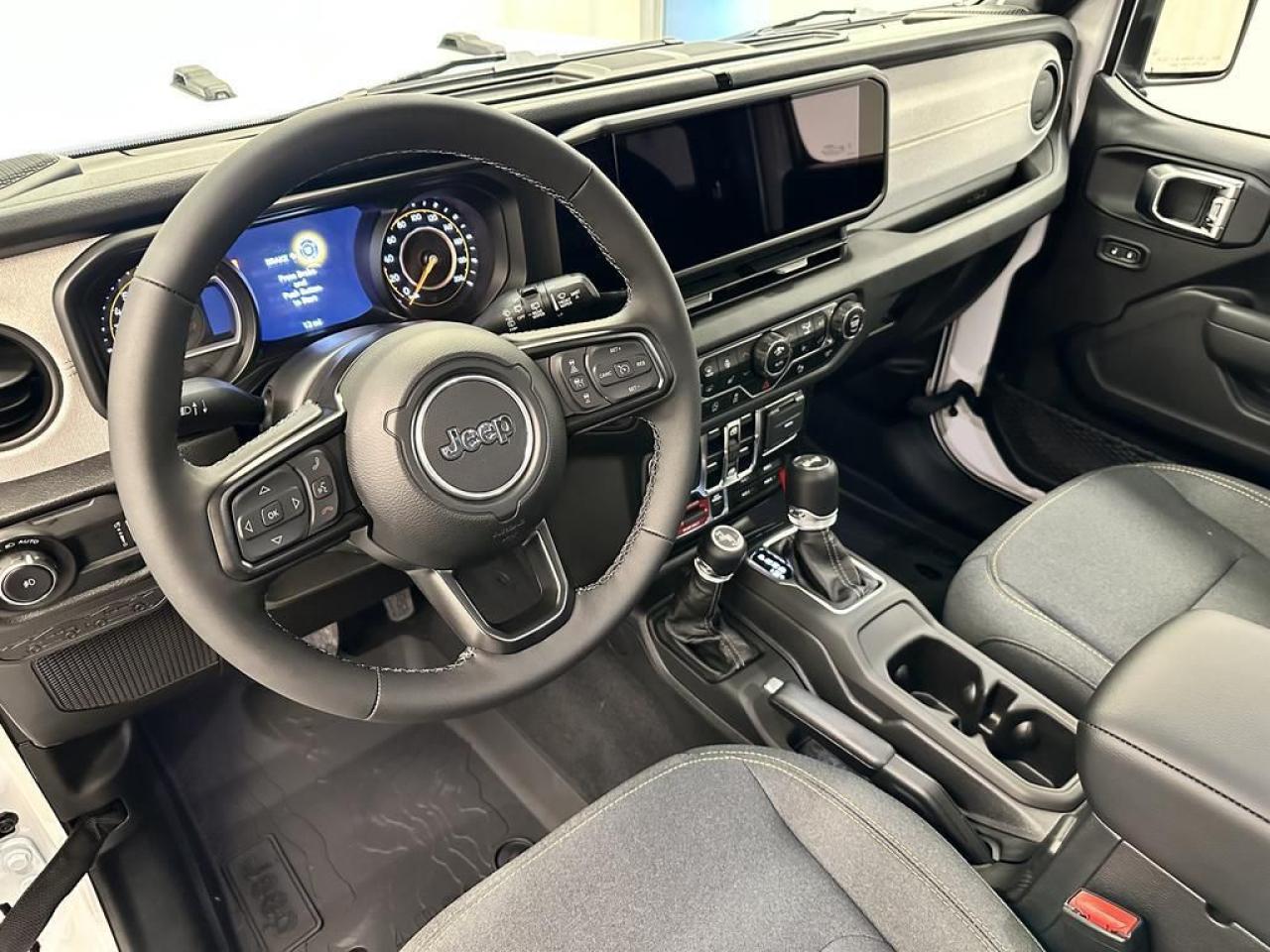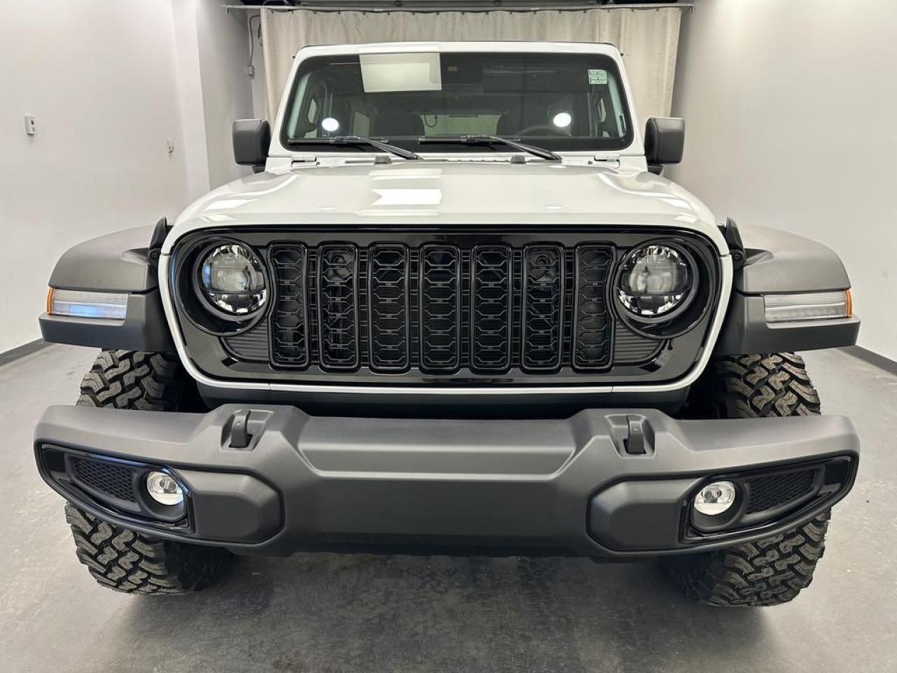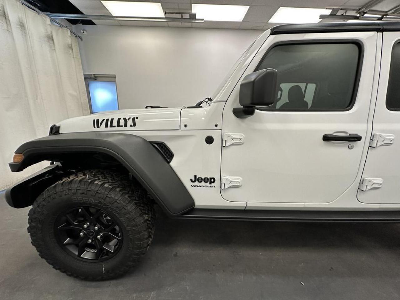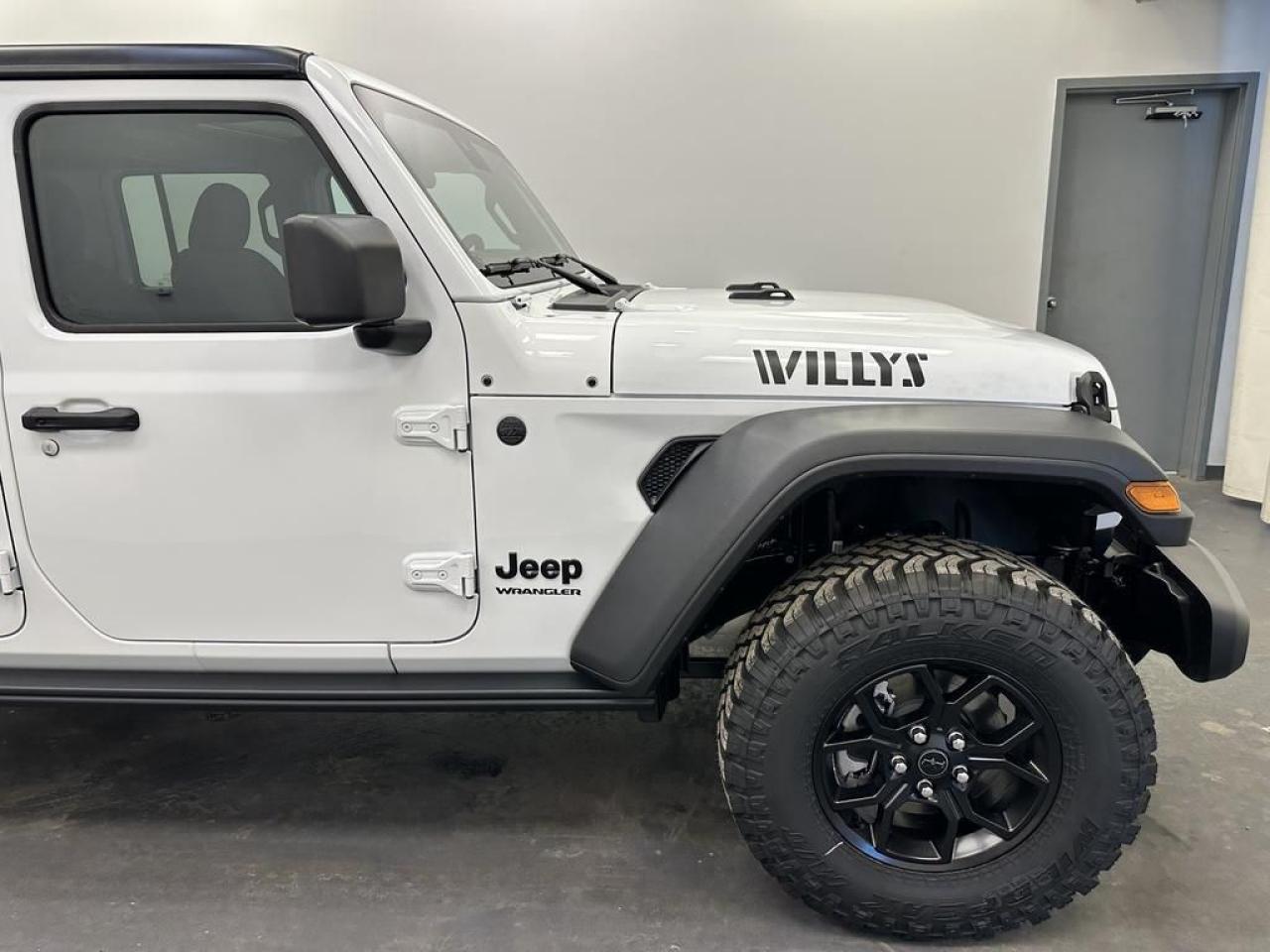 Our Wrangler's trim level is Willys. This off-road icon in the Willys trim features off-road wheels with beefier suspension, comes standard with front and rear tow hooks, front fog lamps, and a manual convertible top with fixed rollover protection. Also standard include front and rear illuminated cupholders, air conditioning, full carpet floors with all-weather mats, an 8-speaker audio system, and a 12.3-inch infotainment screen powered by Uconnect 5W, with smartphone integration and mobile hotspot internet access. Additional features include cruise control, a rearview camera, and even more. This vehicle has been upgraded with the following features: Safety Group , Freedom Top.