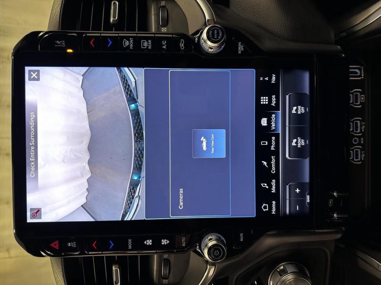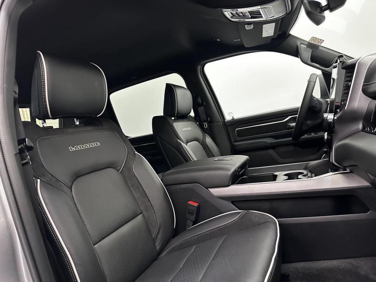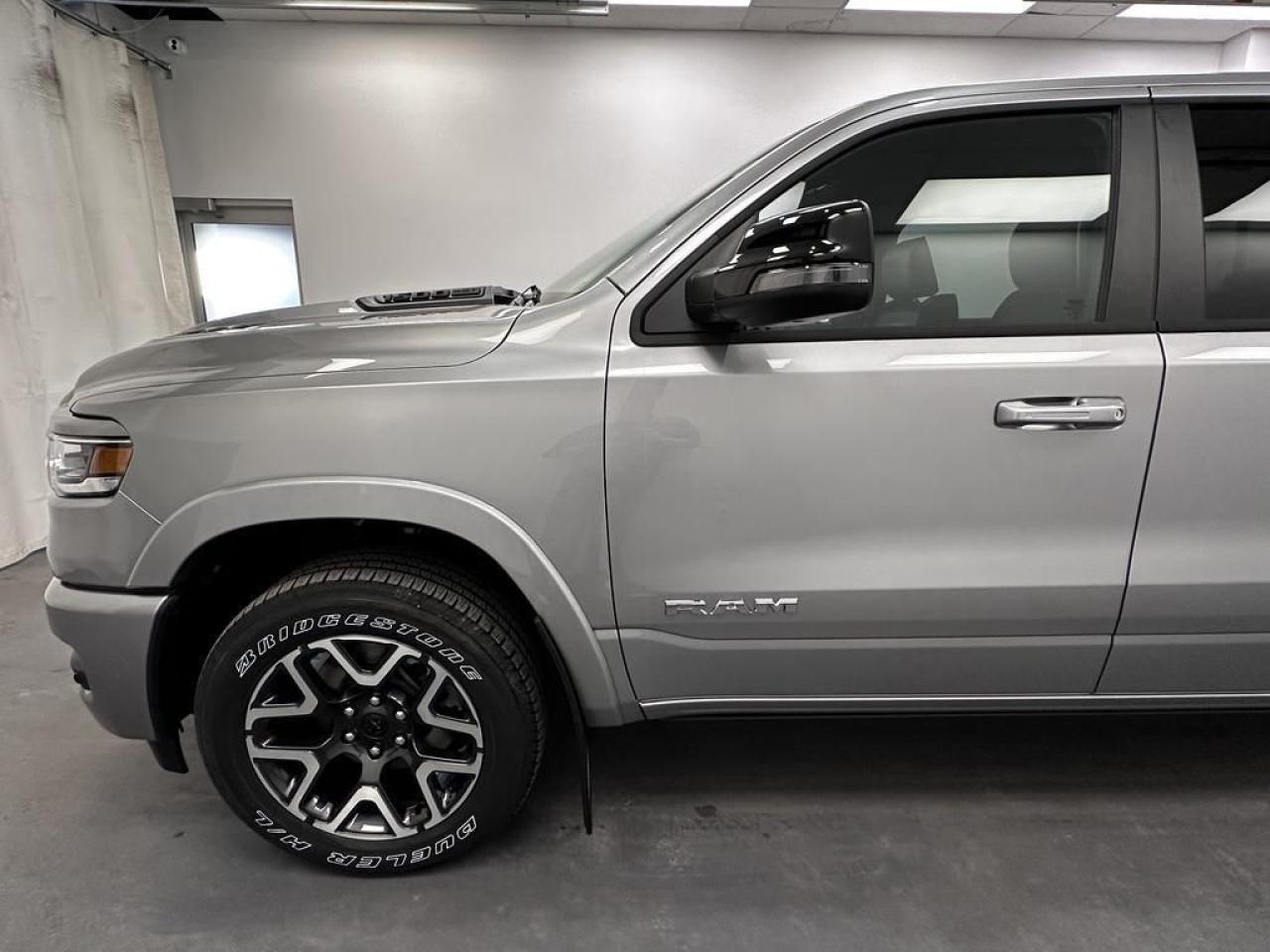 Our 1500's trim level is Laramie. This Ram 1500 Laramie rewards you with great standard features such as ventilated and heated front seats, heated second row seats, leather upholstery, a heated leather steering wheel, a 10-speaker Alpine audio system, and a 12-inch infotainment screen powered by Uconnect 5W with inbuilt navigation, Apple CarPlay, Android Auto and 4G LTE Wi-Fi hotspot. Additional features include class IV towing equipment, a trailer wiring harness, front and rear parking sensors, blind spot detection, lane keeping assist with lane departure warning, remote start, adaptive cruise control, and even more! This vehicle has been upgraded with the following features: Leather Seats, Cooled Seats, Power Running Boards, 3.92 Rear Axle.