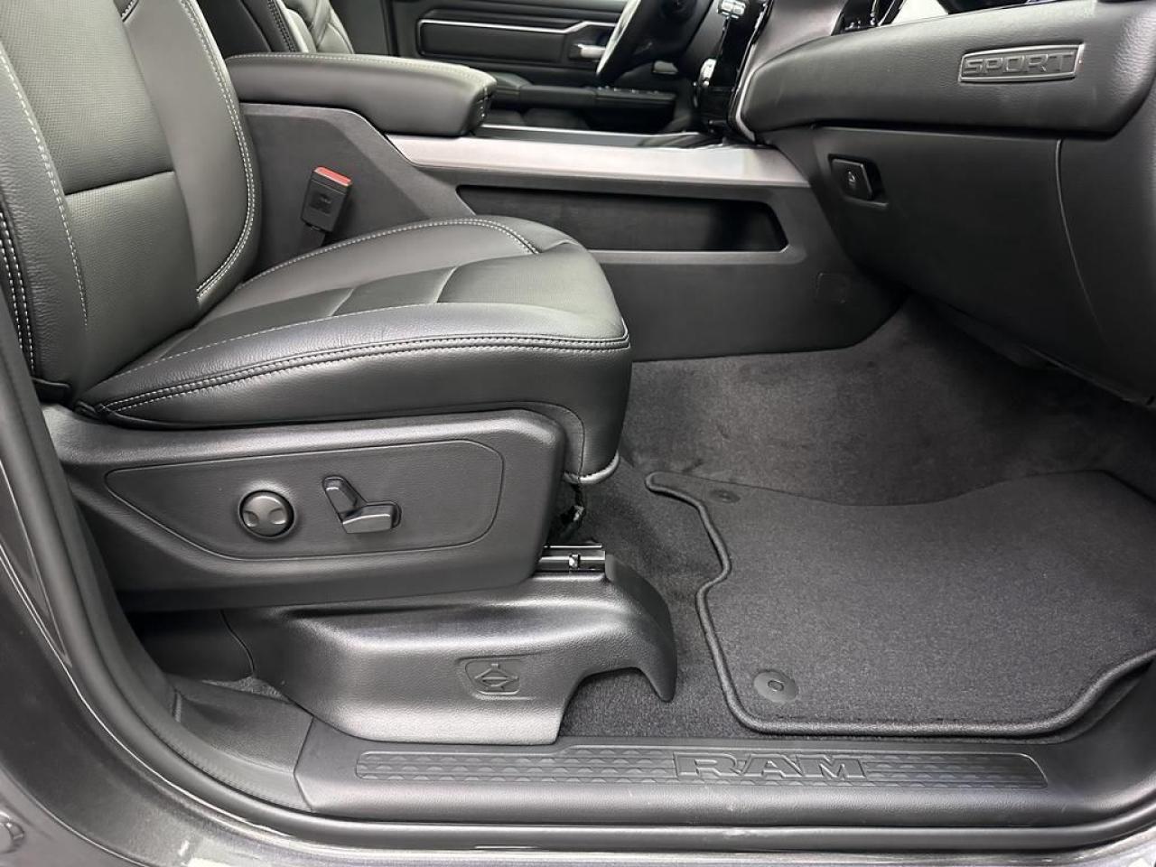 Our 1500's trim level is Sport. This Ram 1500 in Sport trim rewards you with front heated seats, a leather-wrapped heated steering wheel, a 360 camera system, a 10-speaker Alpine audio, and a 12-inch infotainment screen with inbuilt navigation, Apple CarPlay and Android Auto, and 4G LTE Wi-Fi hotspot. Additional features include class IV towing equipment, aluminum wheels, power adjustable pedals, intersection collision assist, evasion assist, lane keep assist with lane departure warning, and even more! This vehicle has been upgraded with the following features: Navigation, Apple Carplay, Android Auto, 360 Camera, Heated Seats, Heated Steering Wheel, Aluminum Wheels.