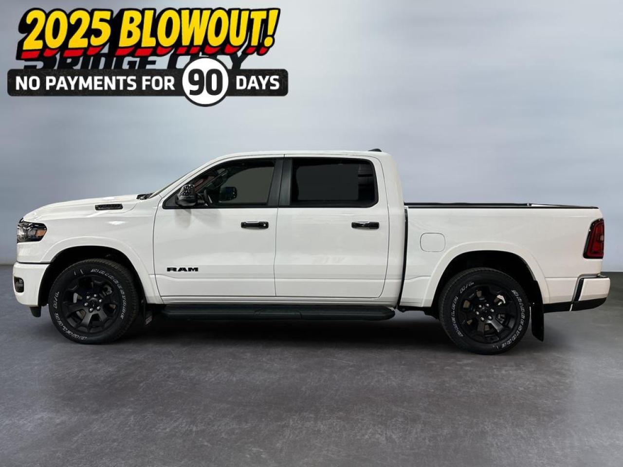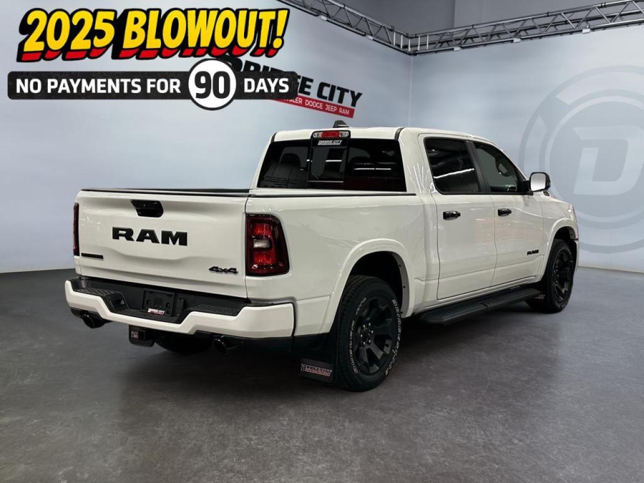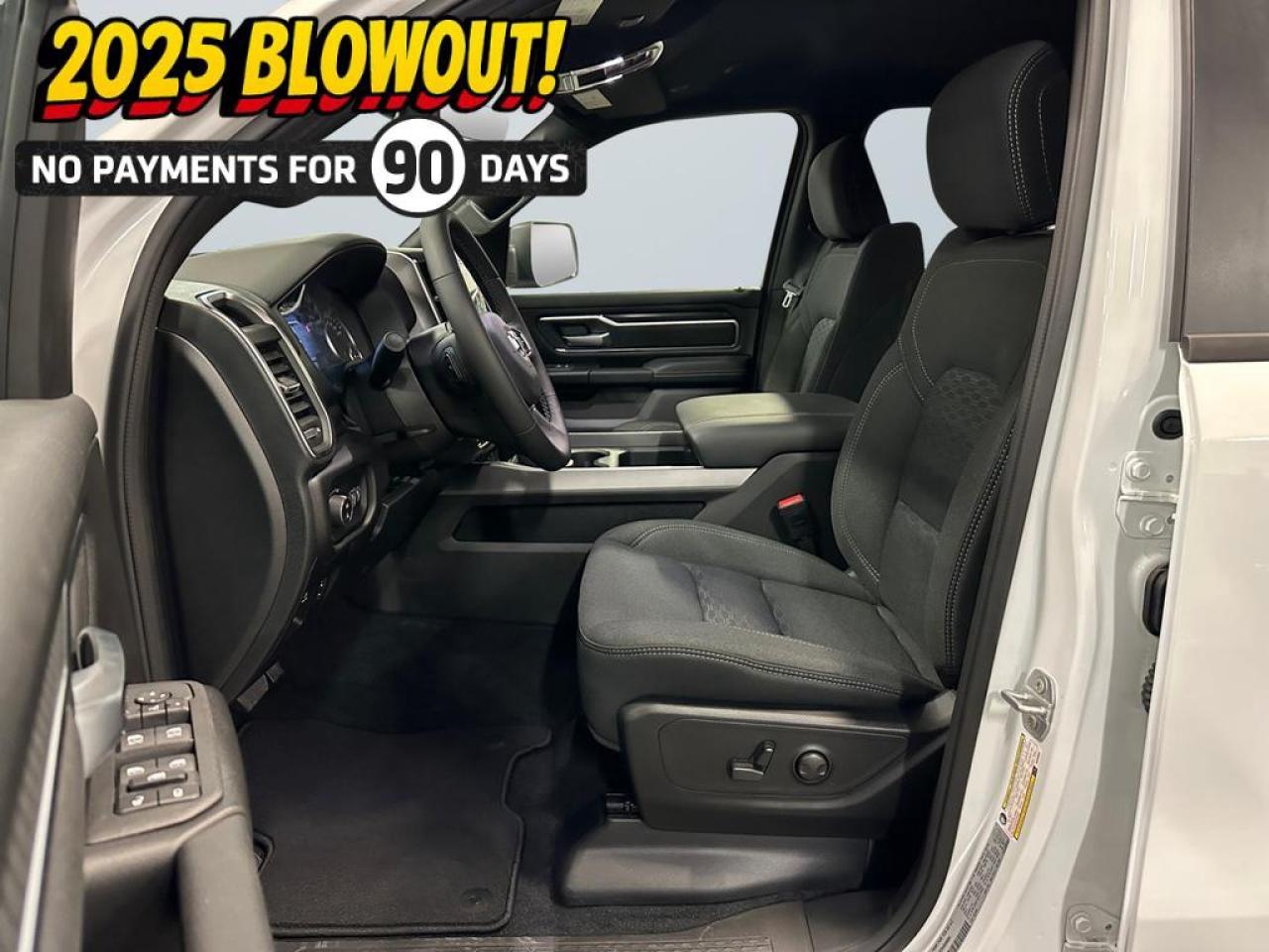 The 2025 Ram 1500 Big Horn Crew Cab 4x4 in Bright White delivers exceptional power and modern capability with its 3.0L I-6 Hurricane Twin Turbo engine featuring Stop/Start and an 8-speed automatic transmission. Deluxe cloth bucket seats, second-row in-floor storage bins, and a spacious Crew Cab layout offer comfort and flexibility for work, family, or weekend hauling.
