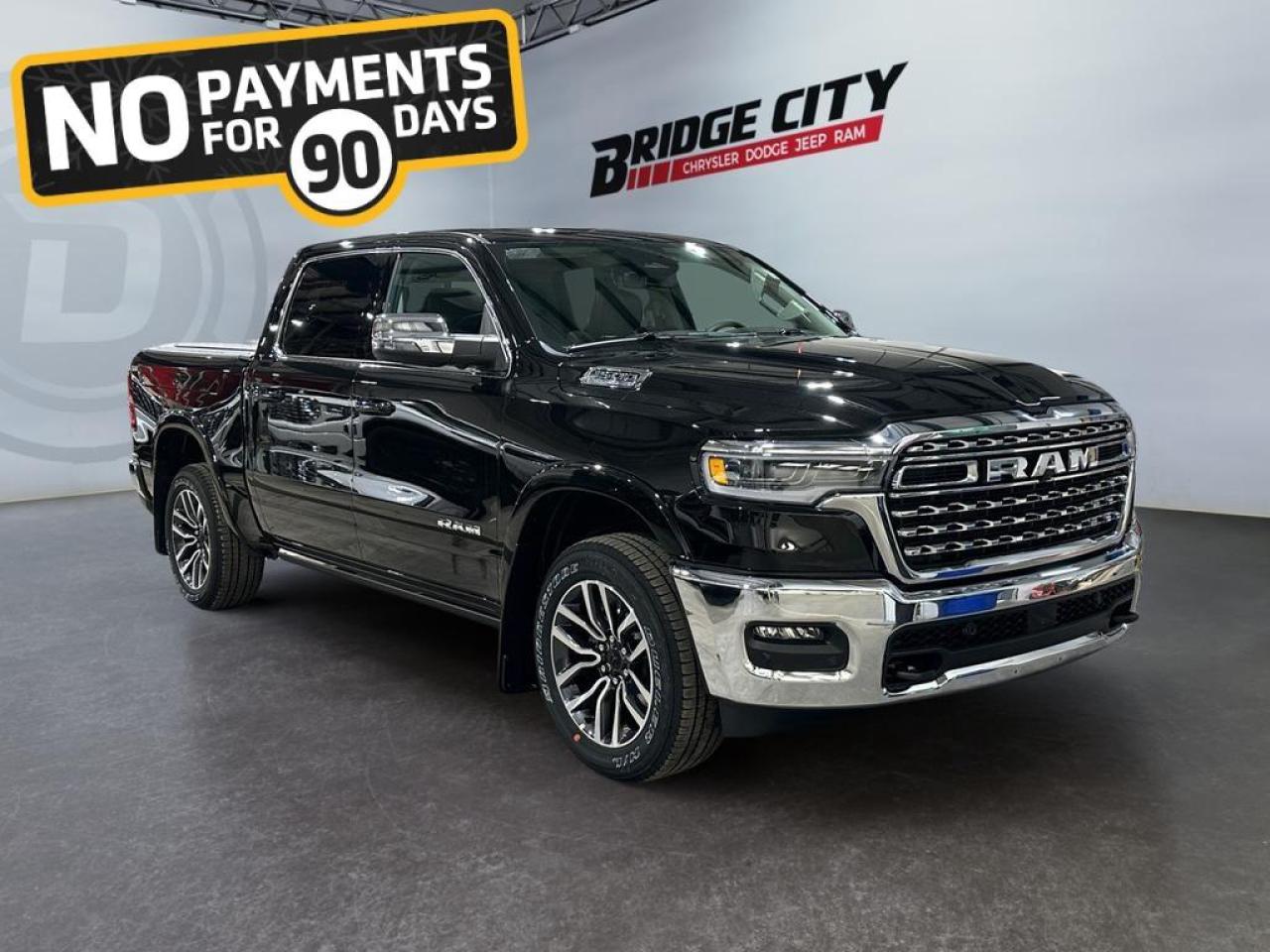 The 2026 Ram 1500 Limited Longhorn in Diamond Black Crystal blends rugged capability with premium Western-inspired luxury. This 4x4 Crew Cab features a 3.0L I6 Hurricane HO Twin-Turbo engine paired with an 8-speed automatic transmission, delivering exceptional towing, hauling, and off-road performance, enhanced by air suspension, Class IV receiver hitch, tow hooks, heavy-duty shocks, and Mopar spray-in bedliner.