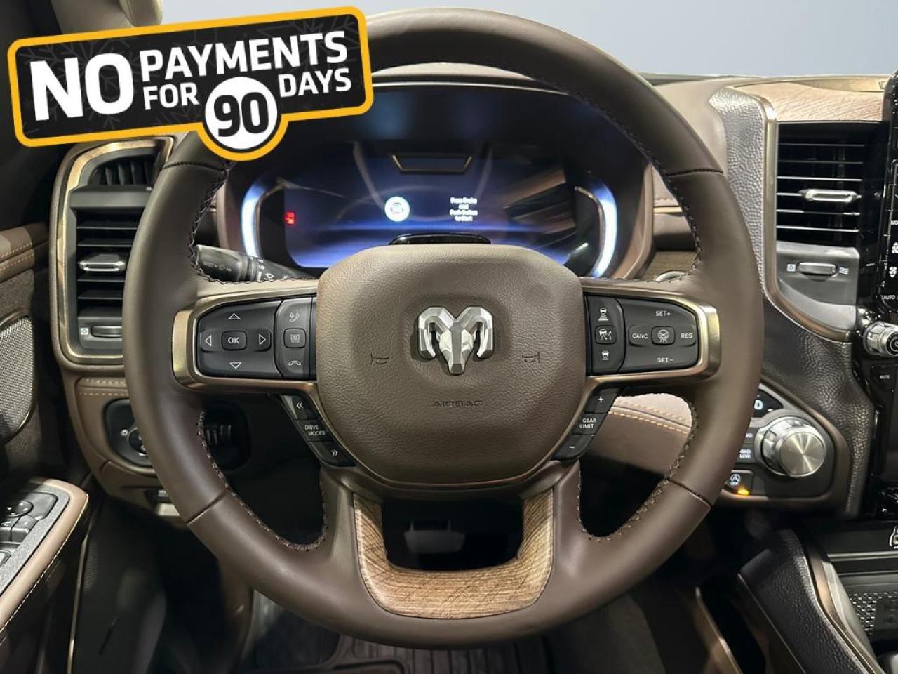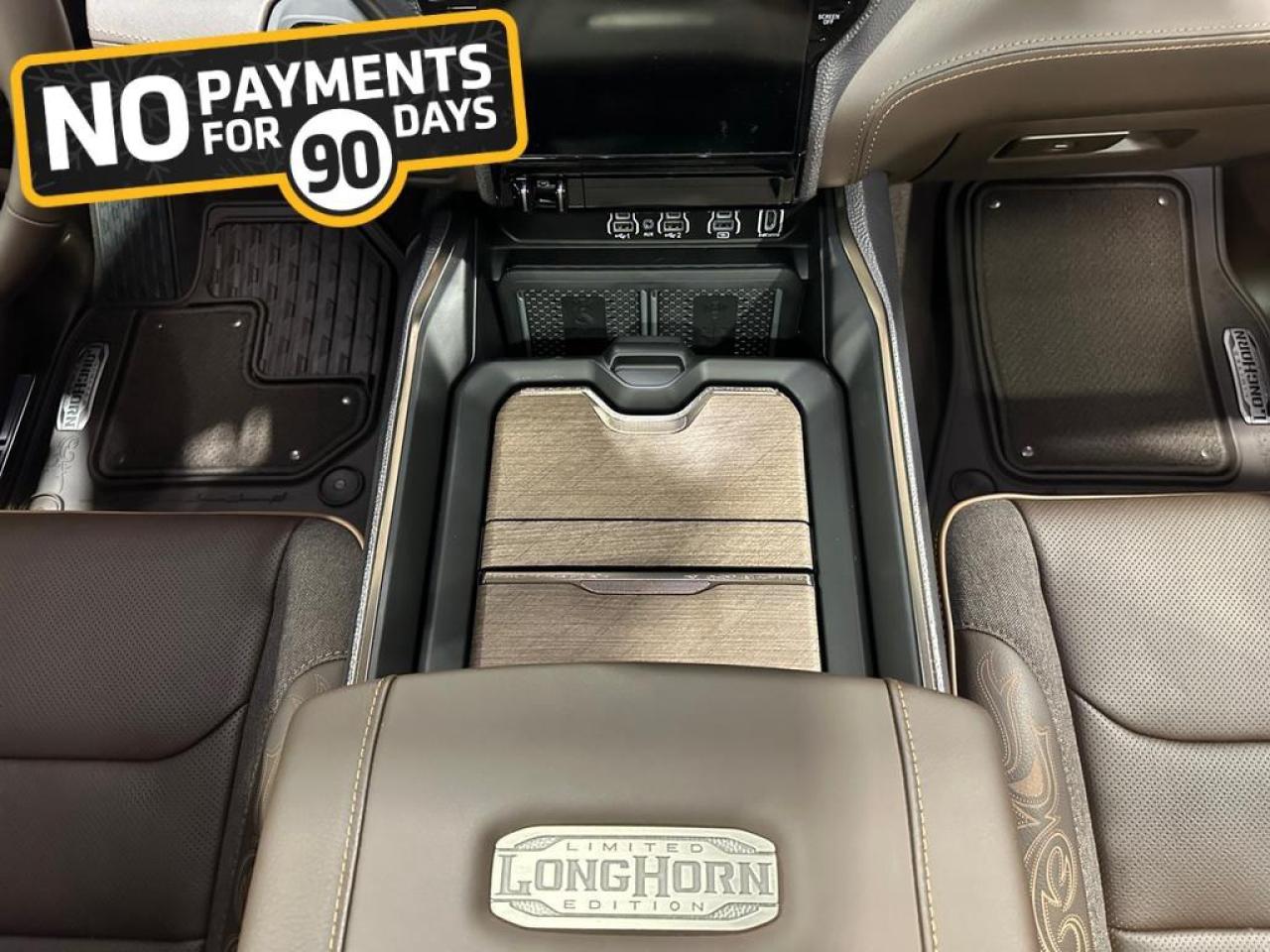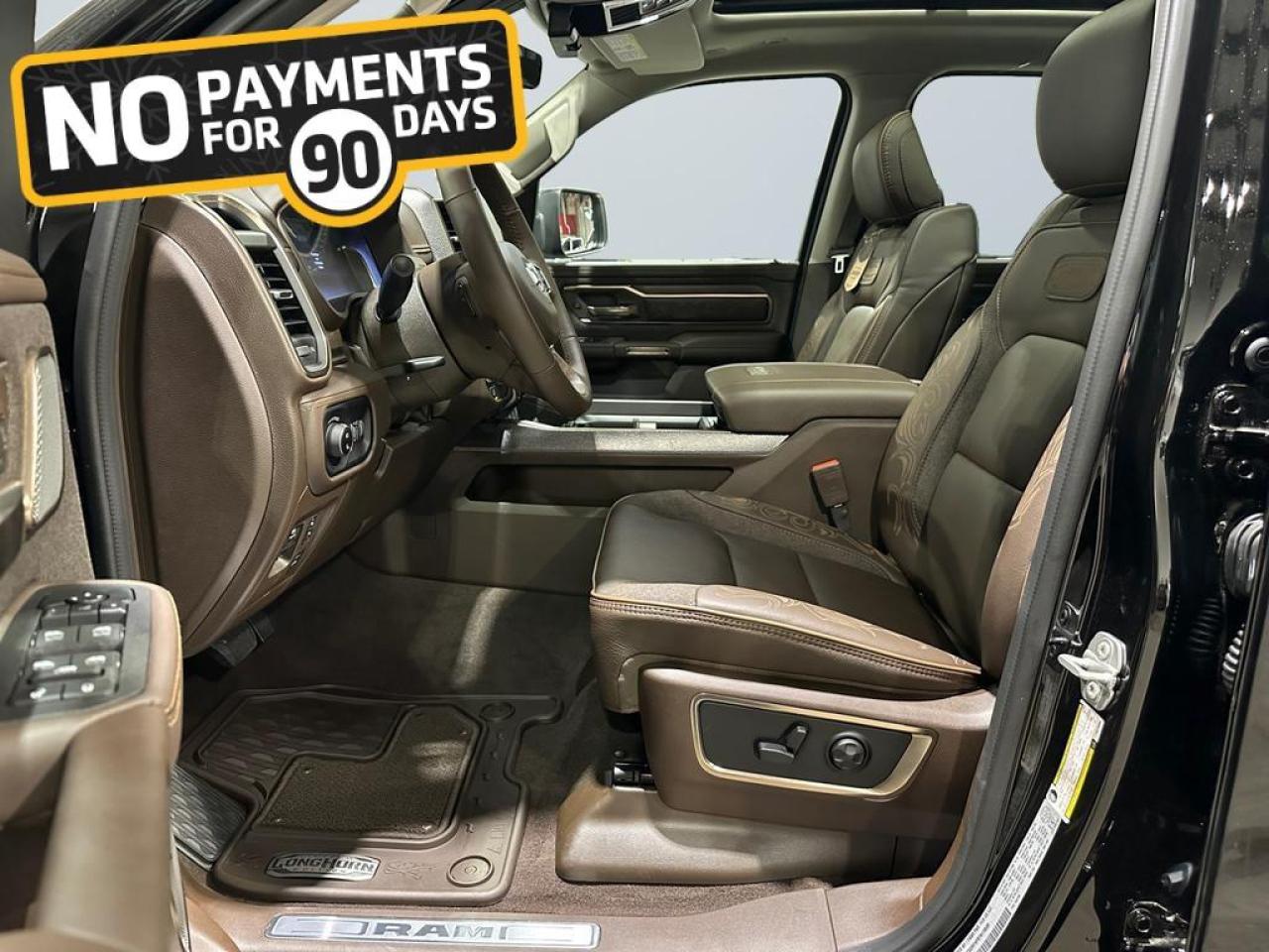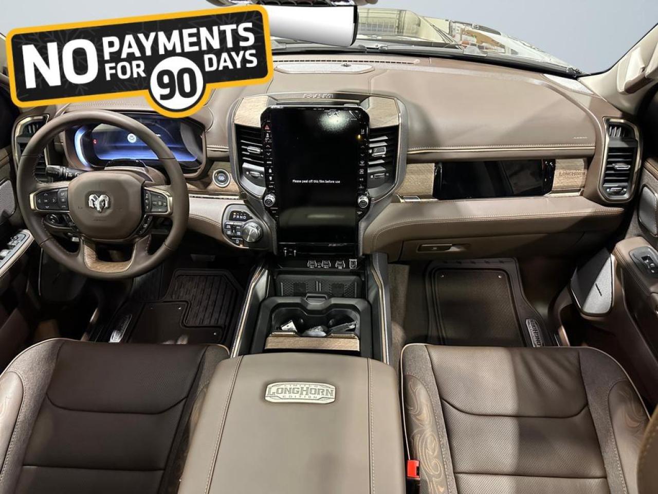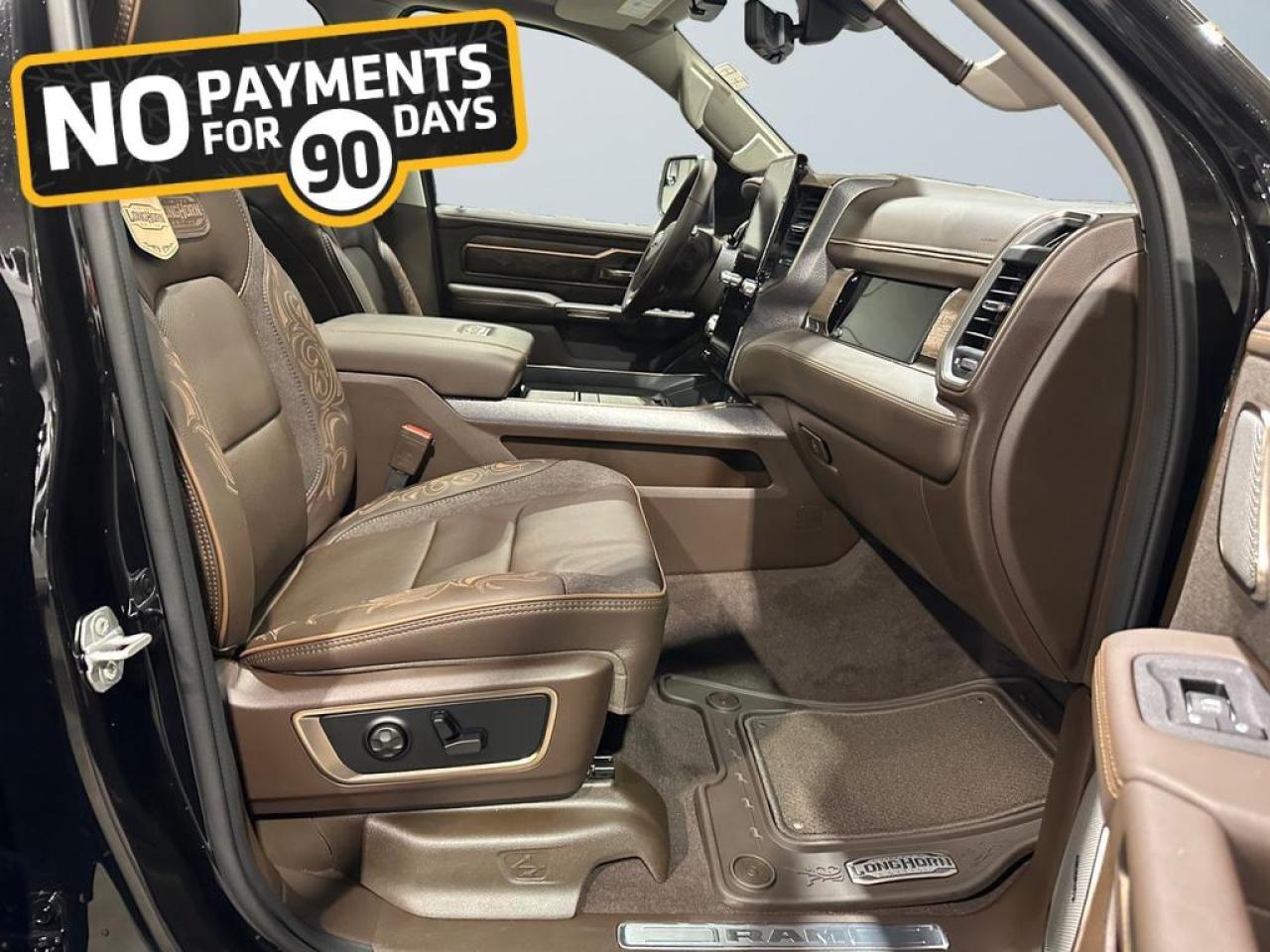 Step inside to enjoy premium leather Longhorn seats with filigree stitching, ventilated and heated front and rear seats, power-adjustable 8-way seats with memory, full-length premium floor console, heated steering wheel, and active noise control. Advanced technology includes a Uconnect 5 NAV 14.4 touchscreen, Apple CarPlay, Android Auto, GPS navigation, 19-speaker Harman Kardon audio, head-up display, dual wireless charging, panoramic dual-pane sunroof, and rear passenger interactive display.
