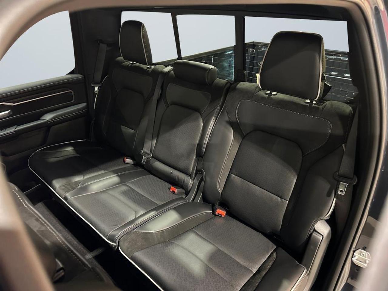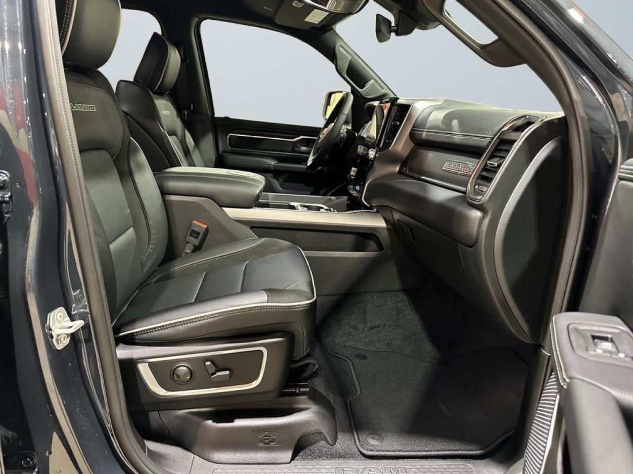 Inside, experience leather-trimmed bucket seats with heating, ventilated front seats, 12 Uconnect 5 NAV touchscreen, Apple CarPlay, Android Auto, GPS navigation, and wireless charging. The cabin also features power 8-way driver and passenger seats with memory, heated second-row seats, full-length upgraded floor console, dual-zone climate control, and premium storage compartments.