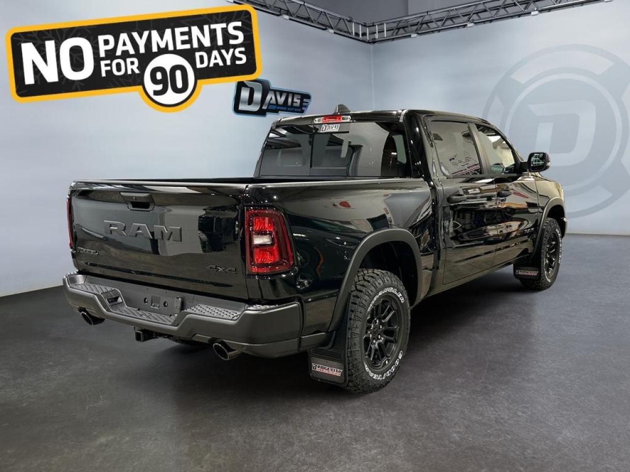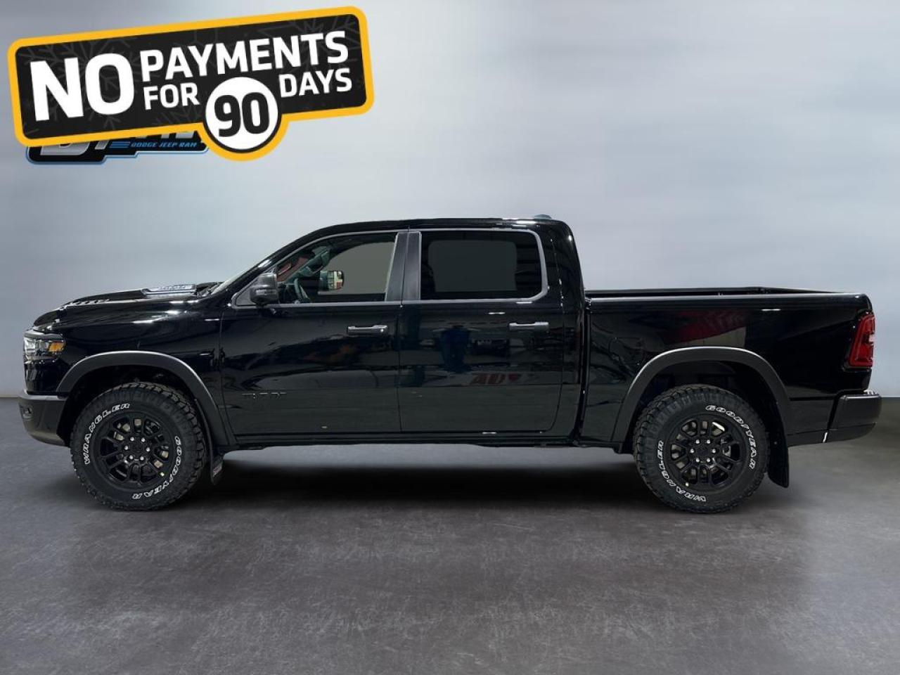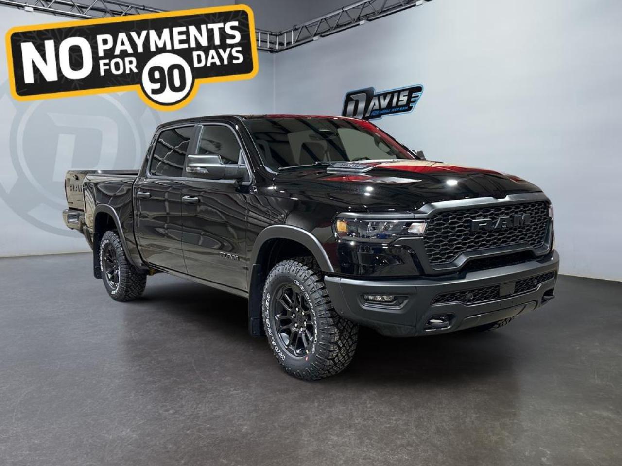 The 2026 Ram 1500 Rebel in Diamond Black Crystal Pearl delivers bold off-road capability with refined features. Powered by a 3.0L I6 Twin-Turbo Hurricane engine paired with an 8-speed automatic transmission and 4x4 drivetrain, this Rebel dominates both highways and trails.
