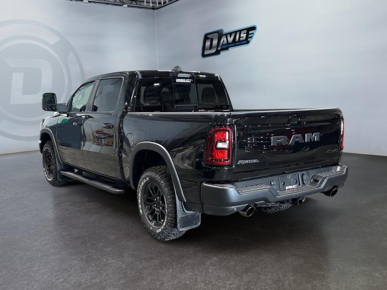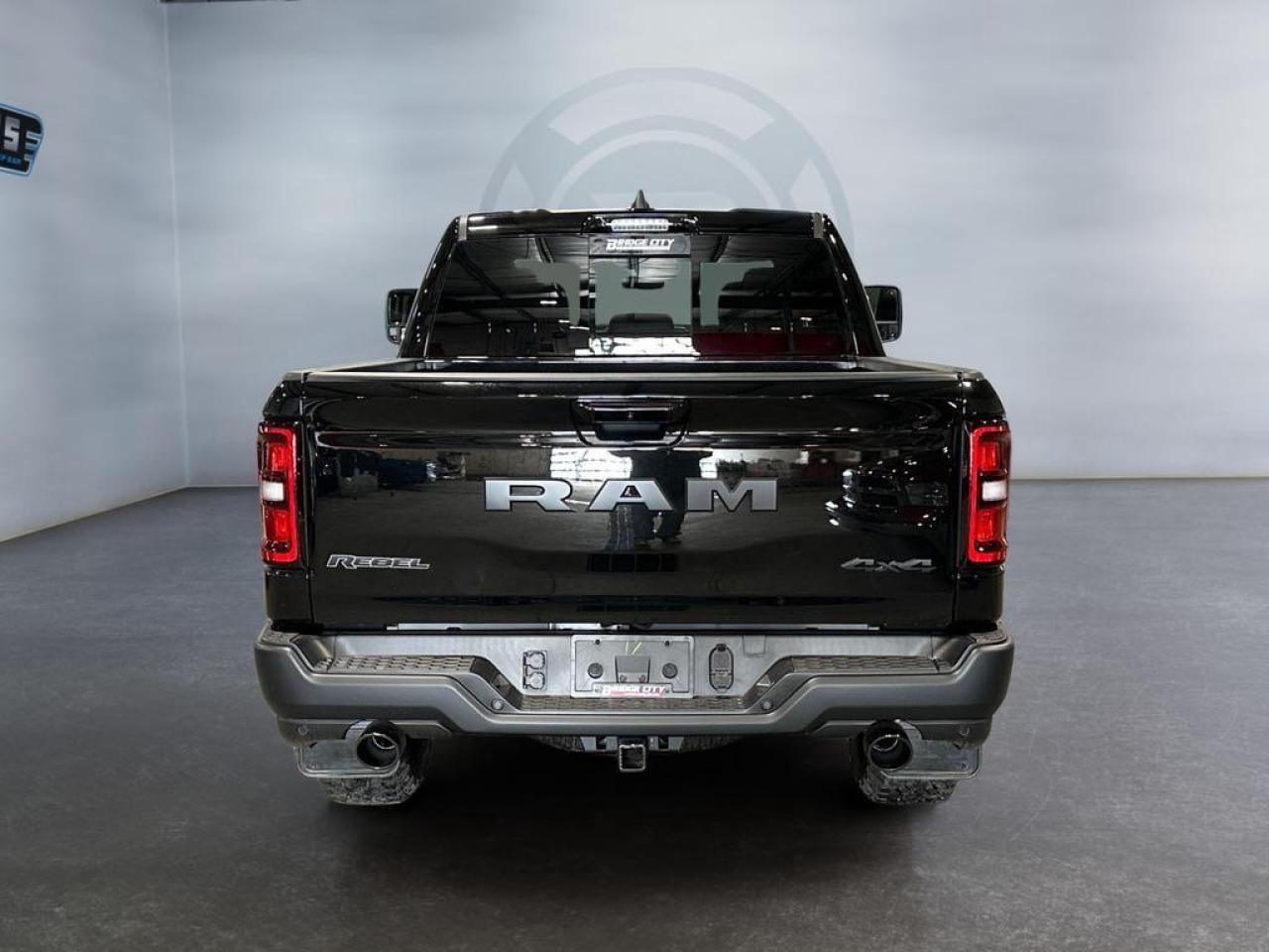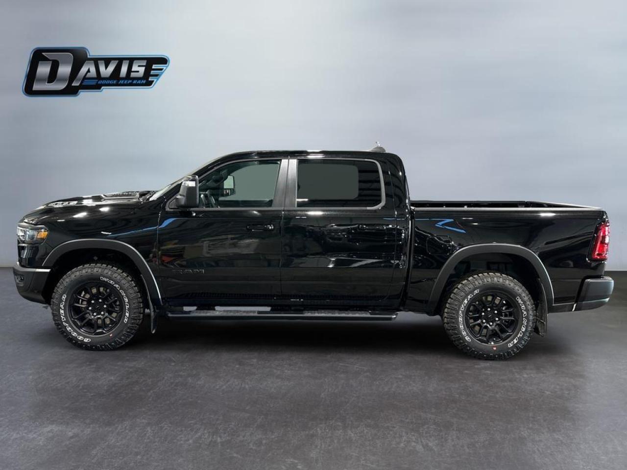 The 2026 Ram 1500 Rebel in Diamond Black Crystal delivers rugged capability with premium comfort and advanced tech. Powered by a 3.0L I6 Hurricane Twin-Turbo engine and 8-speed automatic transmission with 4x4 drivetrain, it features Rebel-tuned front and rear performance shocks, raised ride height, off-road wheel flares, skid plates, tow hooks, and Class IV receiver hitch, built for off-road adventures and heavy towing.