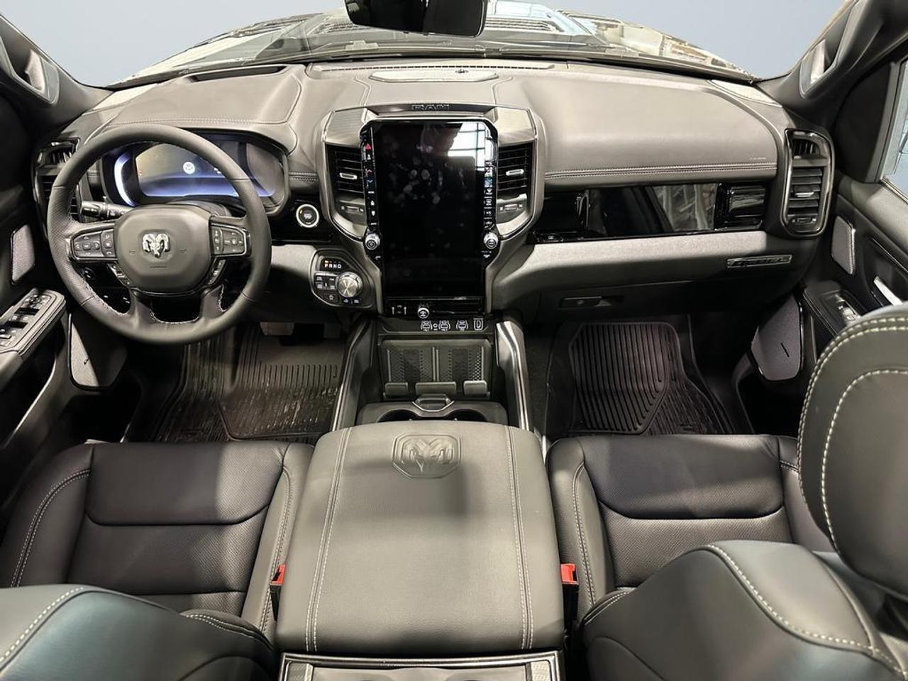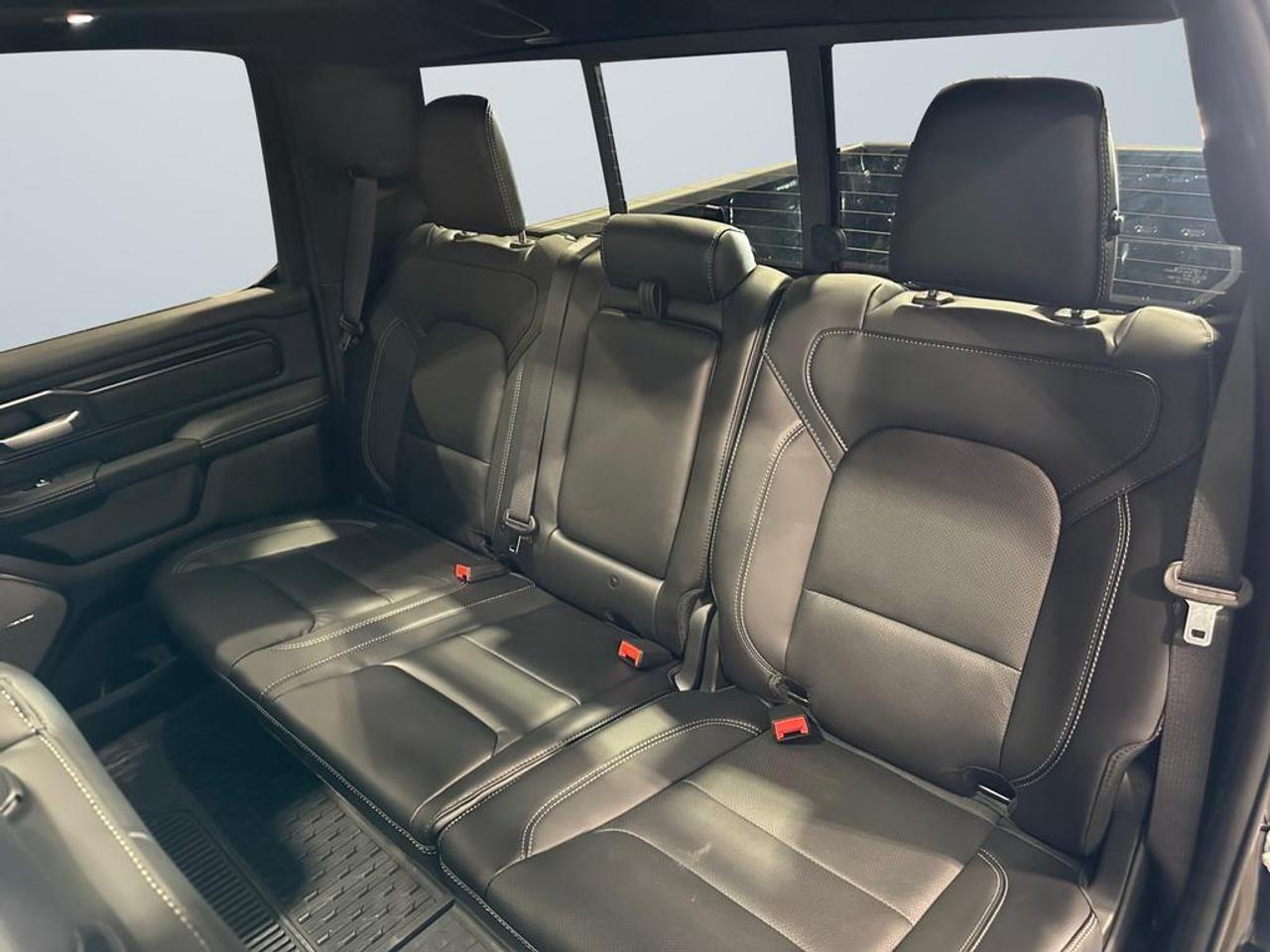 Inside, enjoy luxury leather-trimmed and ventilated front seats, heated second-row seats, dual-zone climate control, full-length upgraded floor console, 8-way power driver and passenger seats with memory, and active noise control. Technology highlights include a Uconnect 5 NAV 14.4 touchscreen, Apple CarPlay, Android Auto, GPS navigation, 19-speaker Harman Kardon premium audio, dual wireless charging, panoramic dual-pane sunroof, and rear passenger interactive display.