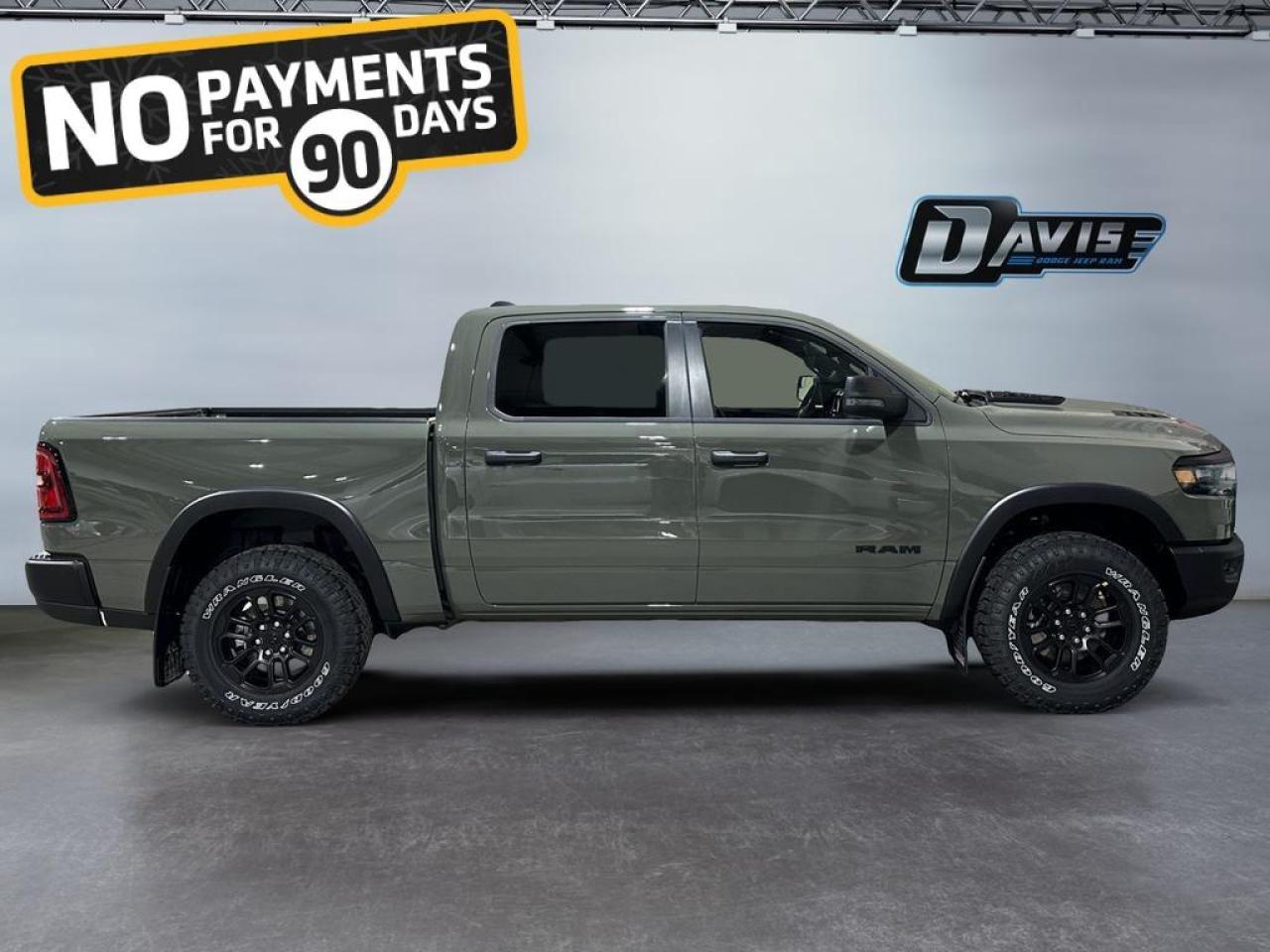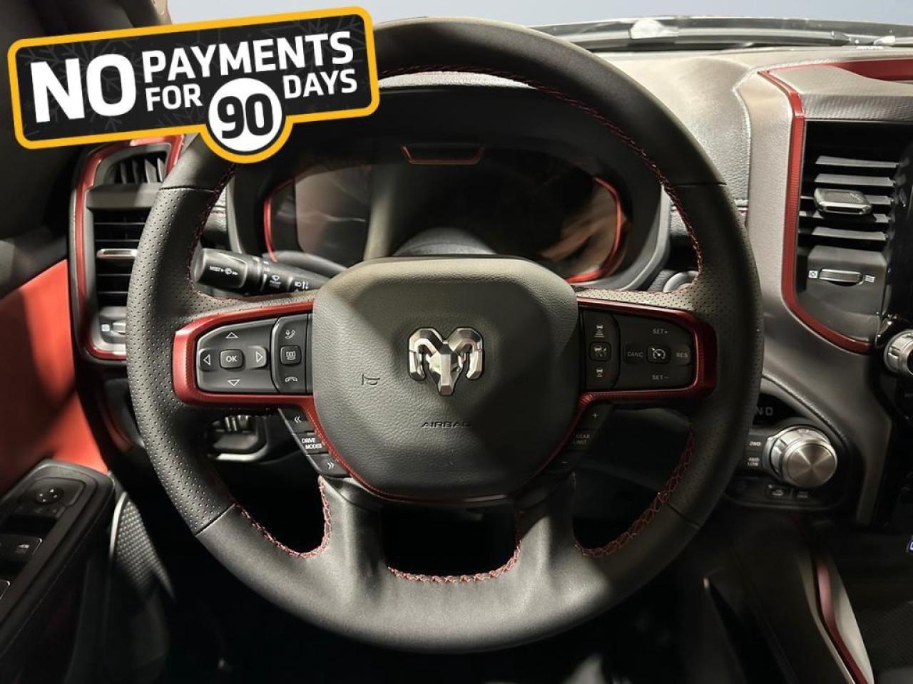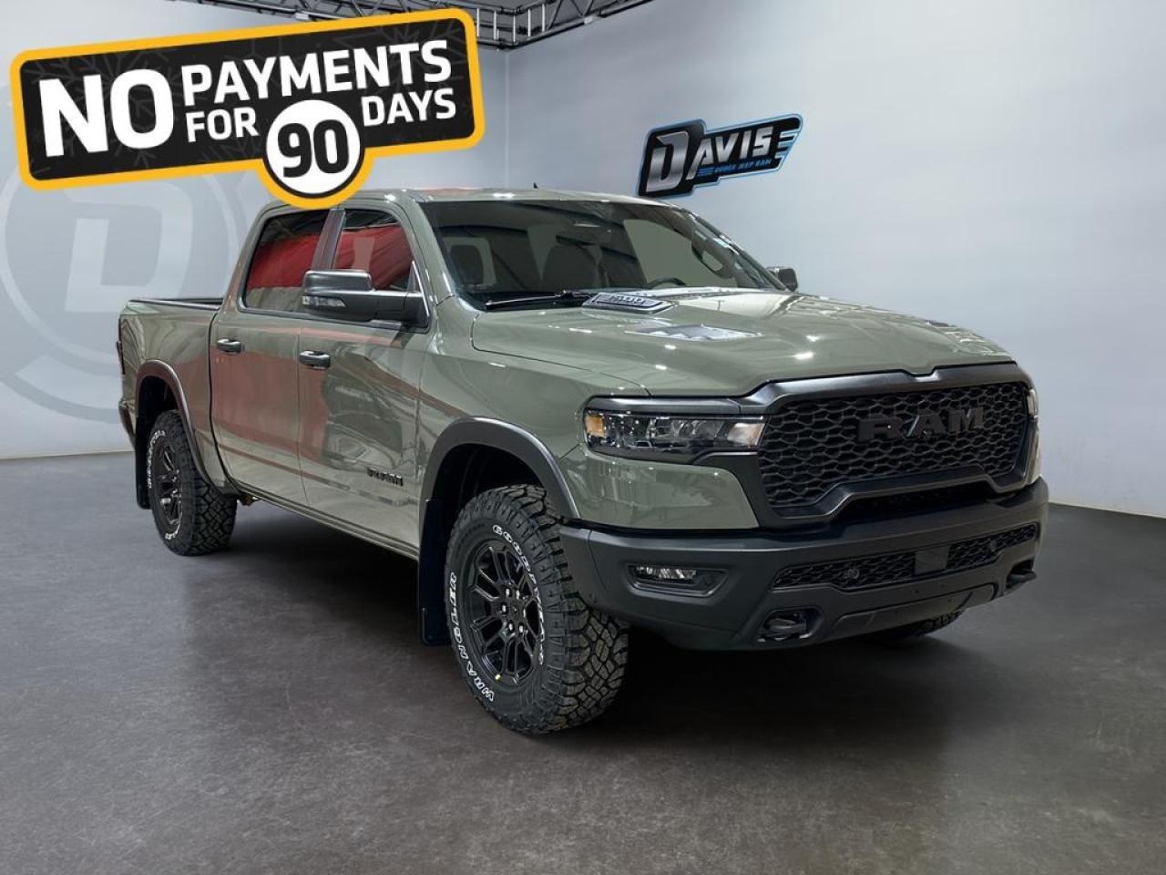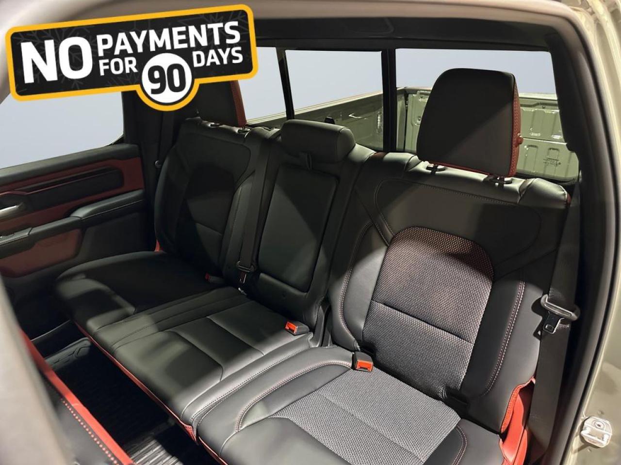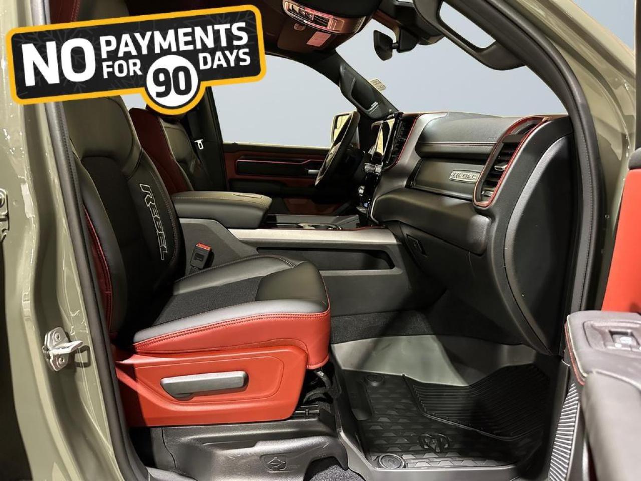 Inside, this Rebel offers heated cloth/vinyl bucket seats, dual-zone climate control, 12 Uconnect 5 NAV touchscreen, Apple CarPlay, Android Auto, and GPS navigation. Convenience features include power-adjustable driver seat, upgraded floor console, rear 60/40 folding seats, and multiple storage solutions for both work and play.