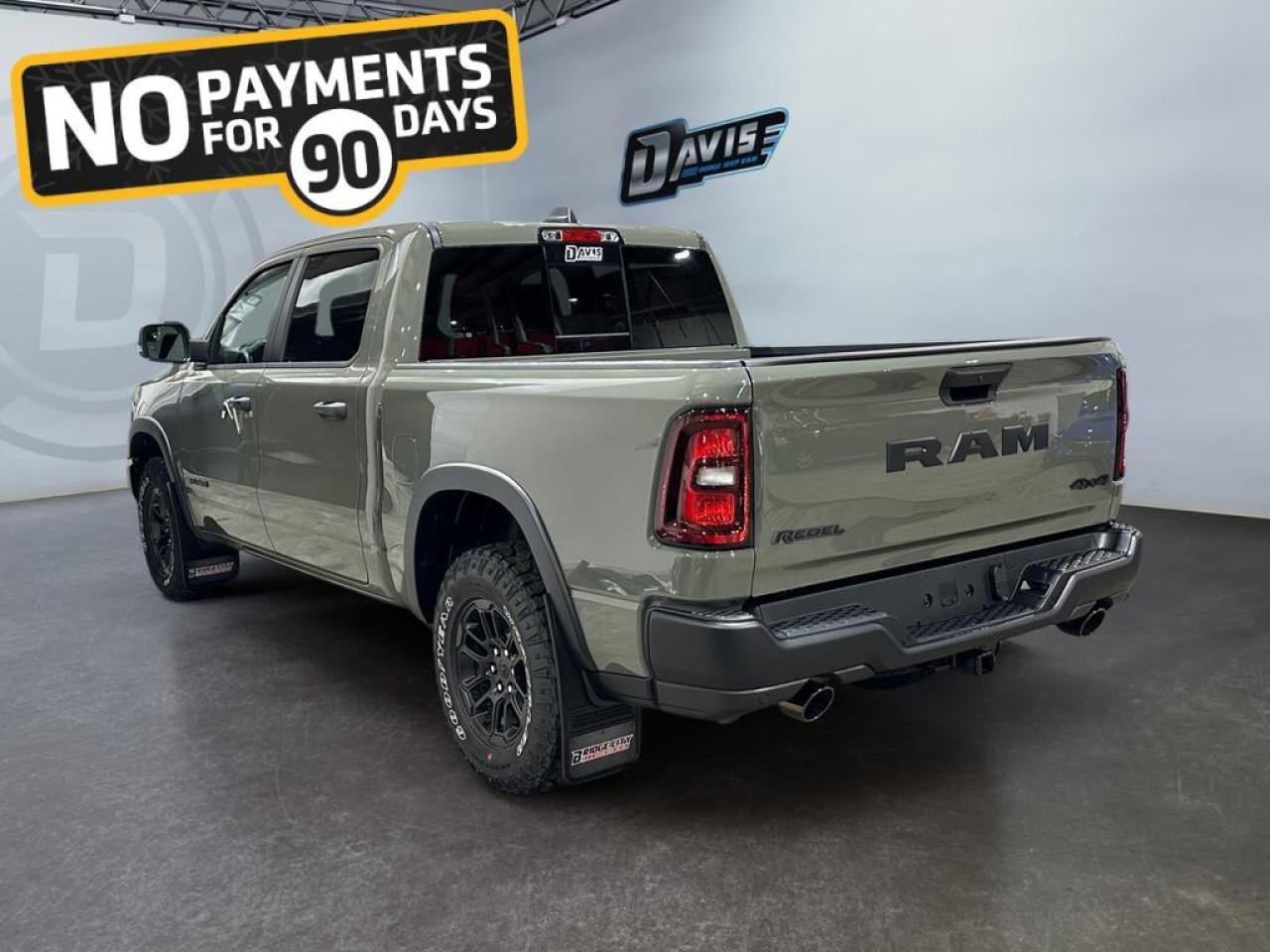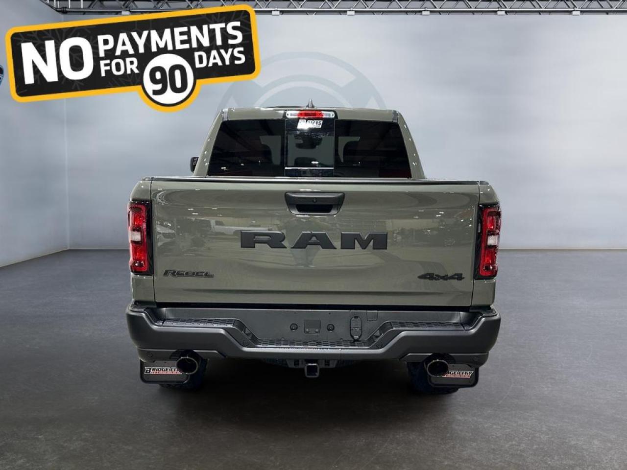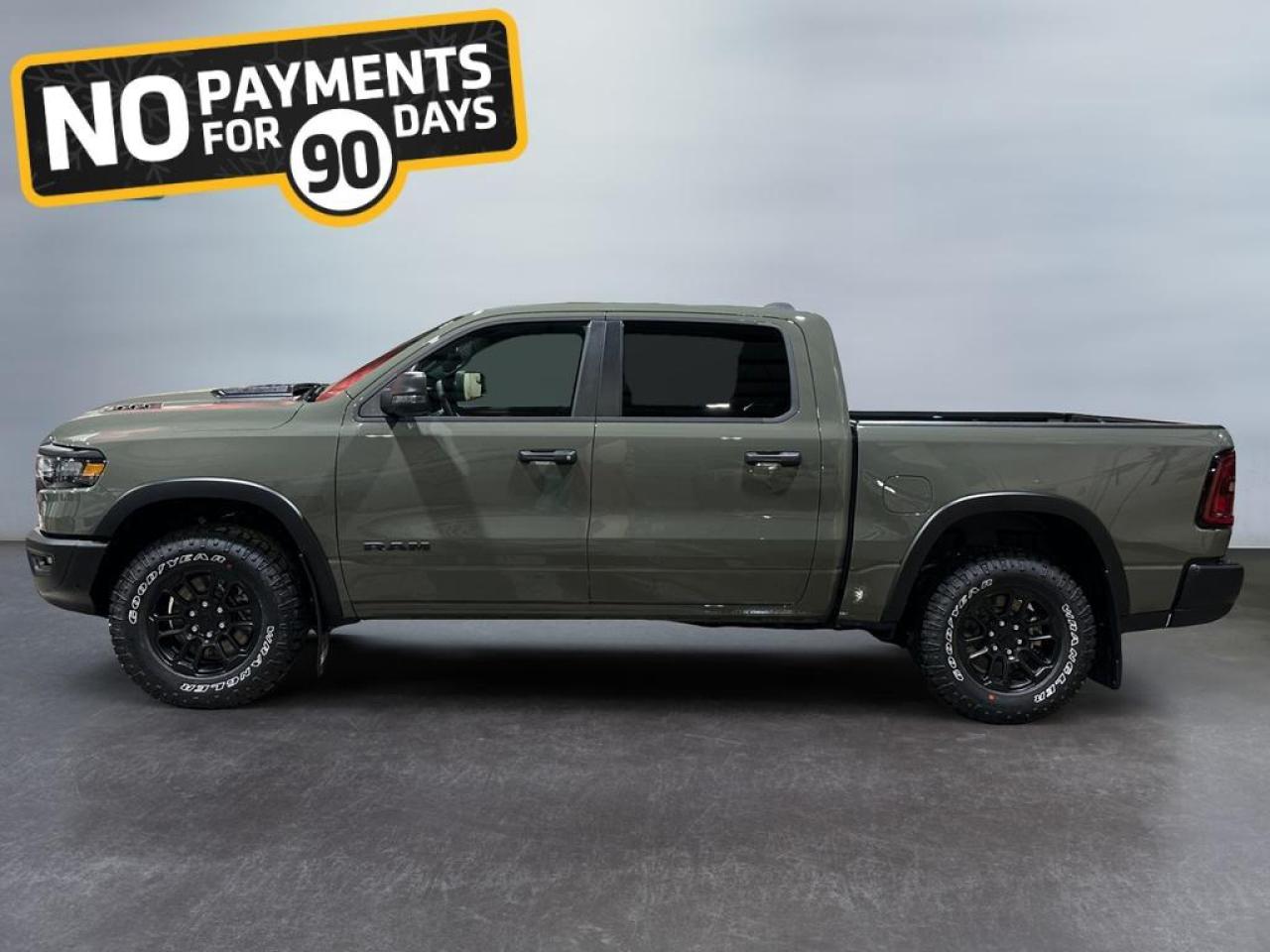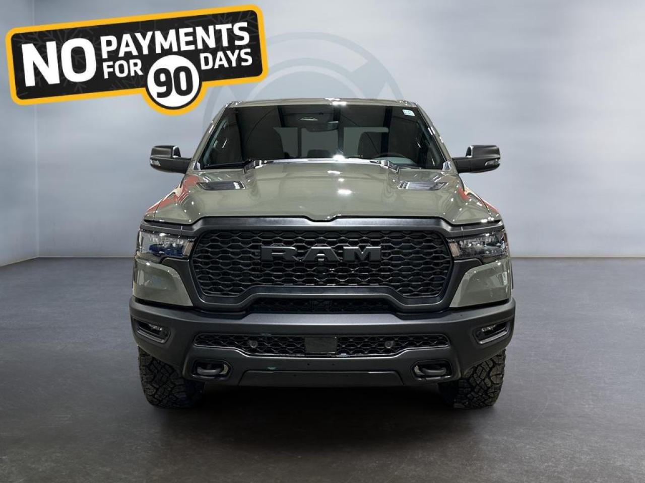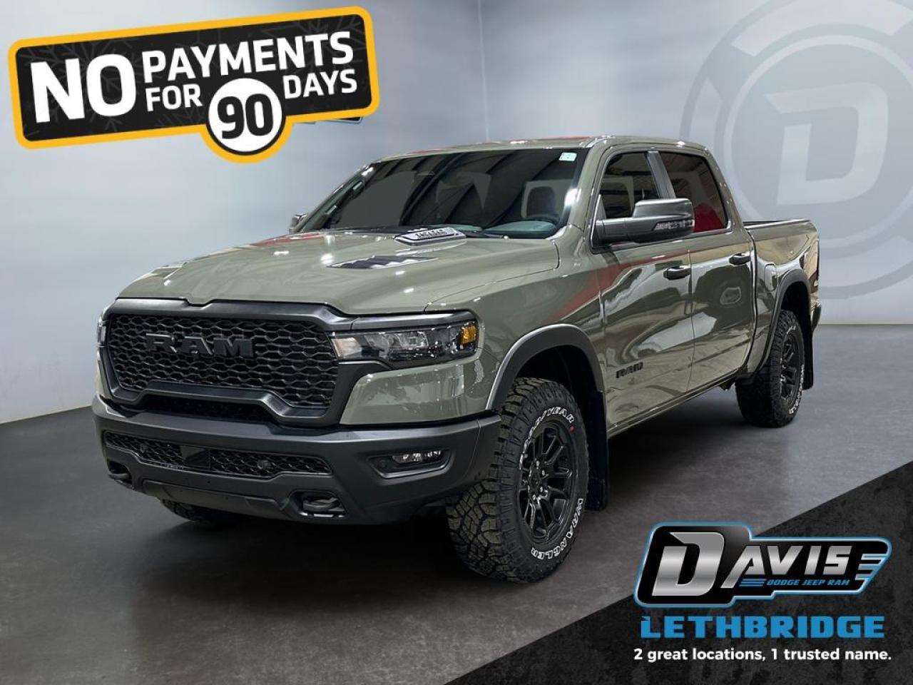 The 2026 Ram 1500 Rebel in Canyon Lake combines rugged capability with bold style. Powered by a 3.0L I6 Hurricane Twin-Turbo engine and 8-speed automatic transmission, this 4x4 crew cab features raised ride height, E-locker rear axle, off-road wheel flares, sport performance hood, and dual exhaust with black tips, delivering superior performance on any terrain.