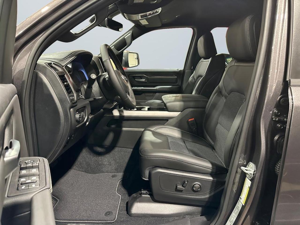 Our 1500's trim level is Sport. This Ram 1500 in Sport trim rewards you with front heated seats, a leather-wrapped heated steering wheel, a 360 camera system, a 10-speaker Alpine audio, and a 12-inch infotainment screen with inbuilt navigation, Apple CarPlay and Android Auto, and 4G LTE Wi-Fi hotspot. Additional features include class IV towing equipment, aluminum wheels, power adjustable pedals, intersection collision assist, evasion assist, lane keep assist with lane departure warning, and even more! This vehicle has been upgraded with the following features: Navigation, Apple CarPlay, Android Auto, 360 Camera, Heated Seats, Heated Steering Wheel, Aluminum Wheels.