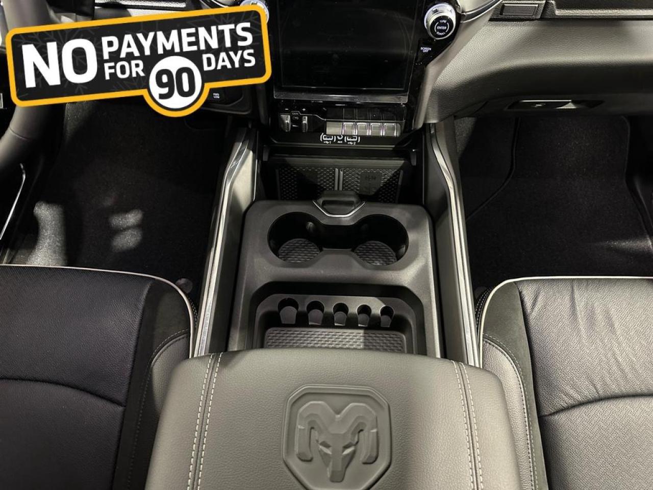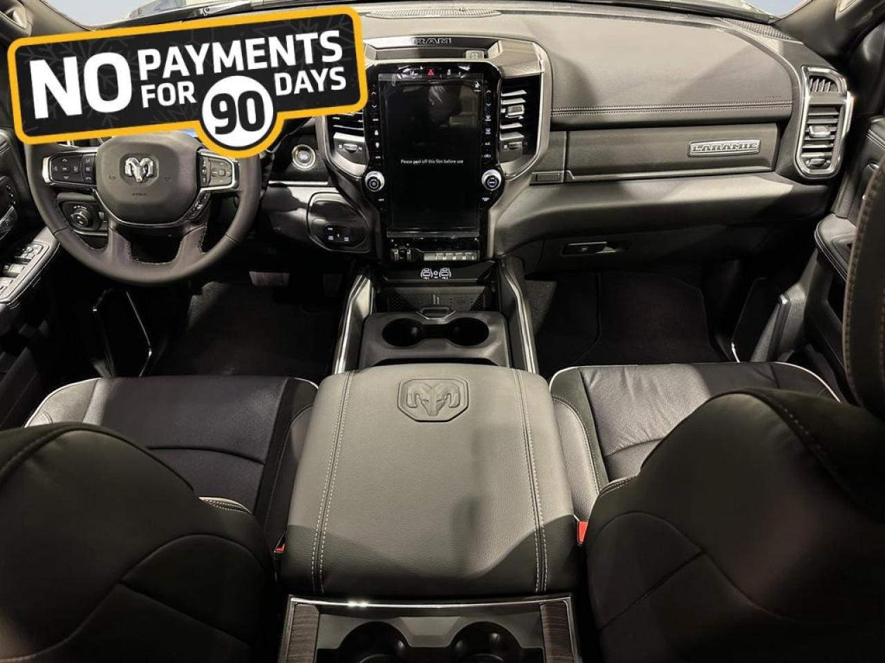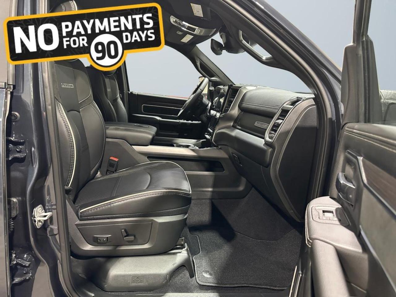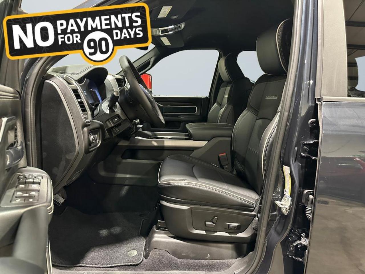 Inside, the Laramie blends durability with luxury through leather-trimmed heated and ventilated bucket seats, a heated steering wheel, dual-zone climate control, power 8-way front seats, and extensive smart storage including in-floor bins, a full-length console, and under-seat compartments. Convenience features like remote start, rain-sensing wipers, power-folding tow mirrors, deployable bed step, spray-in bedliner, and a power sliding rear window make everyday tasks easier.