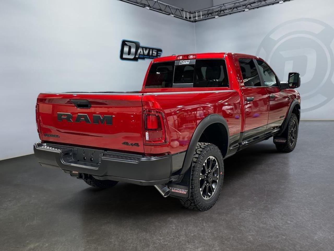 Take on any job or trail with the 2026 Ram 2500 Rebel Crew Cab in Molten Red Pearl with a two-tone lower accent. Built for power and durability, it features a 6.7L Cummins Turbo Diesel I6 engine, 8-speed TorqueFlite HD automatic transmission, and 4x4 drivetrain for maximum towing, payload, and off-road capability.