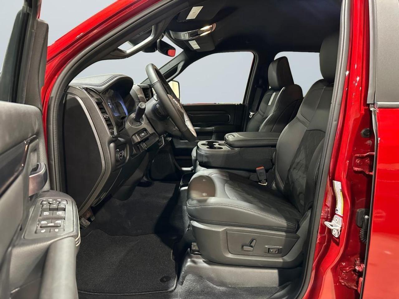 This Rebel comes equipped with the Rebel Performance Suspension, 20 Black Diamond-Cut aluminum wheels, LT285/60R20 all-terrain tires, powder-coated front and rear bumpers, LED lighting, and a MOPAR spray-in bedliner. Inside, enjoy heated 40/20/40 cloth power bench seats, rear 60/40 fold-flat seating, Uconnect 5 NAV with 12 touchscreen, Apple CarPlay, Android Auto, Alexa built-in, and a 6-speaker audio system.