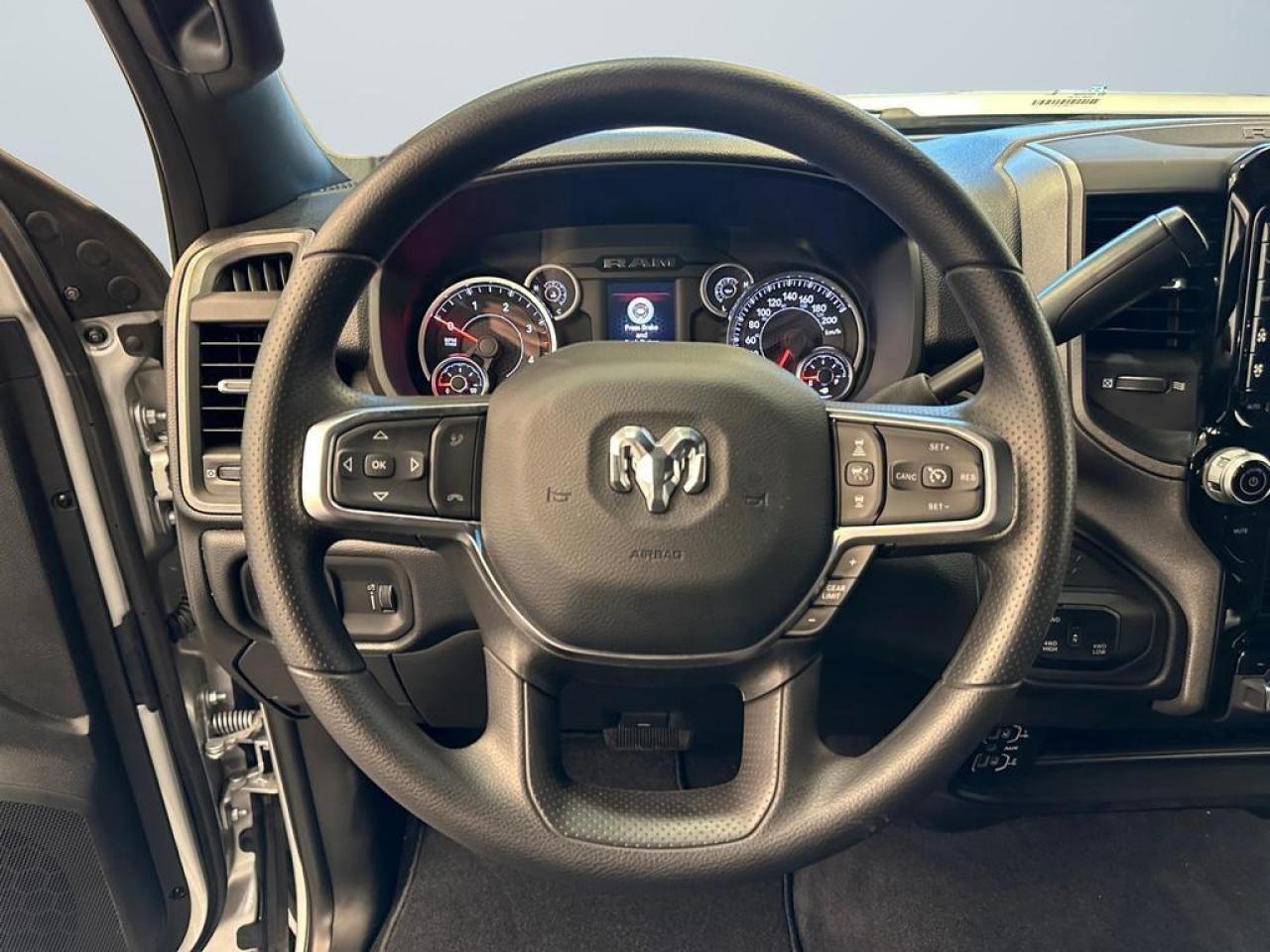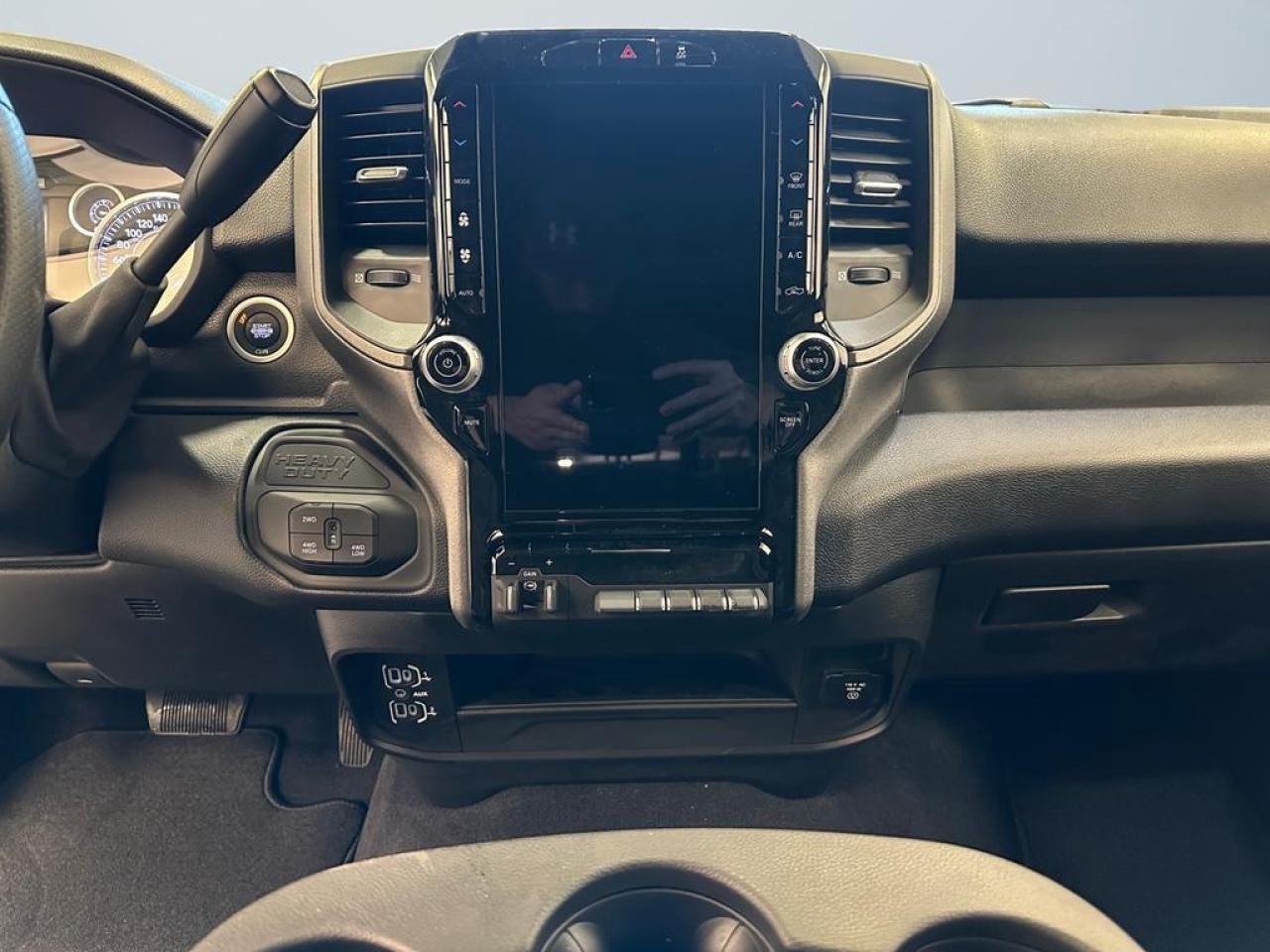 Inside, the Black Express balances rugged functionality with modern convenience. A 12-inch Uconnect 5 touchscreen display with Apple CarPlay, Android Auto, Alexa Built-In, SiriusXM, and 4G LTE Wi-Fi hotspot keeps you connected, while dual-zone automatic climate control, power-adjustable driver seat, and heavy-duty interior materials make workdays and road trips more comfortable. Advanced safety technologies like adaptive cruise control with stop/go, park assist, pedestrian/cyclist emergency braking, and full-speed forward collision warning provide peace of mind on every drive.
