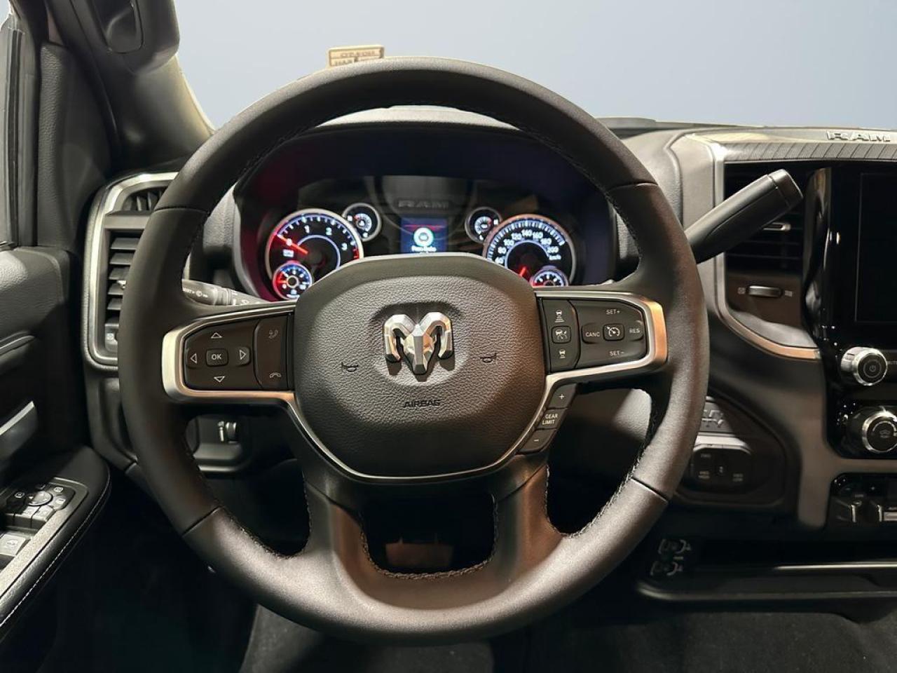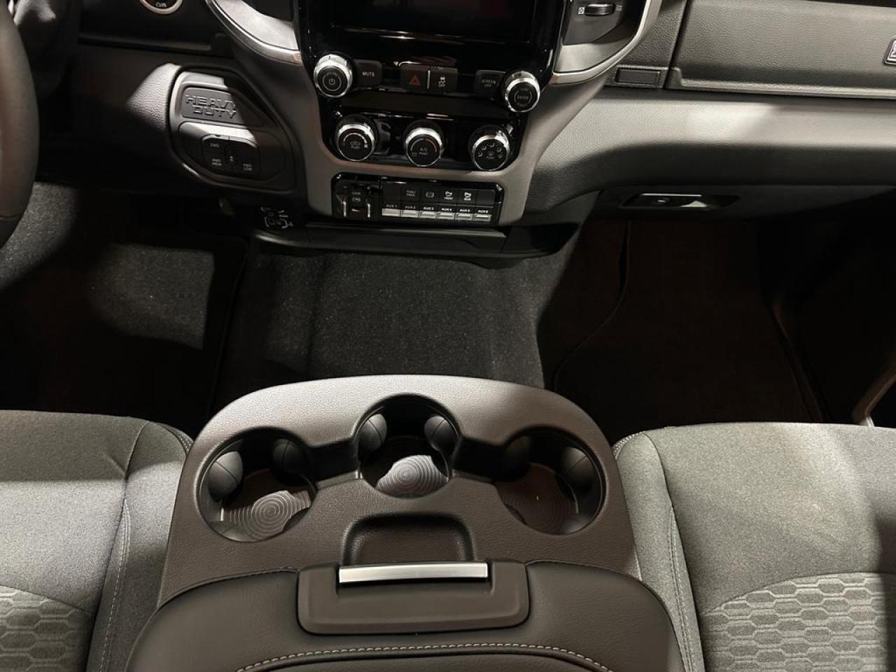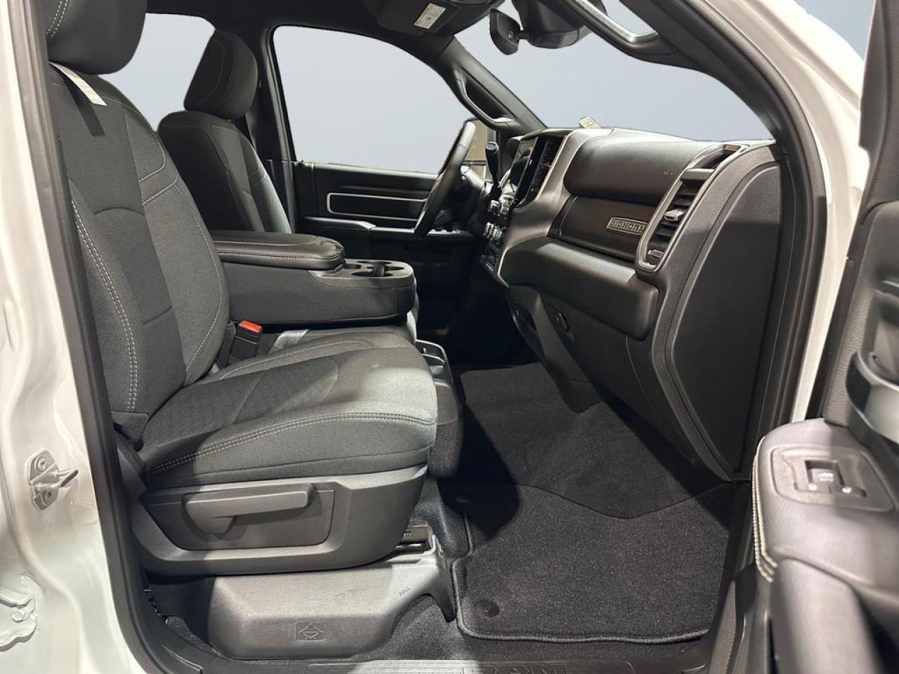 Inside, the Big Horn Dually provides comfort and convenience with a 40/20/40 premium cloth bench seat, fold-flat rear seats with in-floor storage, dual glove boxes, and a Uconnect 5 infotainment system with an 8.4-inch touchscreen. Connectivity and entertainment are seamless with Apple CarPlay, Android Auto, Bluetooth, SiriusXM, and a 4G LTE Wi-Fi hotspot. Dual-zone climate control, power-adjustable driver seat, and remote start make every drive effortless.