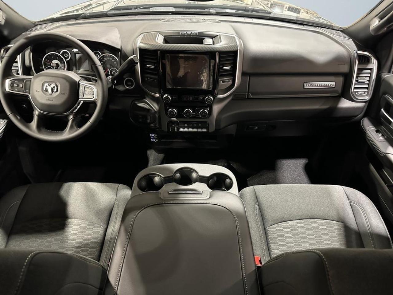 Inside, the cabin blends comfort and functionality with a 40/20/40 premium cloth bench seat, fold-flat rear seats with in-floor storage, and dual glove boxes. The Uconnect 5 system with an 8.4-inch touchscreen supports Apple CarPlay, Android Auto, Bluetooth, and a 4G LTE Wi-Fi hotspot. Dual-zone climate control, power-adjustable driver seat, and push-button start add convenience for long hauls or daily drives.