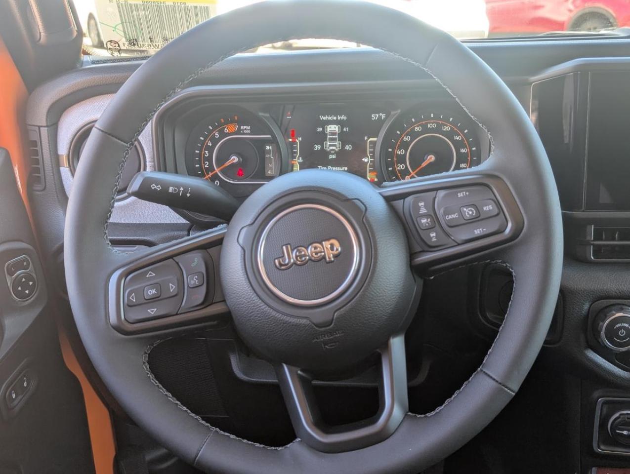 Inside, the cabin offers a blend of rugged simplicity and modern convenience. The Uconnect 5 with 12.3 inch display is your command center, offering seamless integration with Google Android Auto and Apple CarPlay capable. Stay connected on the go with a 4G LTE Wi Fi hot spot. Comfort features include dual-zone A/C with automatic temperature control, front heated seats, and a heated steering wheel, ensuring comfort in varying climates. The 7 inch in-cluster colour display provides essential vehicle information at a glance.