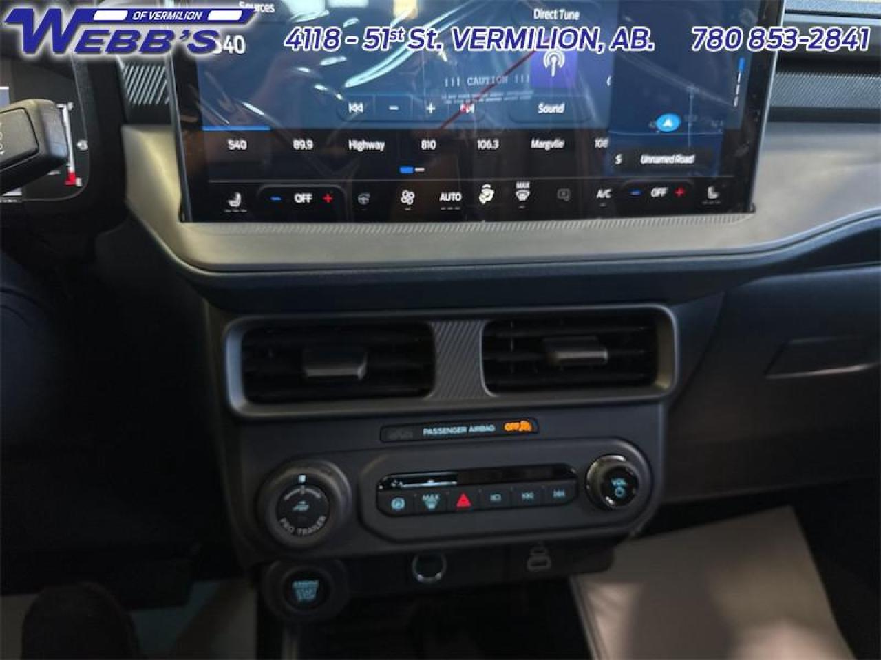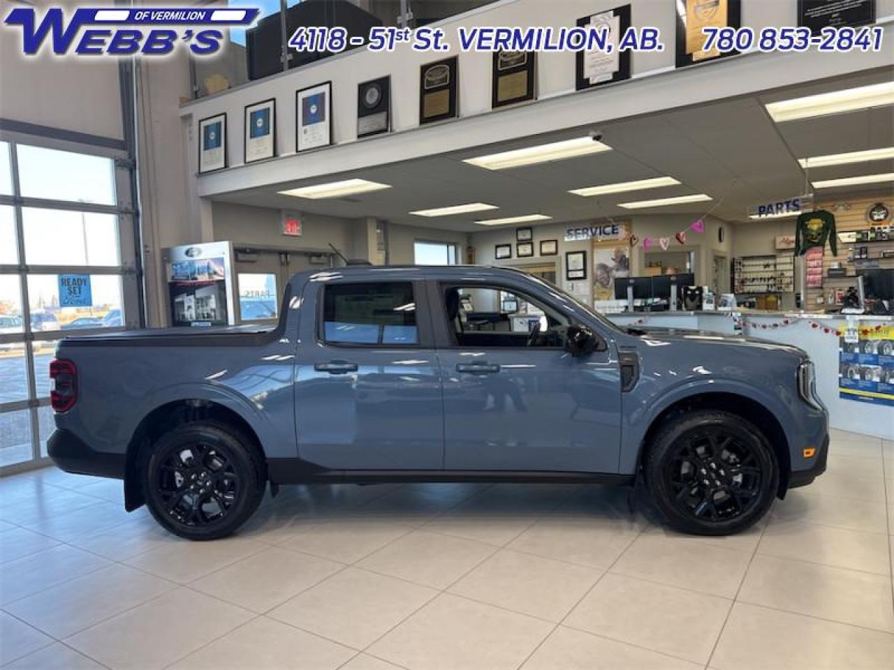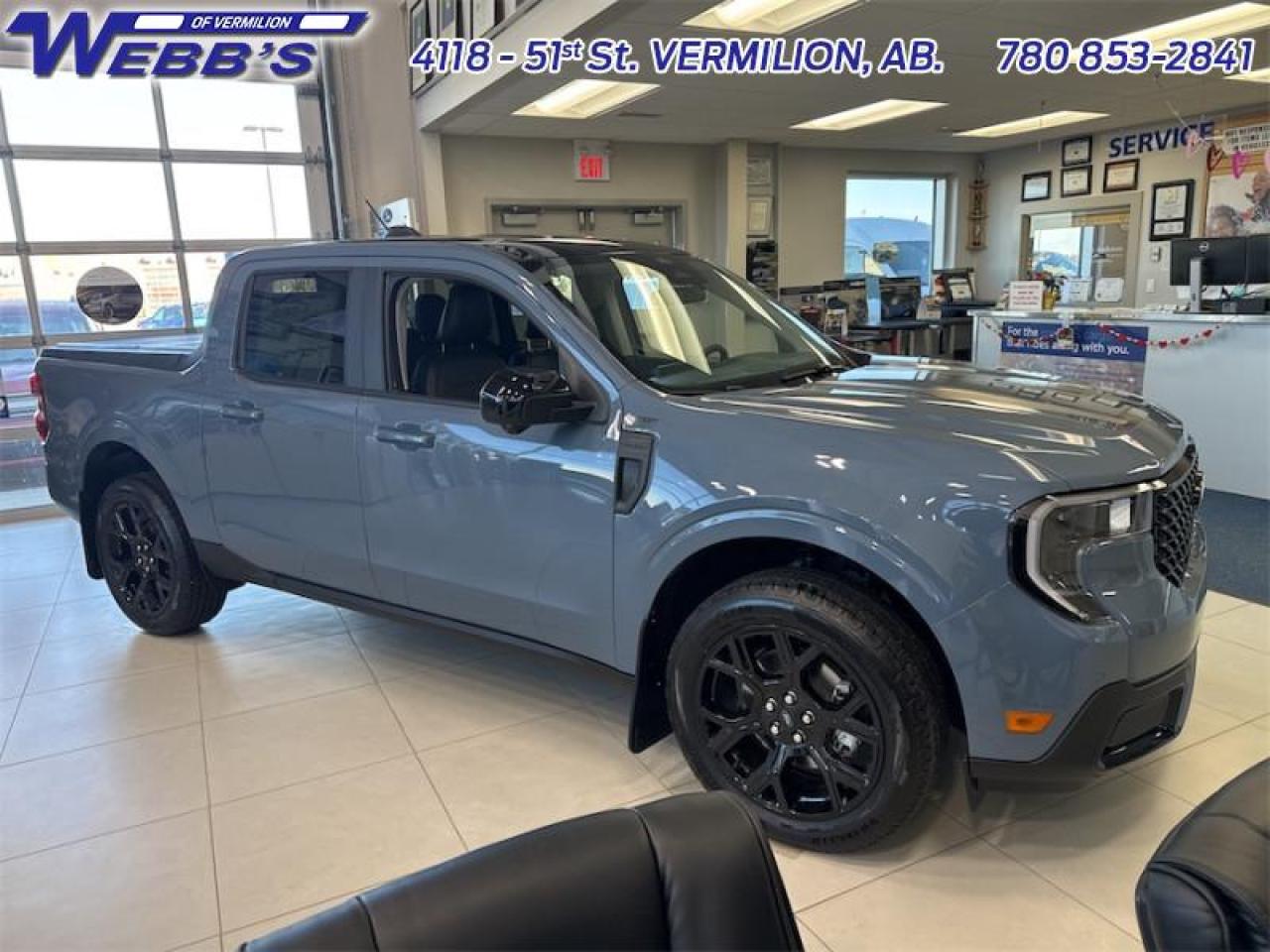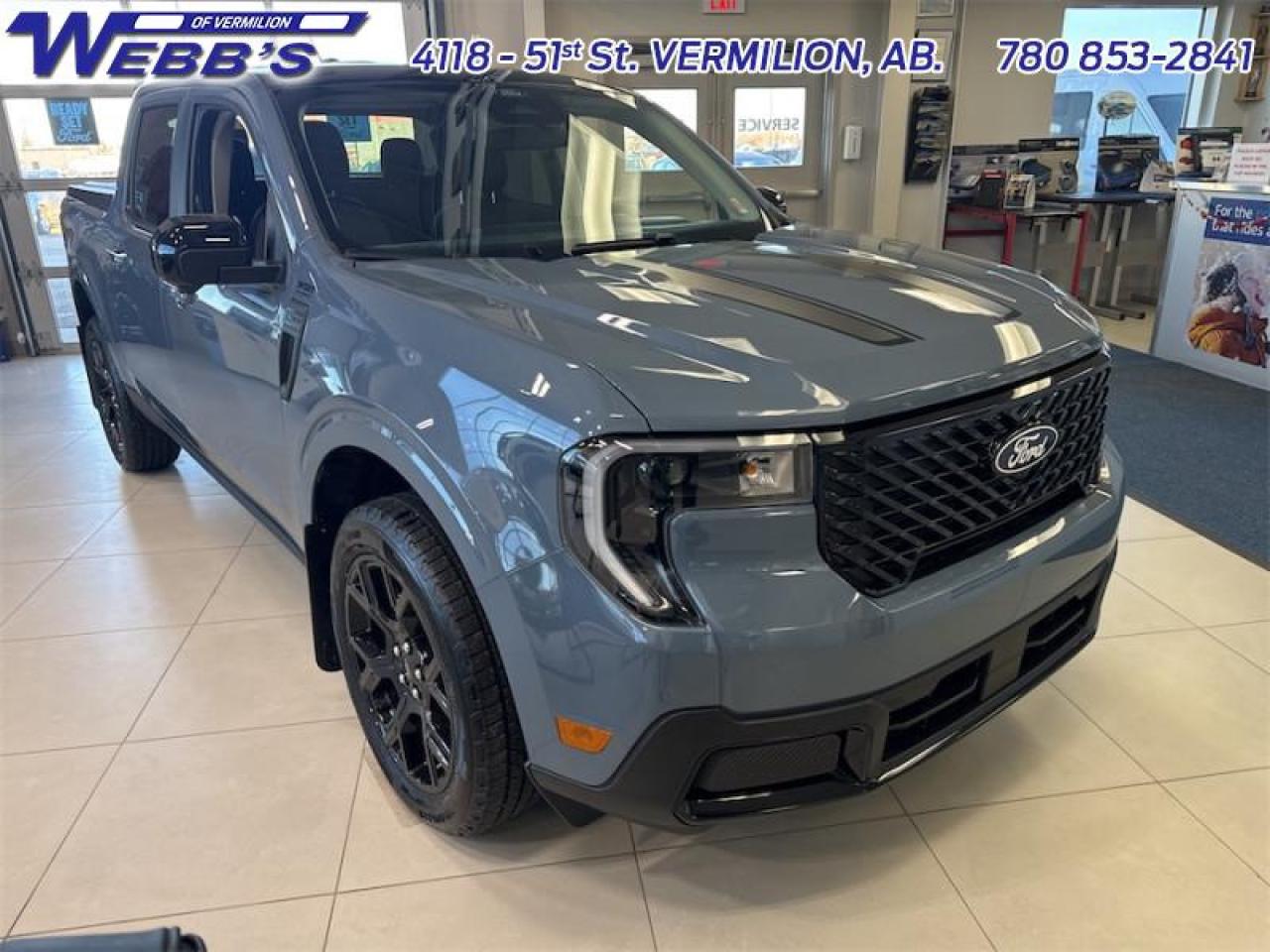 Our Maverick's trim level is Lariat. This advanced hybrid pickup truck blends capability, efficiency, and premium technology, offering all-wheel drive, Class I towing with trailer sway control, spray-in bed liner, integrated storage, and a 1,500 lb maximum payload for confident hauling and utility. Inside, ActiveX heated front bucket seats with power lumbar, a heated leatherette steering wheel, voice-activated dual-zone automatic climate control, and a 13.2 SYNC 4 display with B&O sound, wireless Apple CarPlay/Android Auto, SiriusXM Traffic, connected navigation, 5G Wi-Fi hotspot, and keyfob remote start create a connected and comfortable cabin. Safety is exceptional with Ford Co-Pilot360 technologies including blind-spot assist, lane centering and lane-keeping aid, adaptive cruise with stop-and-go, aerial view and multiple cameras, reverse brake assist, pre-collision assist with automatic emergency braking and intersection support, front cross-traffic mitigation, front/rear parking sensors, Safety Canopy airbags, and electronic stability control with roll stability management. This vehicle has been upgraded with the following features: 502A Equipment Group, Heated Seats, Tow Package, Black Appearance Package.