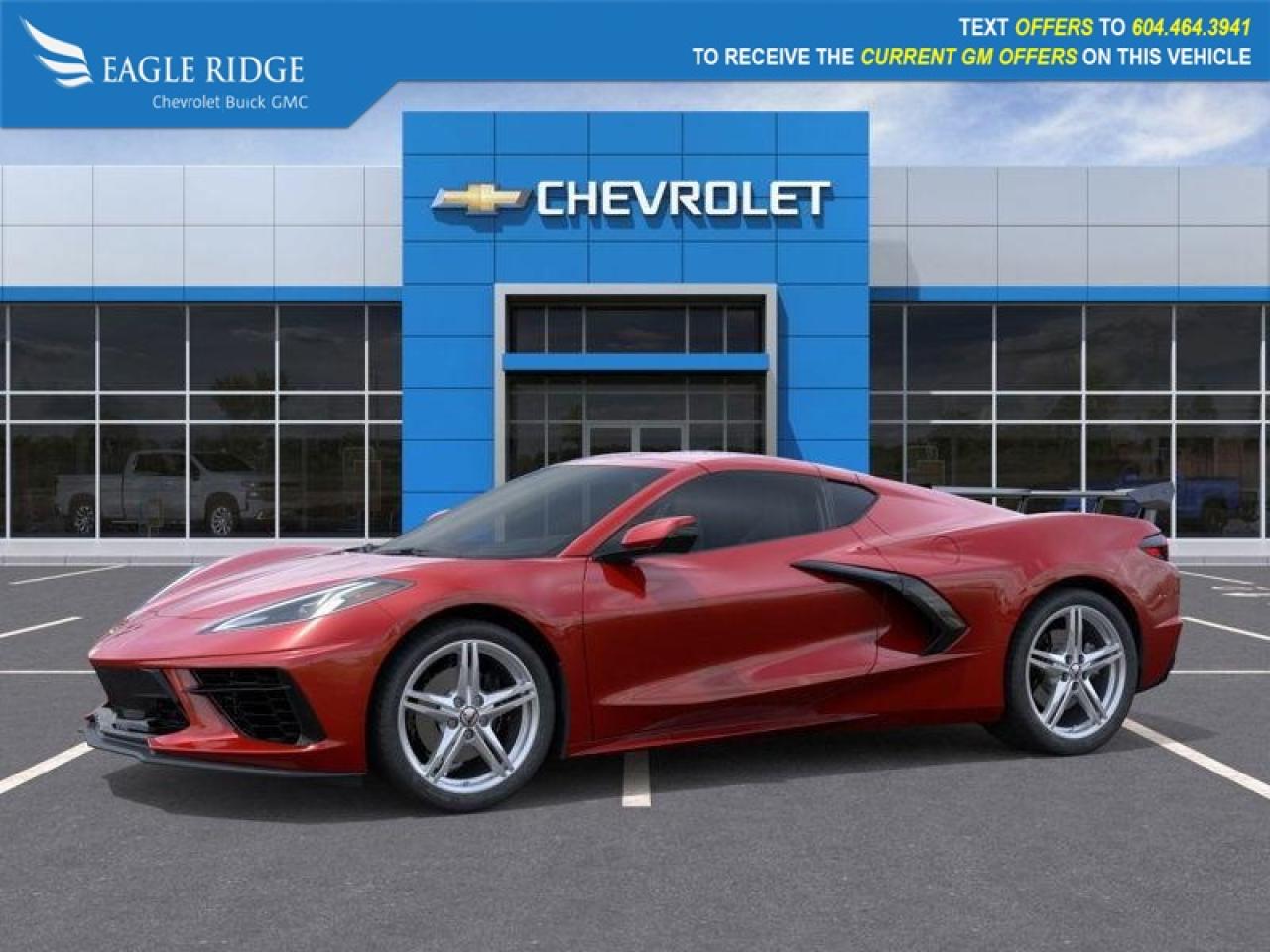 6.2L LT2 V8 engine, 8-speed dual-clutch transmission, mid-engine layout, LED exterior lighting, quad exhaust tips, alloy wheels, heated power mirrors, power-retractable hardtop, Mulan leather GT1 seats, leather performance steering wheel, dual-zone climate control, keyless access, remote start, 12" driver display, 8" touchscreen, wireless Android Auto/Apple CarPlay, WiFi compatibility, Bluetooth, Bose audio system, front and rear trunks, digital rearview mirror, HD rearview camera, automatic emergency braking, lane-keep assist, forward collision warning, rear parking sensors.