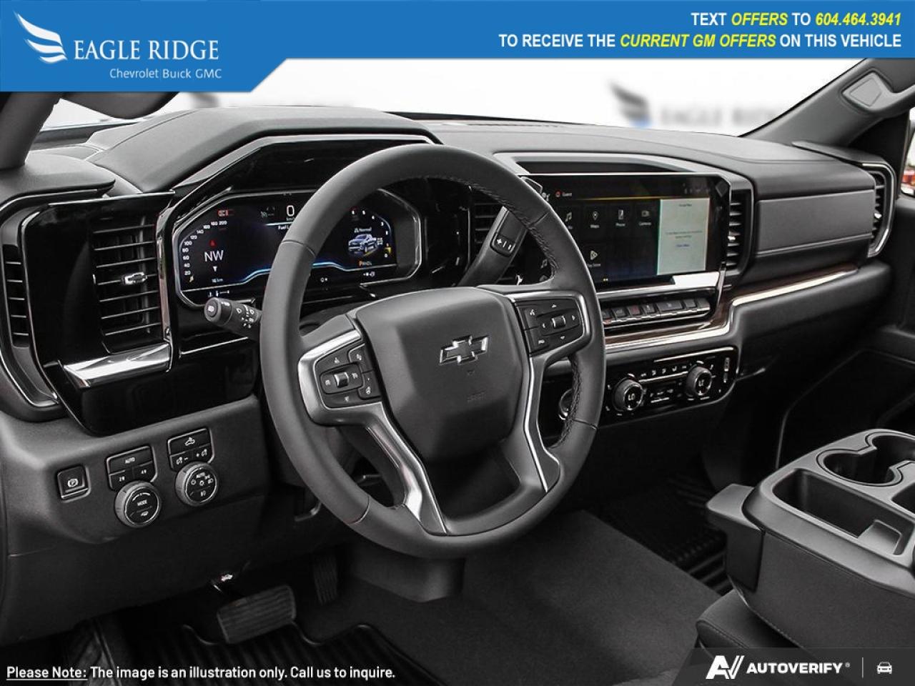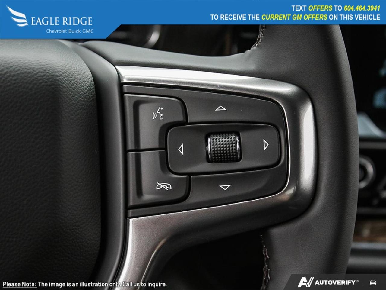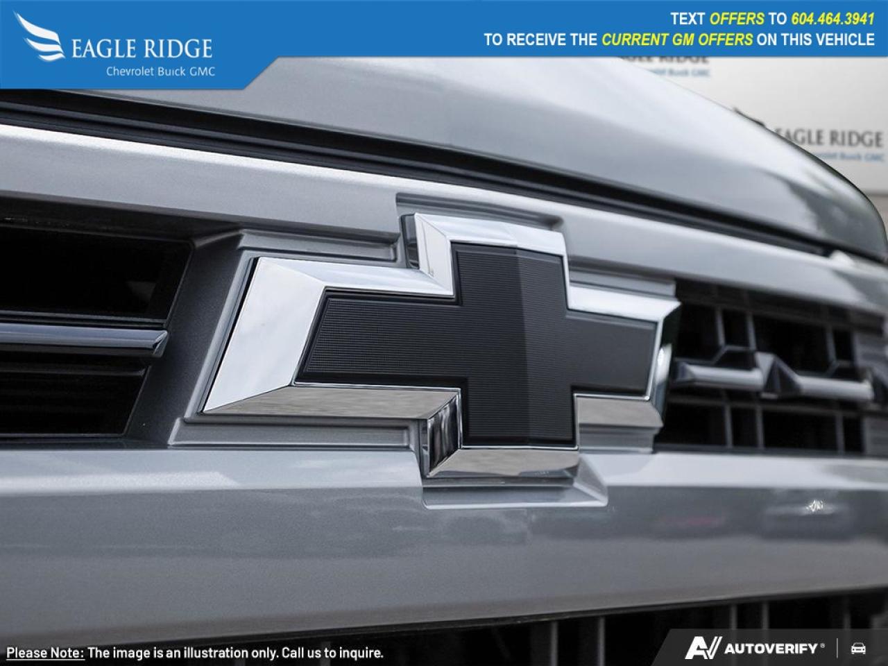 10-speed automatic transmission, 2-speed transfer case, LED lighting, fog lamps, alloy wheels, EZ Lift power lock/release tailgate, trailer hitch, 120V exterior and interior outlets, black Bowtie grille, heated cloth front seats with 10-way power driver adjustment, heated leather-wrapped steering wheel, dual-zone automatic climate control, remote start, rear defogger, keyless access and ignition, 12.3-inch driver display, 13.4-inch touchscreen, Google Built-In, voice control, WiFi compatibility, wireless Apple CarPlay® and Android Auto®, Bluetooth®, and a six-speaker audio system.