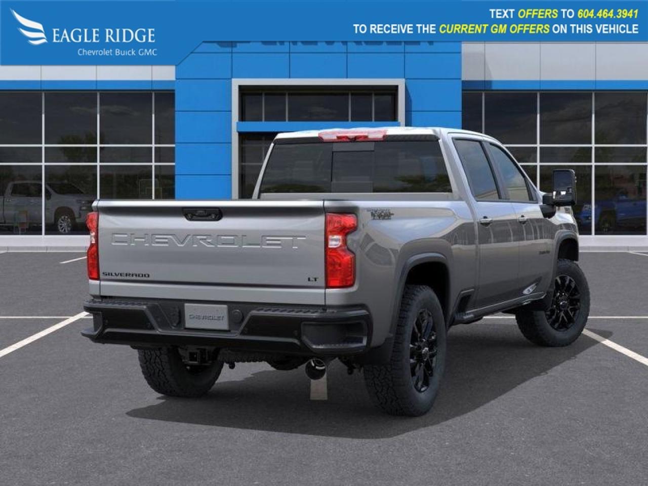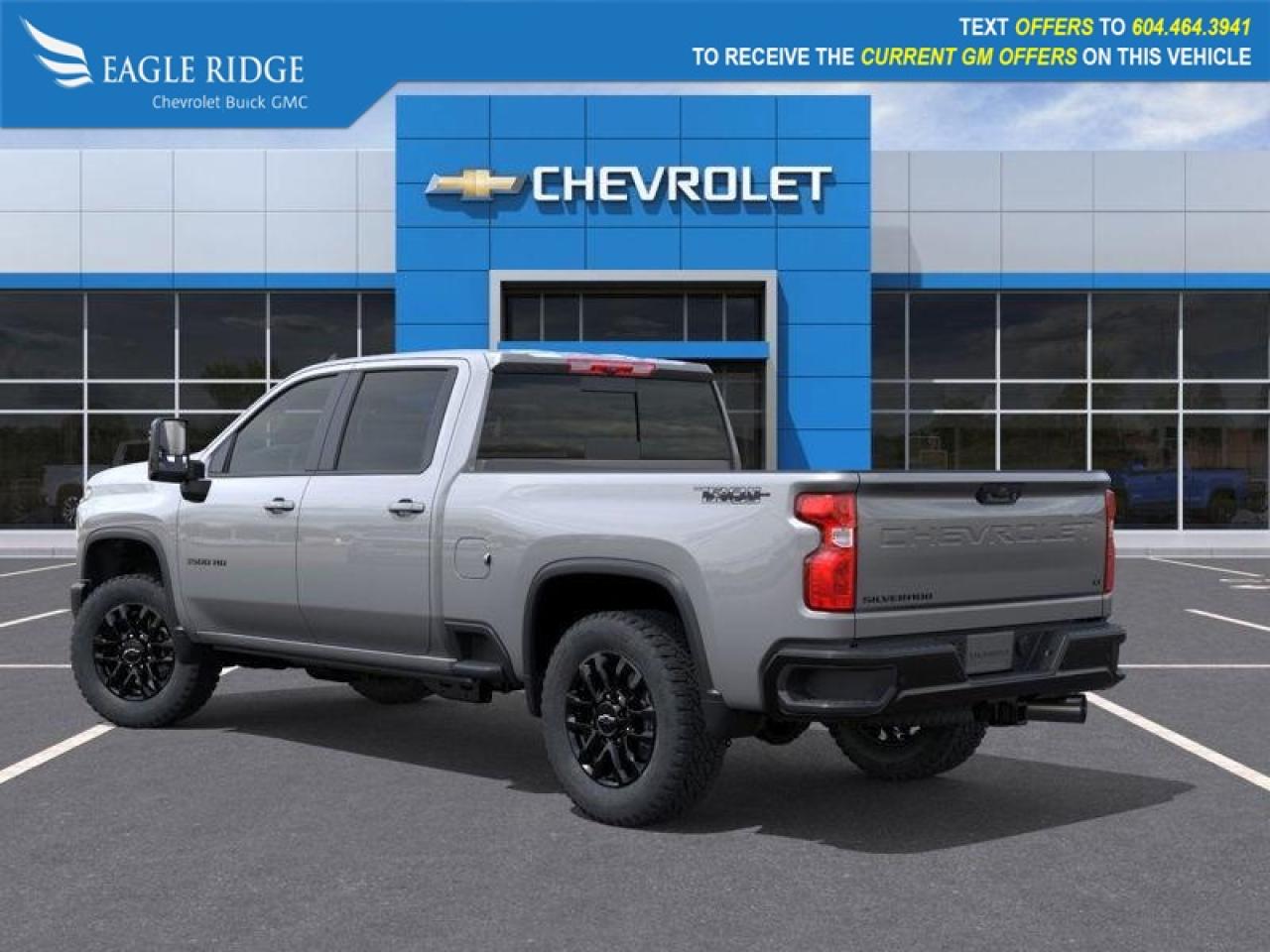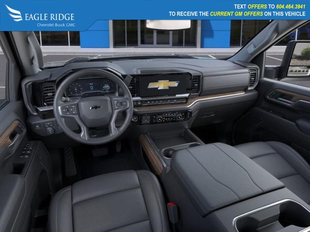 power trailering mirrors, black recovery hooks, side and rear bed steps, trailer hitch, heated leather front seats, heated leather-wrapped steering wheel, single-zone climate control, cruise control, power accessories, keyless entry and ignition, smart interior storage, 13.4-inch infotainment touchscreen, 12.3-inch digital driver display, wireless Apple CarPlay and Android Auto, Bluetooth, WiFi compatibility, six-speaker audio system, automatic emergency braking, forward collision alert, HD rearview camera, following distance indicator, hitch guidance, rear seat reminder, Stabilitrak stability and traction control, trailer sway control, hill start assist.