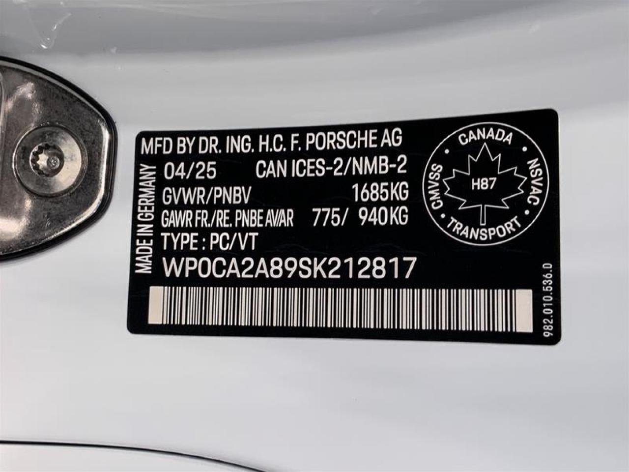 FEDERAL LUXURY TAX INCLUDED IN PRICING For more details or to schedule a test drive with one of our highly trained sales executives please call or send a website enquiry now before it is gone. 604-530-8911. Porsche Center Langley has won the prestigious Porsche Premier Dealer Award eight years in a row. We are centrally located just a short distance from Highway 1 in beautiful Langley, British Columbia. Our hope is to have you driving your dream vehicle soon.