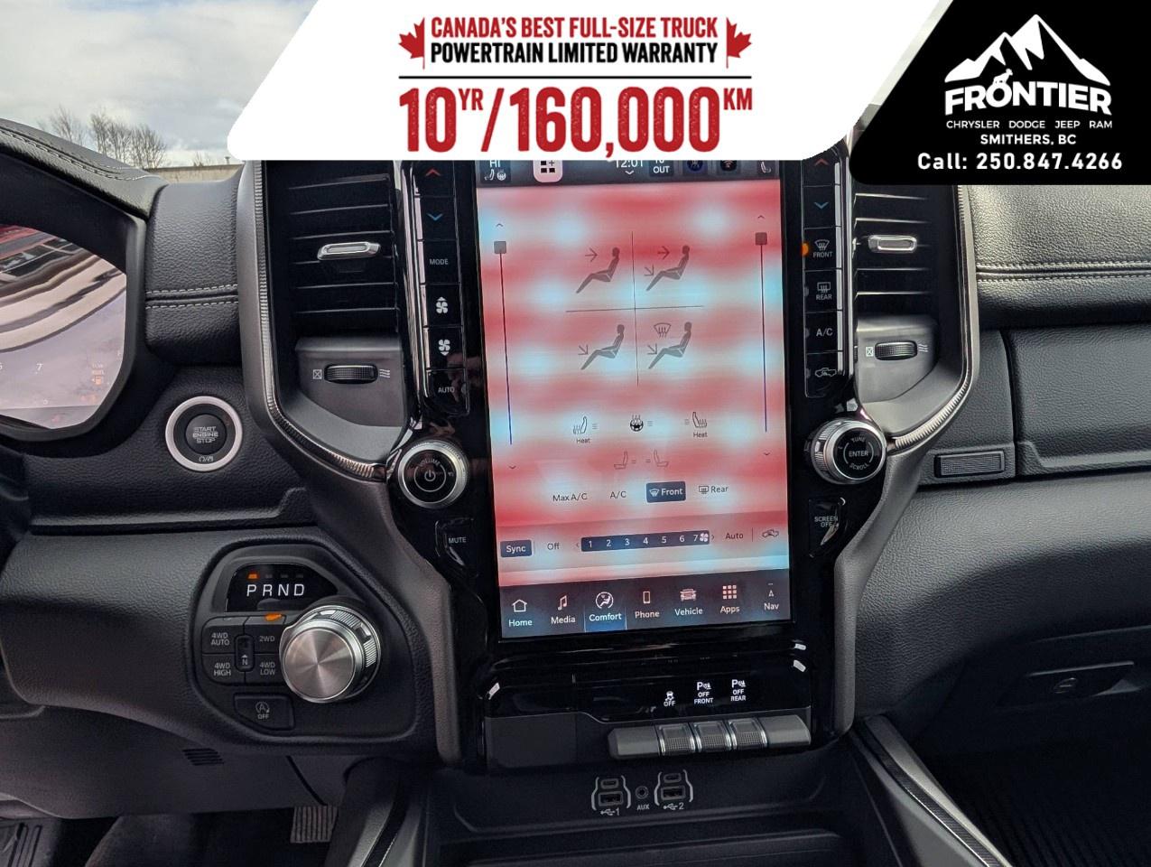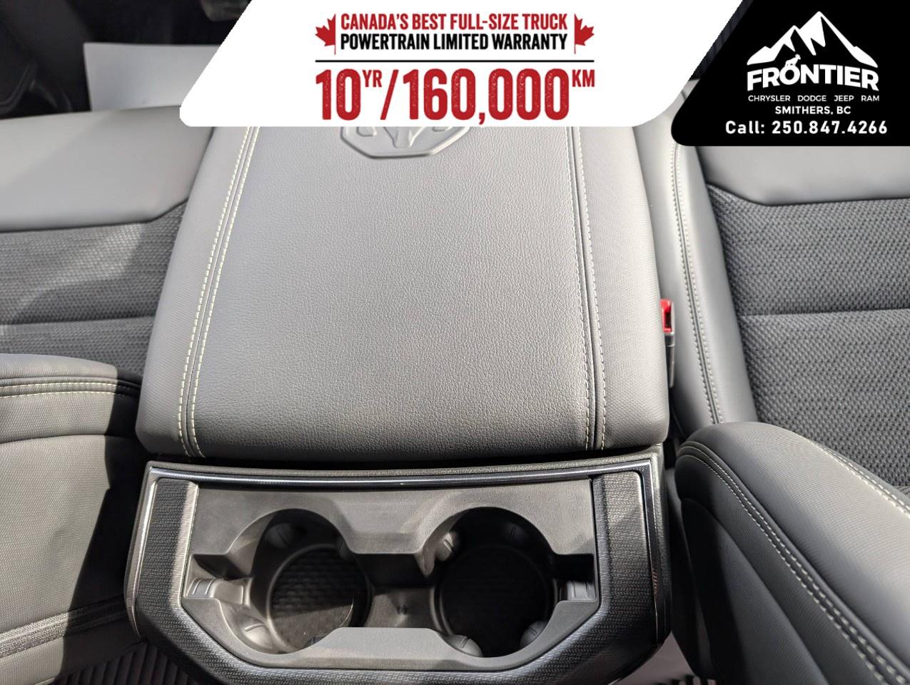 The interior of this Ram 1500 is designed to impress, boasting a sophisticated Black color scheme. Comfort features such as heated seats, a leather steering wheel, and a heated steering wheel ensure a pleasant driving experience year-round. Clever storage options and high-quality materials wrap you in luxury as you tackle any journey.