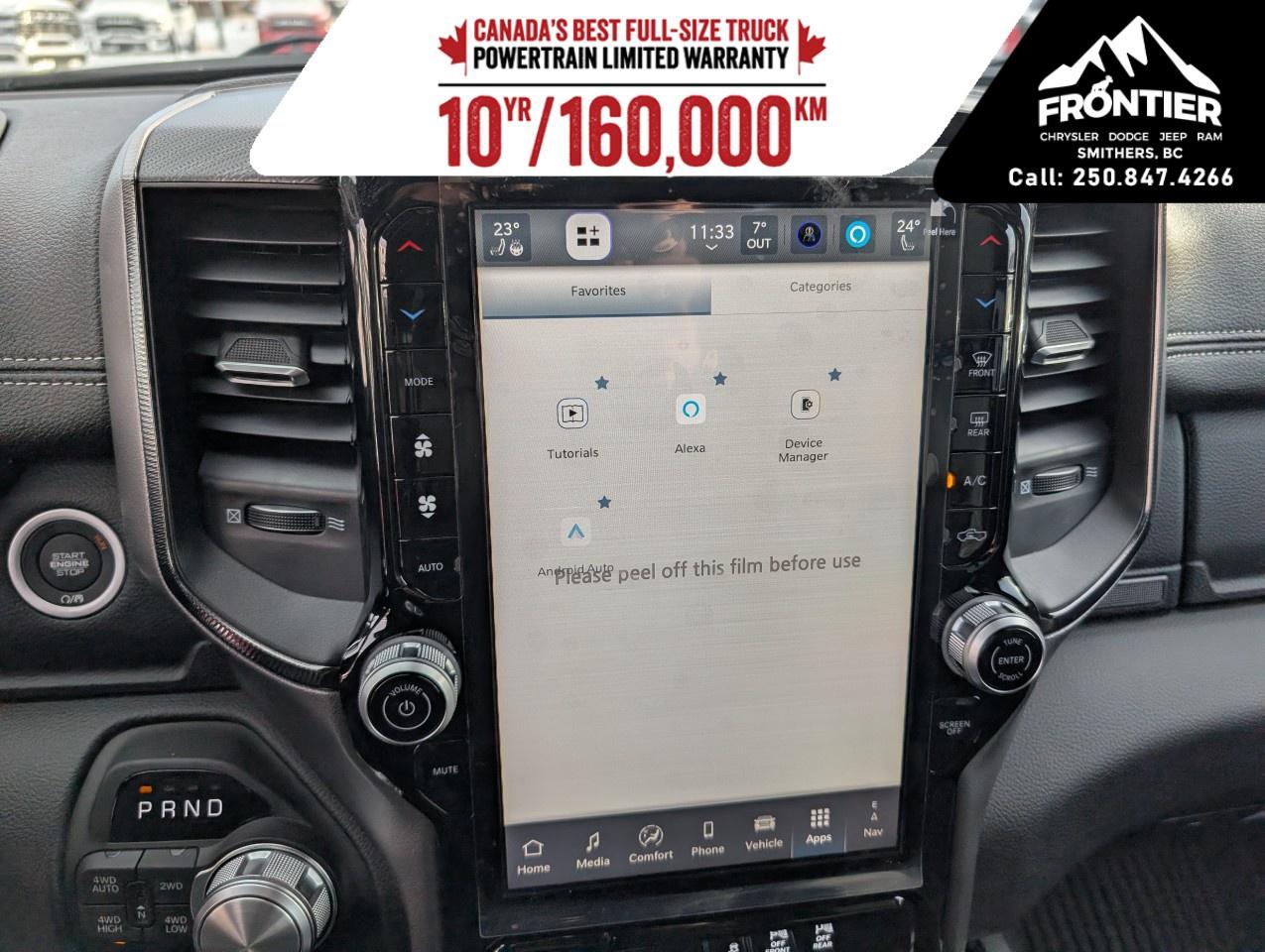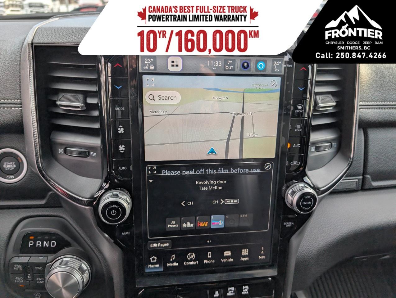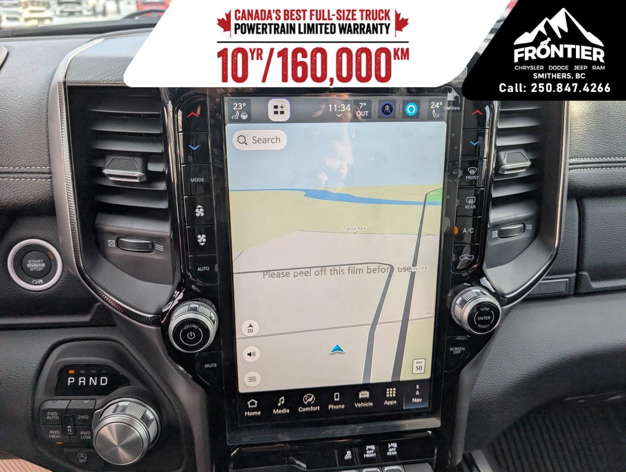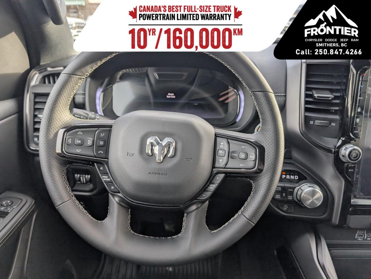Technologically advanced, this Ram 1500 comes equipped with a user-friendly navigation system and a large touchscreen infotainment display, ensuring you stay connected wherever you go. Safety is paramount with features like lane assist, adaptive cruise control, parking sensors, and a backup camera all working in harmony to provide peace of mind as you drive.