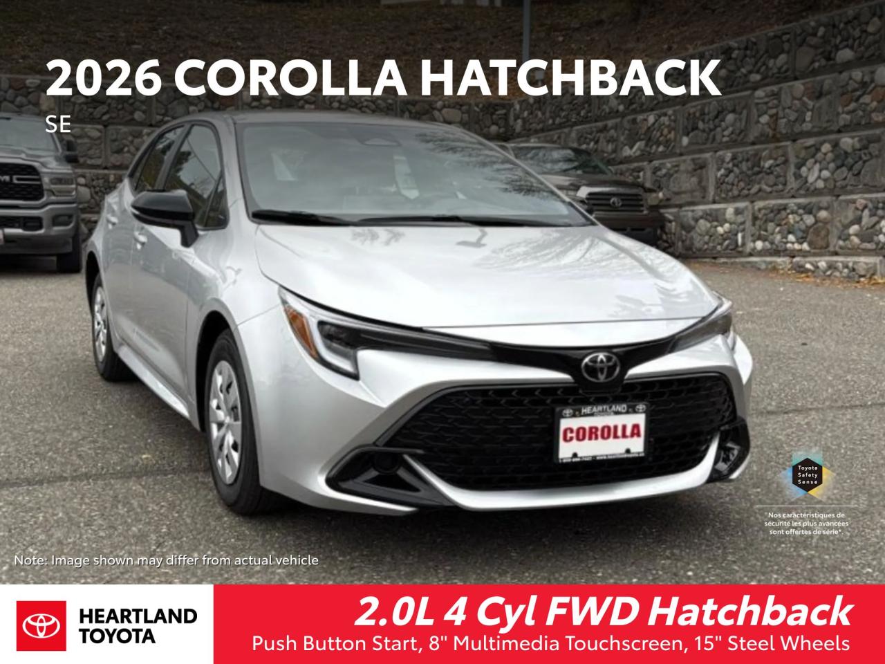 The 2026 Toyota Corolla Hatchback delivers a refined balance of performance, efficiency, and intelligent design, powered by a 2.0-liter, 4 cylinder engine producing 169 horsepower and 151 lb-ft of torque, paired with a Direct Shift-CVT for smooth, responsive driving. Its aerodynamic profile is complemented by LED headlights and 15-inch steel wheels, while the cabin features an 8-inch multimedia touchscreen with wireless Apple CarPlay and Android Auto integration, and Toyota Safety Sense 3.0 — offering adaptive cruise control, lane tracing assist, and pre-collision detection. With seating for five and 17.8 cubic feet of cargo space, the Corolla Hatchback is engineered for drivers seeking modern connectivity, everyday versatility, and trusted reliability.