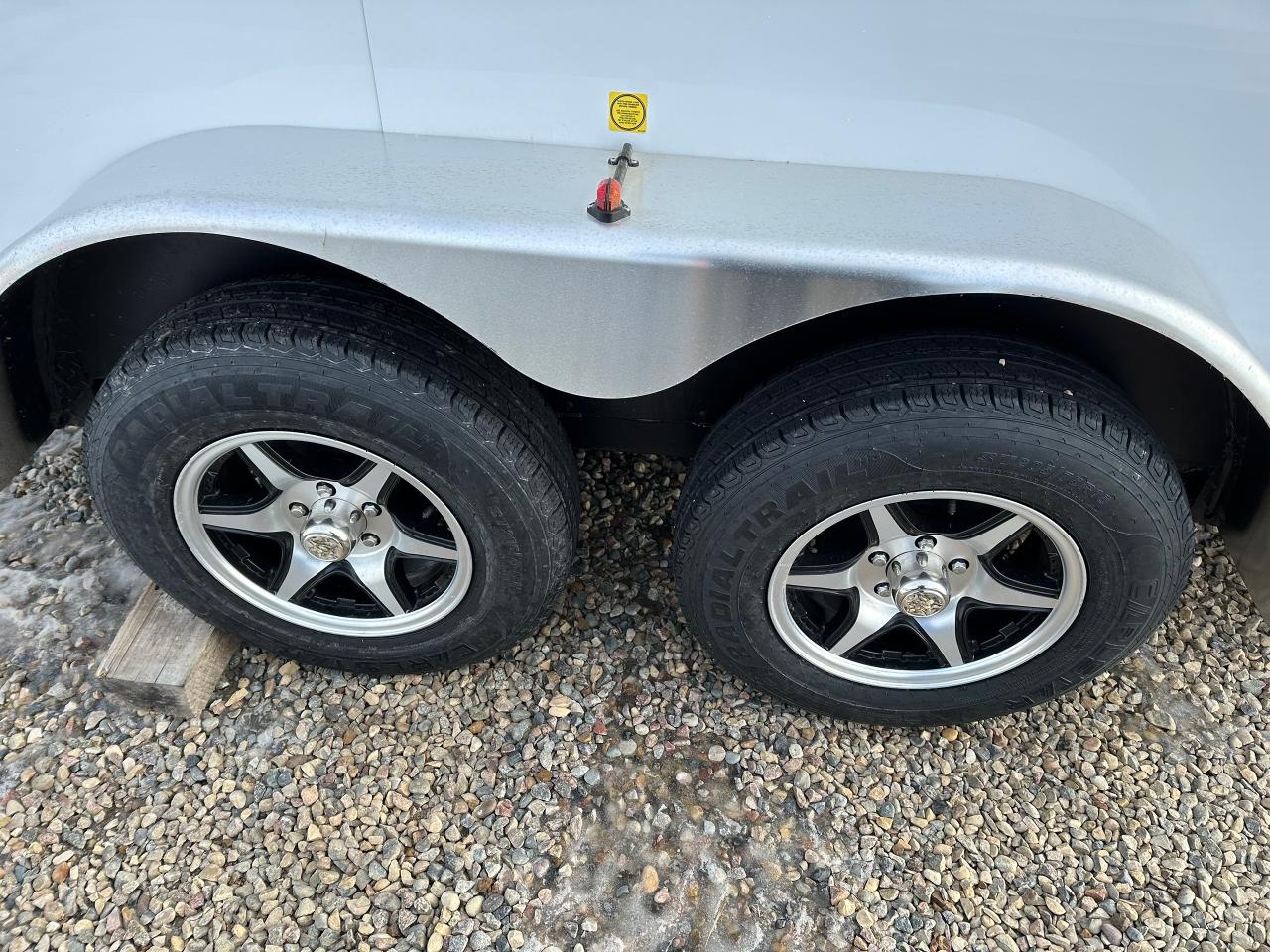 7 x 14 triple wedge, 3500 lb dexter torsion axles, rear barn doors with extra bar lock, aluminum cross trax wheel upgrade, 6" extended height, bar lock on side door, laminated sides. Standard features: rock guard, 32” side door, 2-12 volt dome lights and switch and a roof vent. ¾” plywood floor, 3/8” plywood on the walls, 6” tube frame2 5/16” coupler, GVWR 9900 lbs, curb weight 2024 lbs. Stock# HH5460. For more info call Wilf’s Elie Ford toll free 877-360-3673. Dealer # 0521