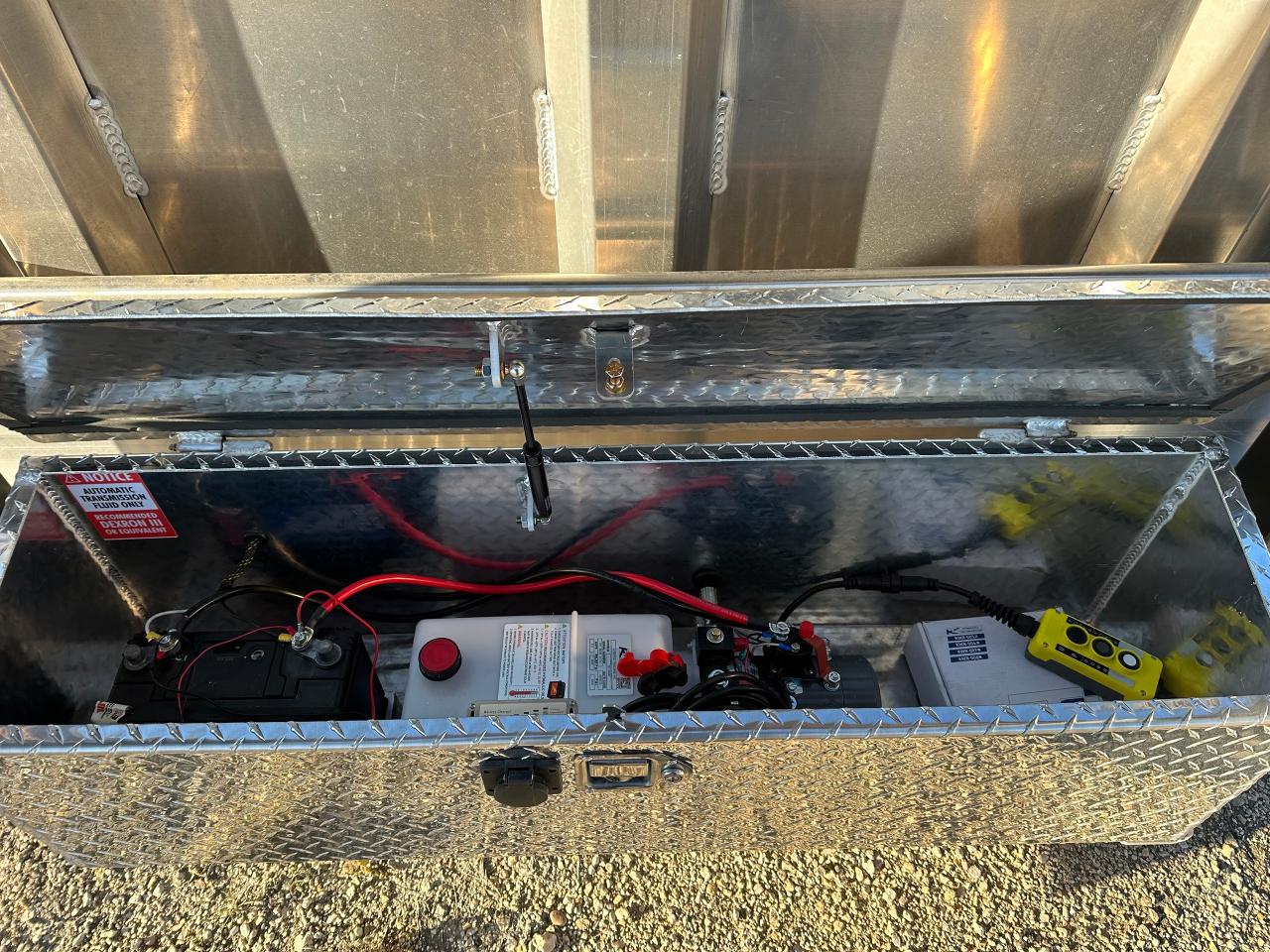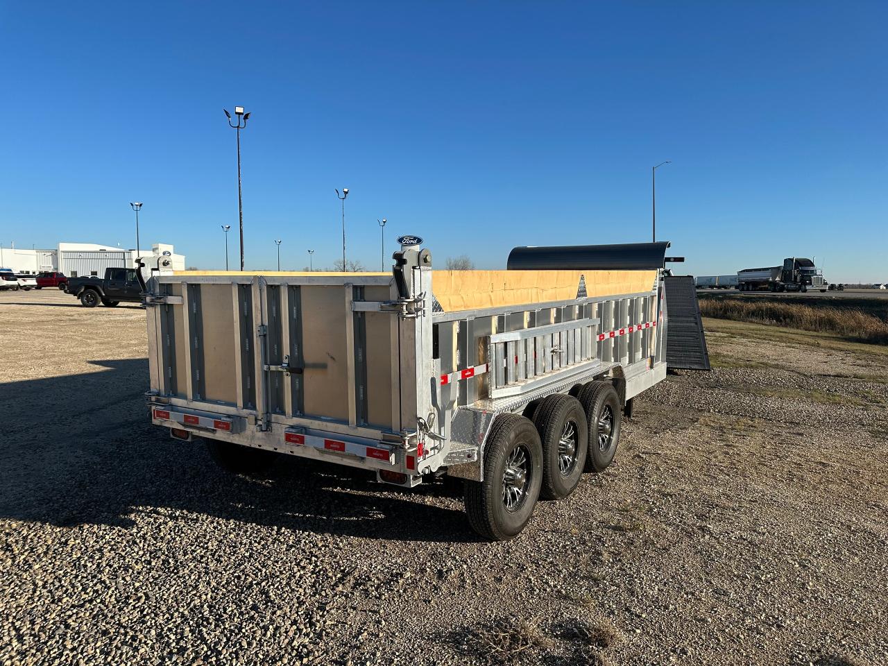Aluminum rims with matching spare, spreader gate, 8 amp battery charger, wireless remote for hydraulics, GVWR 21,000 lbs Payload 16,900 lbs. Dry Weight 4,100 lbs