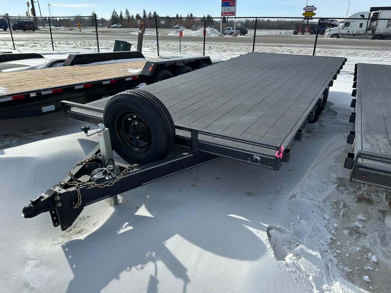 20' Rainbow Excursion Deck Over, tandem 5200 lb axles, 9900 lb GVWR, 2756 lbs curb weight, brake protection, spare tire and holder, LED lights, silver graphics package, 2" painted spruce floor, advanced hybrid polyurea coating exterior finish, heavy duty stake pockets, wiring enclosed in poly conduit, height adjustable coupler, 31" deck height, 8' slide in ramps, 14K height adjustable coupler. Stock# HH5482. For more info call Wilf's Elie Ford toll free 877-360-3673. Dealer# 0521.