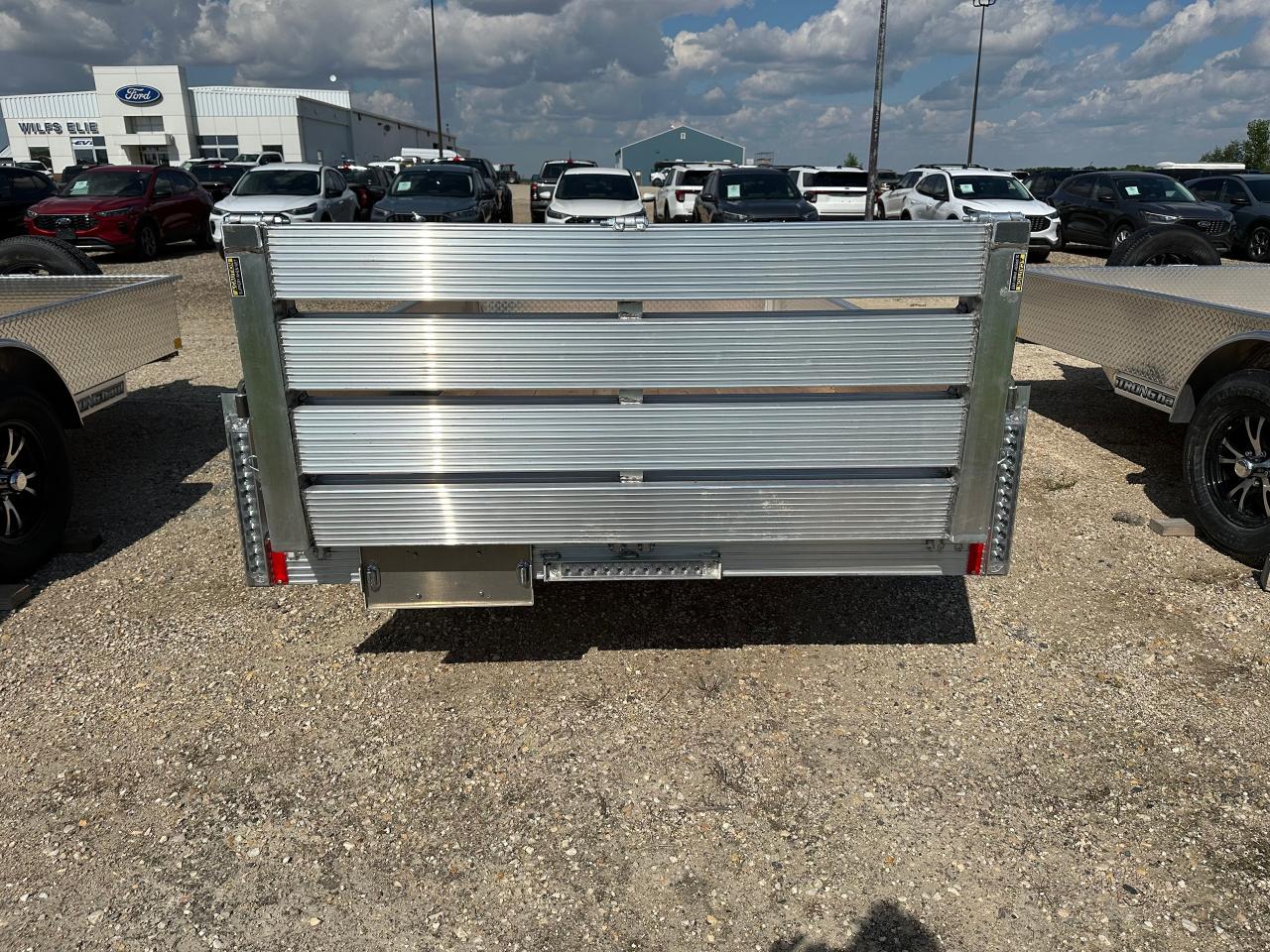 2990# GVWR, all aluminum frame, 15" side height, 3500lbs spring idler axle, zinc plated axle mounting brackets, 4-flat electrical connector, 2" ball coupler, ST205/75R15 Radial tires, LED lights, enclosed wiring, a-frame mounted jack, 2 x 10 DouglasFir/Larch plank floor, 5/16 safety chains, folding rear ramp rated at 3000lbs, 6-2000lbs tie downs, spare tire mount, aluminum wheels, aluminum spare. Stock# HH5398. For more info call Wilf's Elie Ford toll free 877-360-3673. Dealer# 0521.