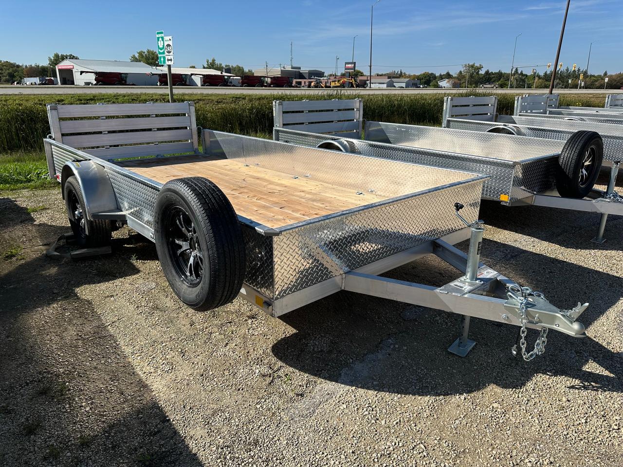 7 x 14 Stronghaul Solid Side, 2990# GVWR, all aluminum frame, 15" side height, 3500lbs spring idler axle, zinc plated axle mounting brackets, 4-flat electrical connector, 2" ball coupler, ST205/75R15 Radial tires, LED lights, enclosed wiring, a-frame mounted jack, 2 x 10 DouglasFir/Larch plank floor, 5/16 safety chains, folding rear ramp rated at 3000lbs, 10-2000lbs tie downs, spare tire mount, aluminum wheels, aluminum spare. Stock# HH5411. For more info call Wilf's Elie Ford toll free 877-360-3673. Dealer# 0521.