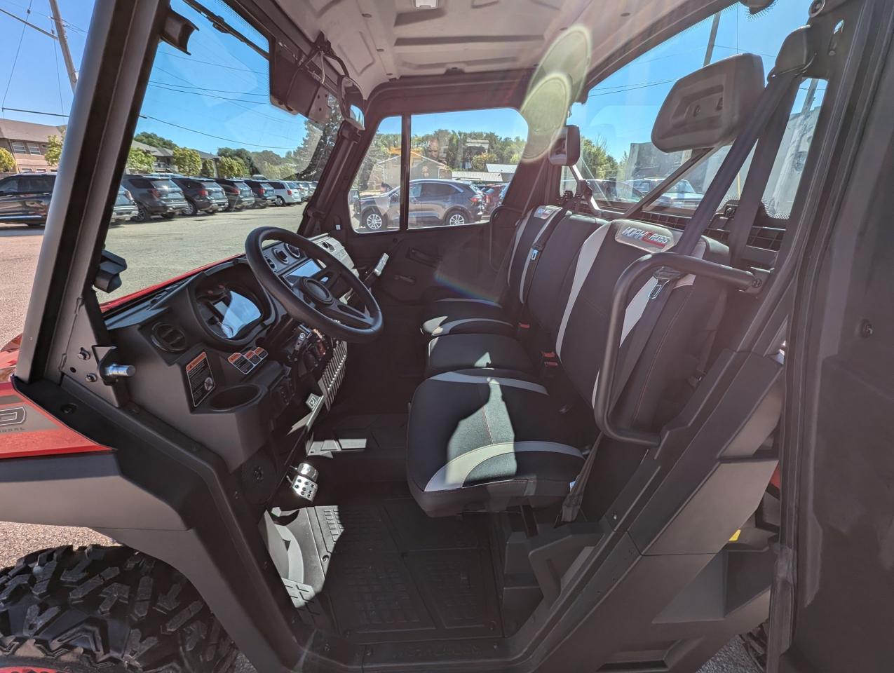 Equipped with a heating and cooled cab, a 976cc V-twin engine. Touch screen radio with Apple CarPlay/Android Auto, including back up camera. Selectable 2WD-4WD-4WD front locking differential, TURF MODE. Independent dual A-arm front & rear, front wiper and washer fluid, and adjustable coil over spring rate. 3 mode adjustable power steering, and a 3500lb winch. Factory Bead lock wheels and light bar. MATTRACKS kits in-stock.